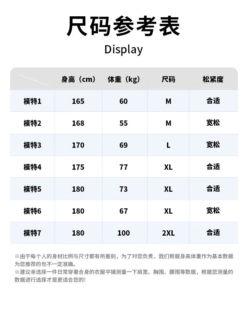 China (cm) 160-165/84-86 165-170 / 88-90 167-172 / 92-96 168-173 / 98-102 170-176 / 106-110