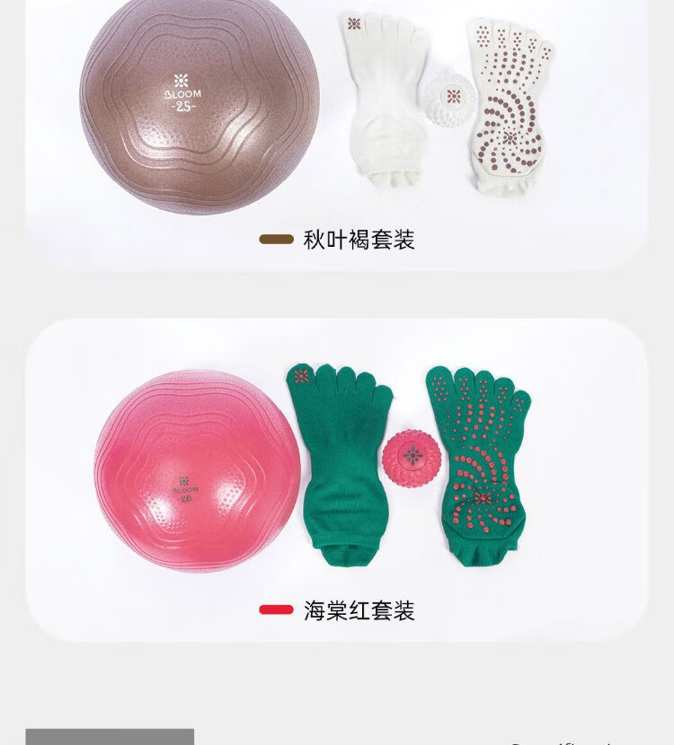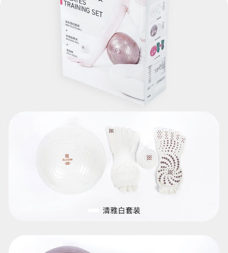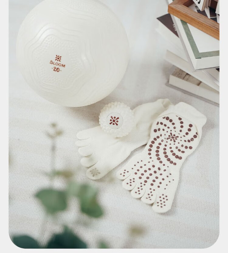 Permu BLOOM Pilates training set yoga ball fascia ball indoor silicone pattern non-slip yoga socks indoor unlimited white + elegant white 20cm