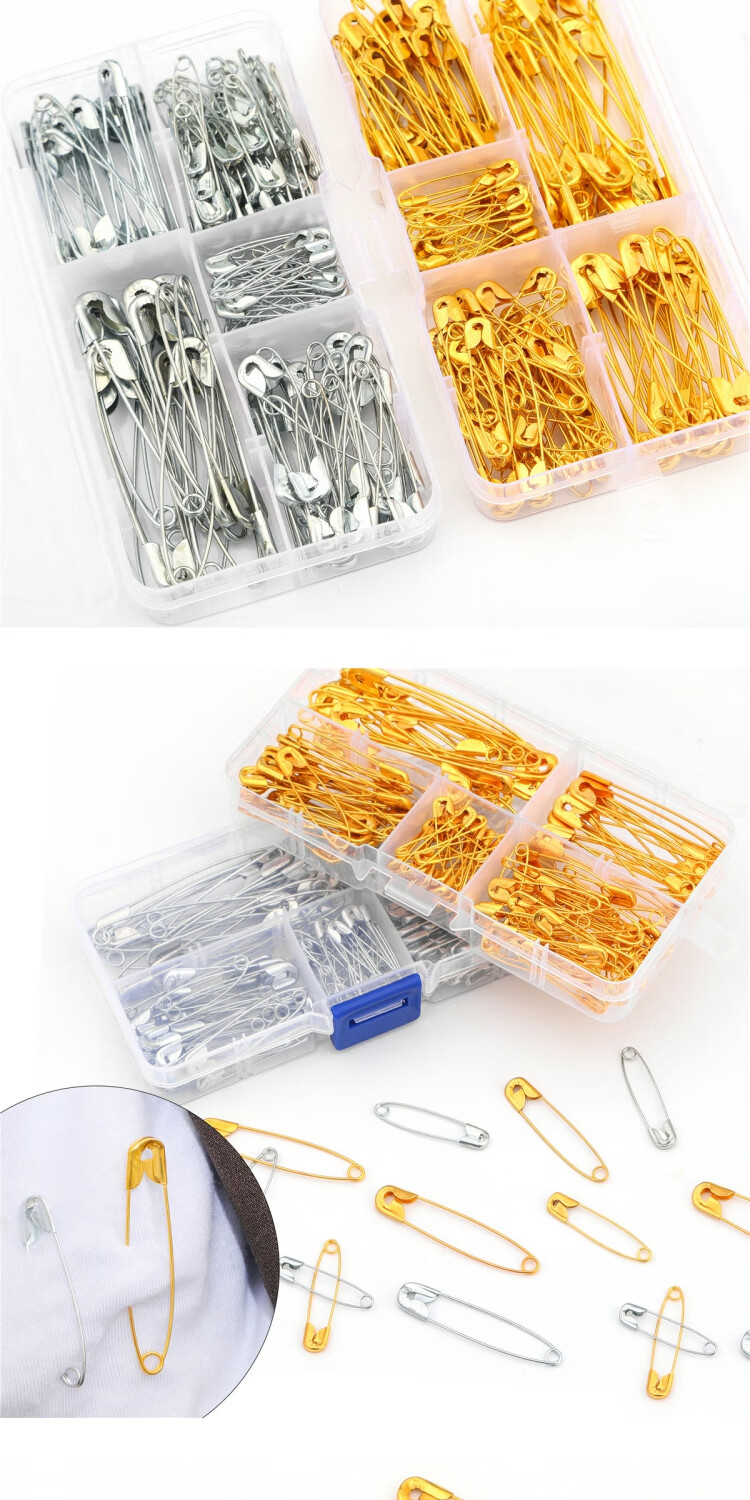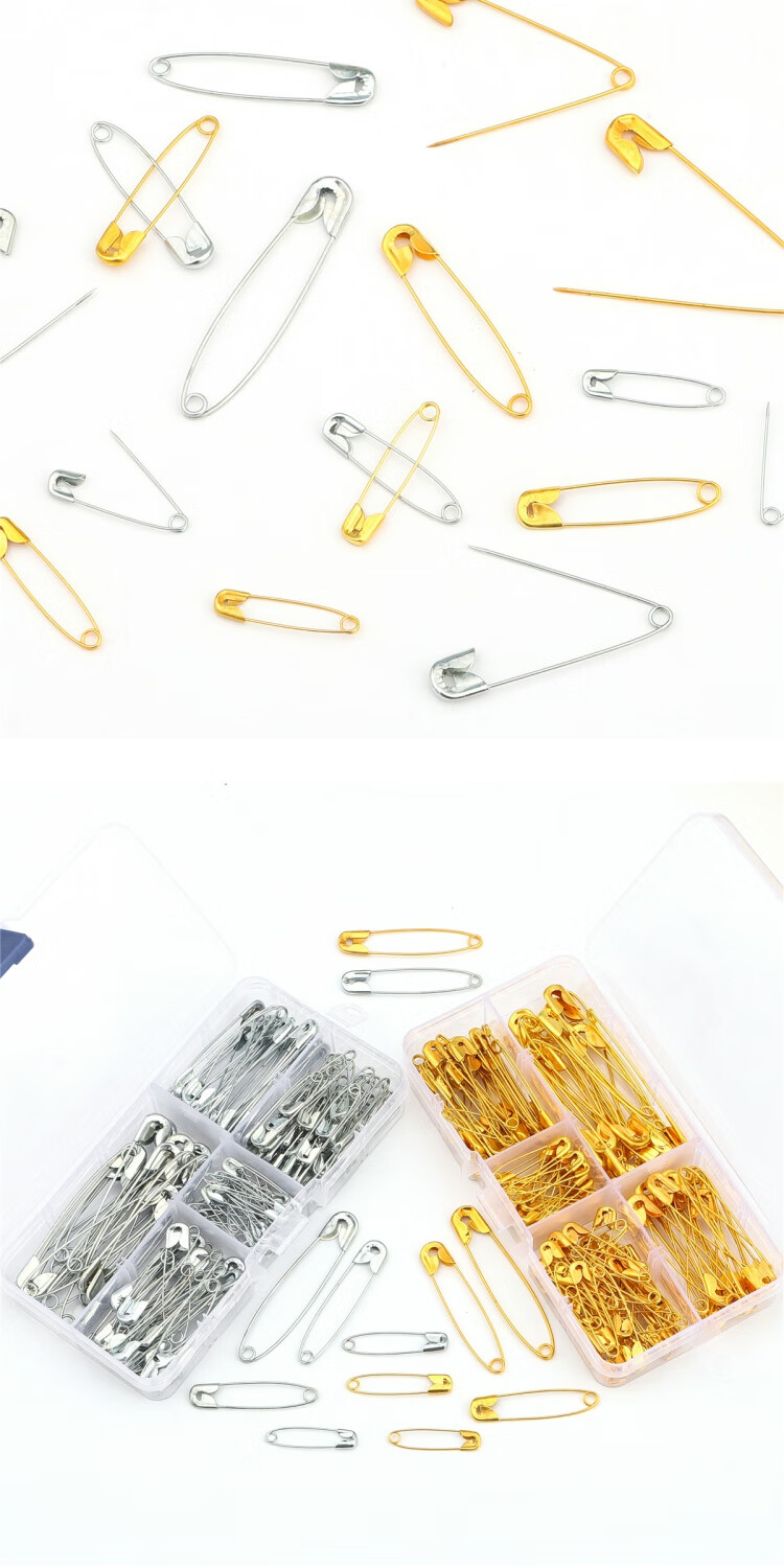 Old-fashioned safety pins multi-size brooch materials handmade diy jewelry paper clip tools boxed pins boxed pins gold-150 pcs/box