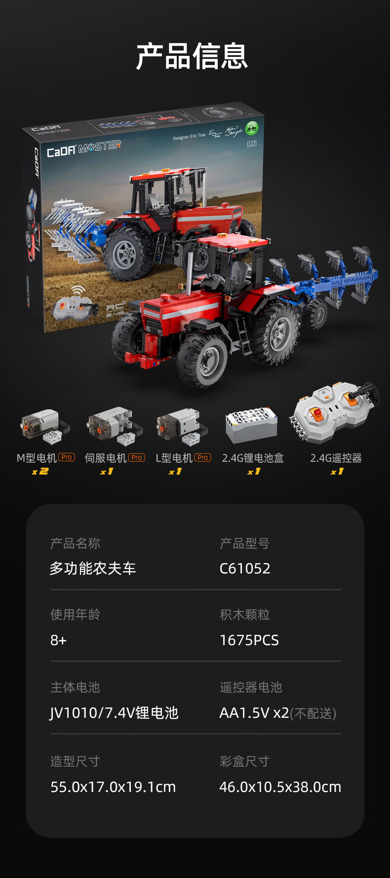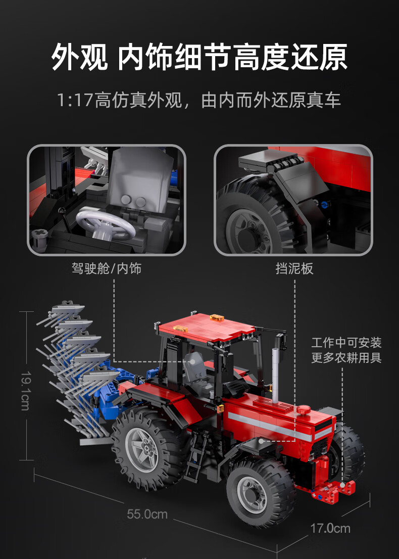 Multifunctional four-wheeled farmer's vehicle toy remote control tractor assembled building block model for children C61052 Multifunctional farmer's vehicle_remote control version_