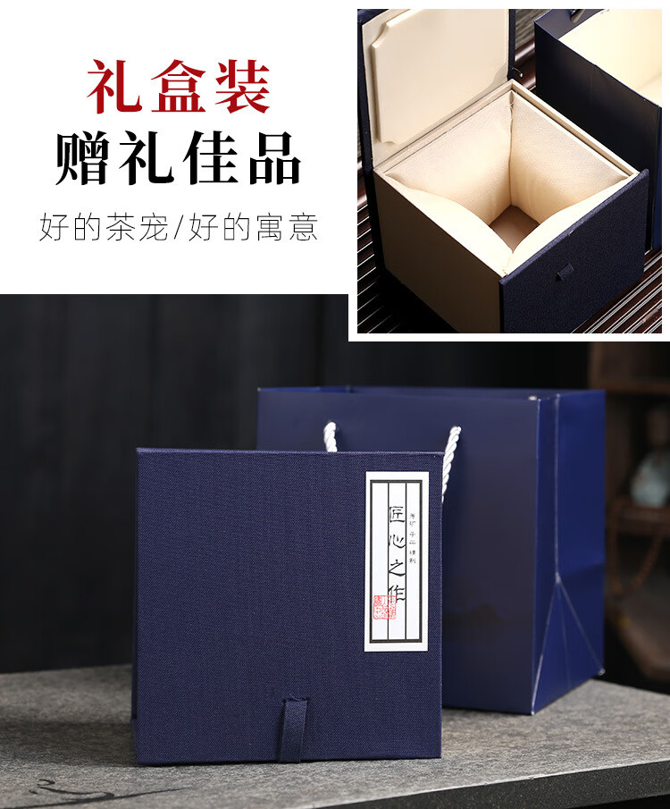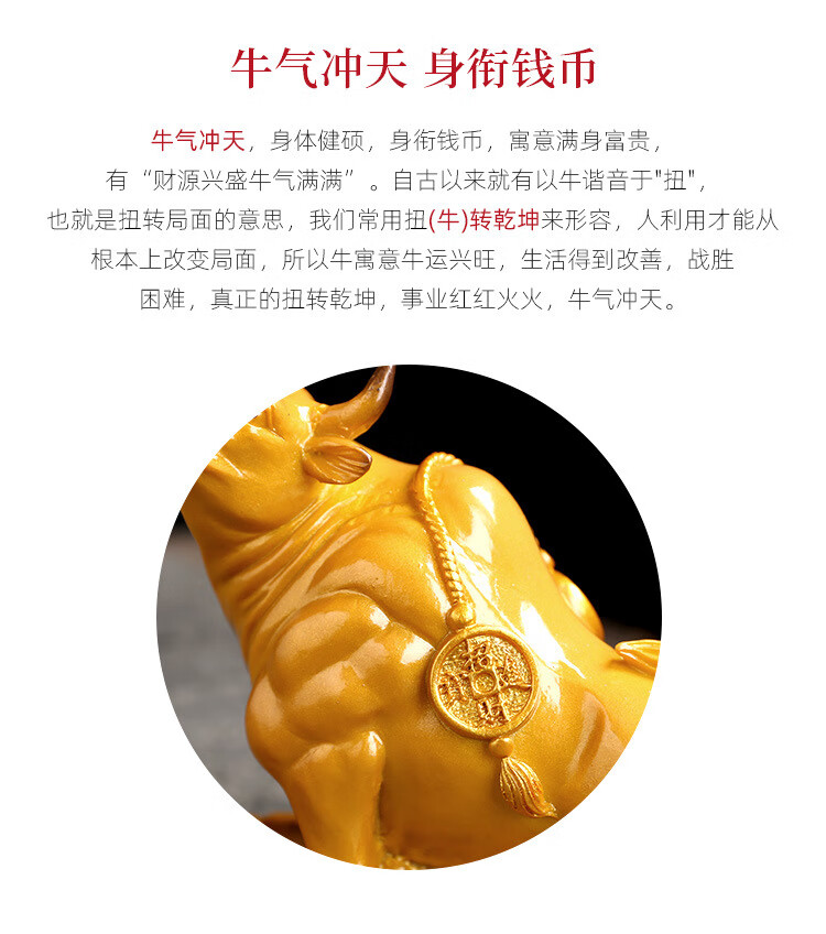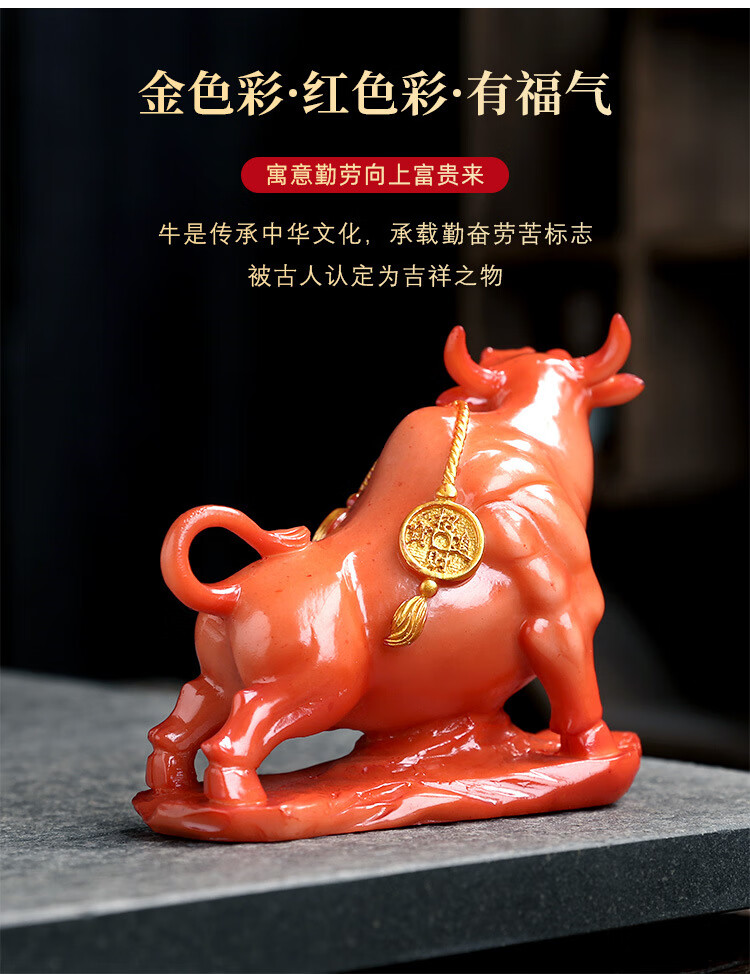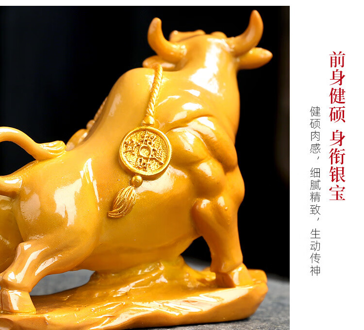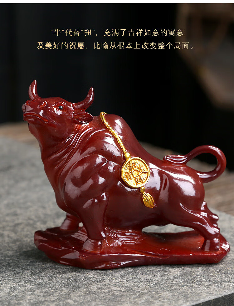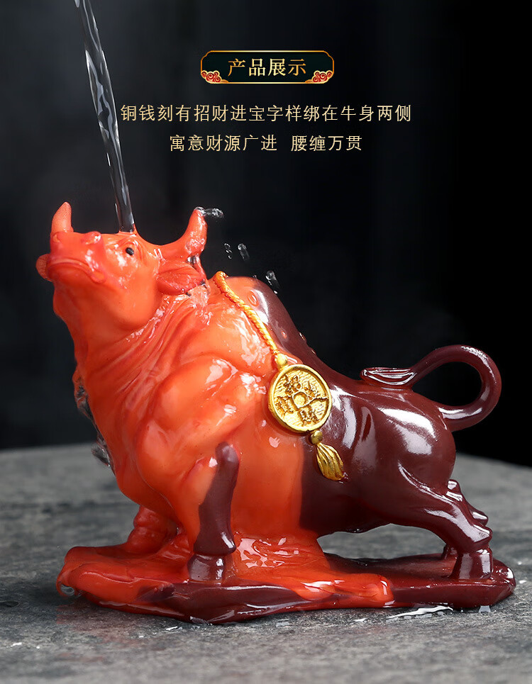 Carved feather color changing tea pet cow small ornaments boutique can be raised tea table decoration buffalo tea table tea tray tea play tea tray tea set decoration gift box style cow turns to heaven and earth (gold)
