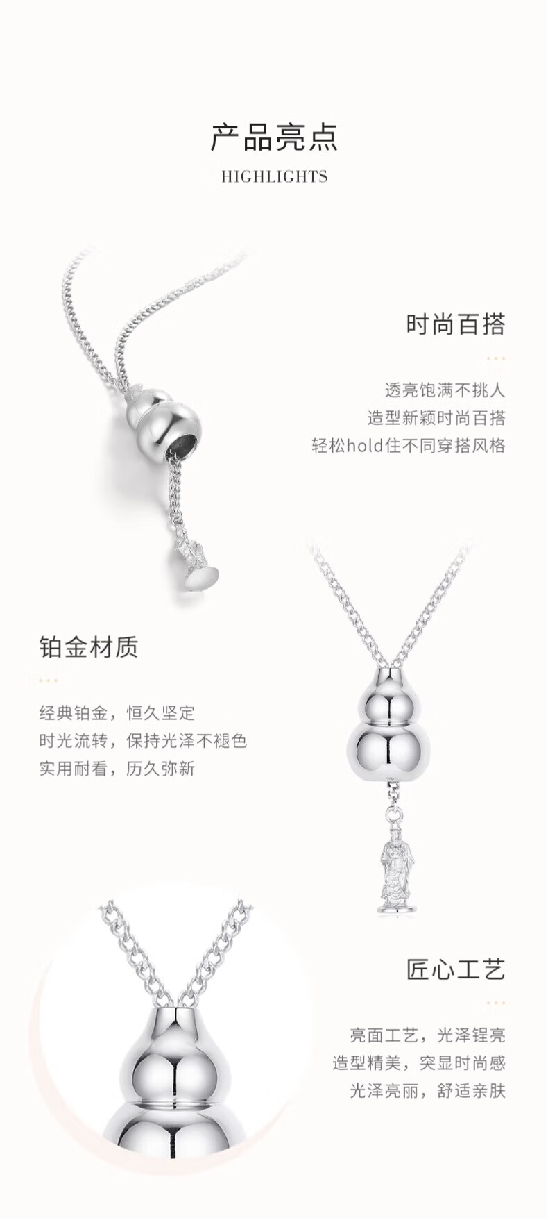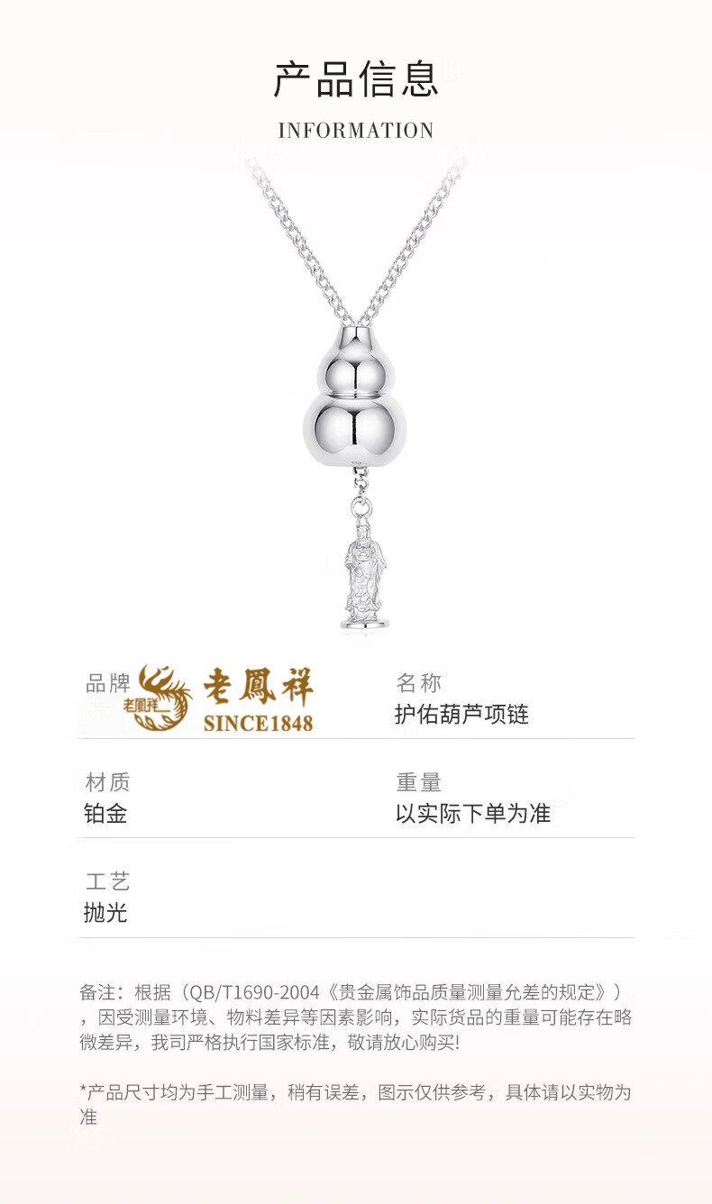 Lao Fengxiang pt950 platinum necklace for women, platinum Fulu gourd pendant, new Chinese style Valentine's Day birthday gift for girlfriend, platinum gourd necklace, about 6.9g, brand gift box
