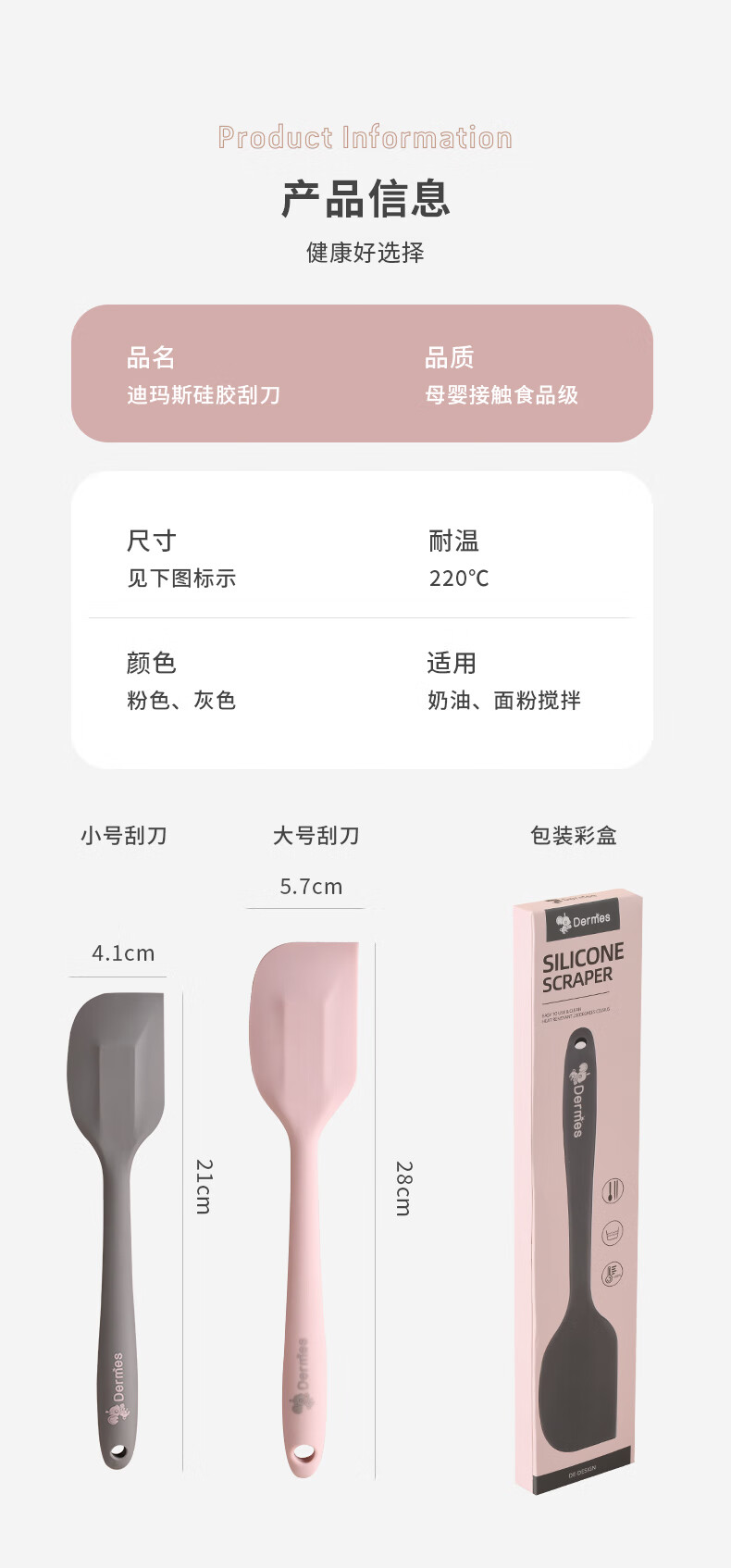 SMVP food grade silicone spatula integrated high temperature resistant baking food tool kitchen spatula cream spatula small gray spatula