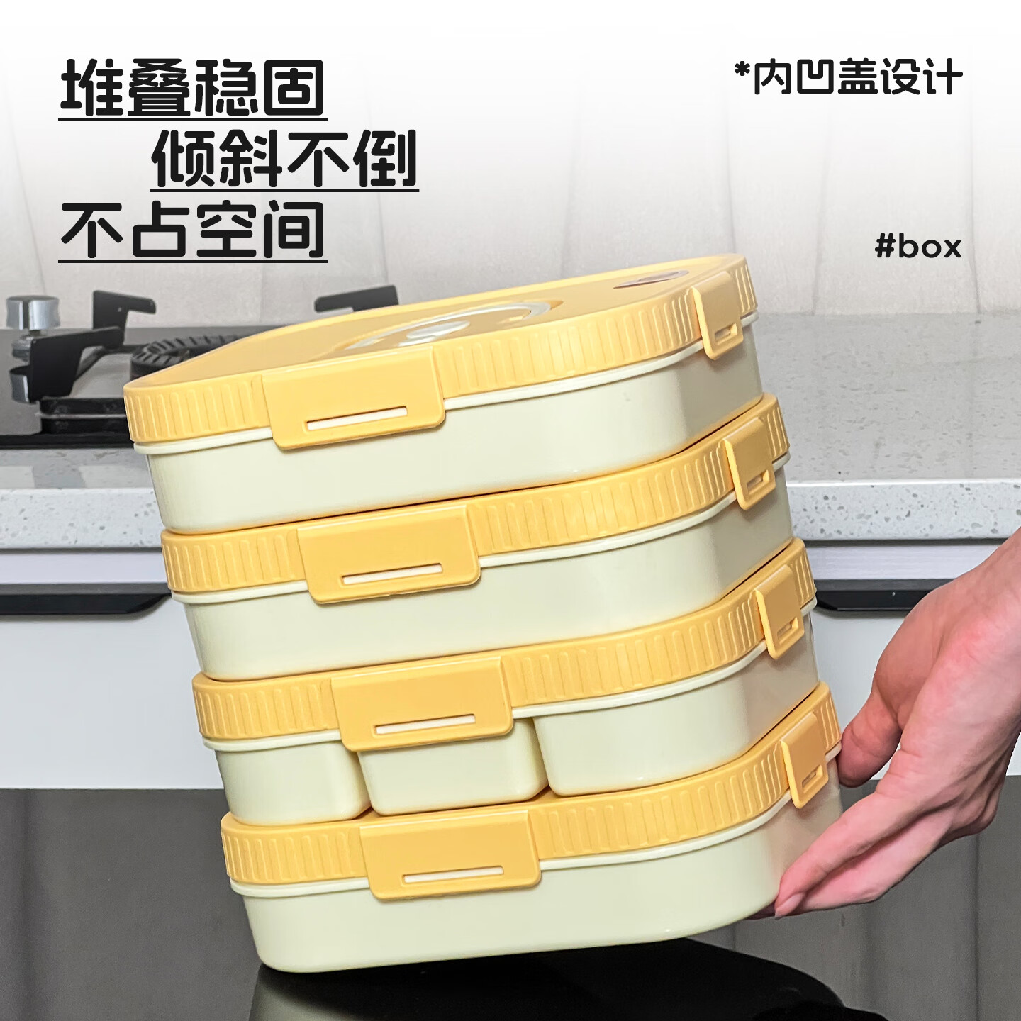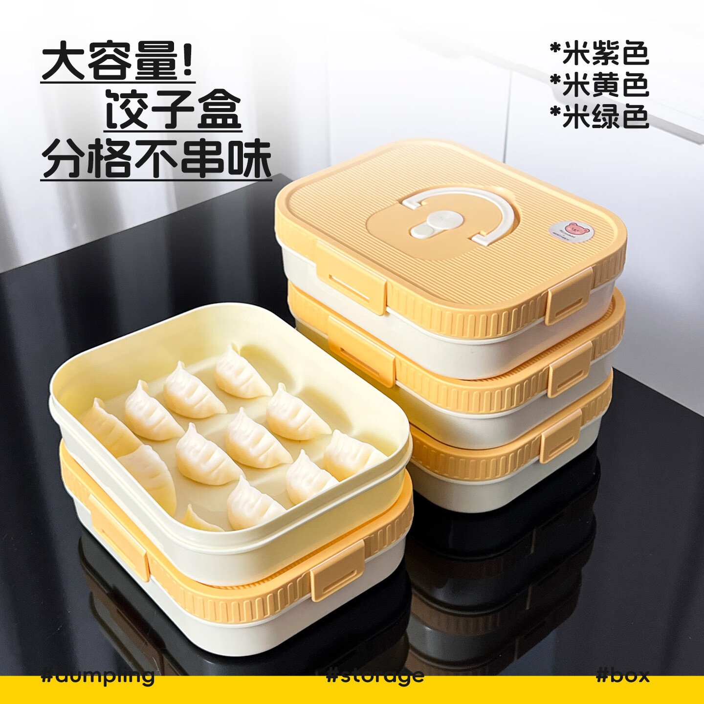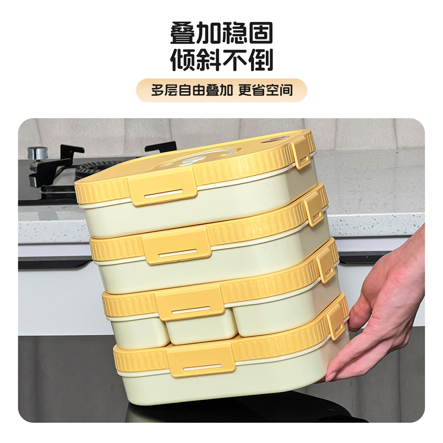 WORTHBUY Large Capacity Dumpling Box Kitchen Refrigeration Special Preservation Box Wonton & Wonton Food Grade Refrigerator Storage Box Beige - Single Compartment 1400ml