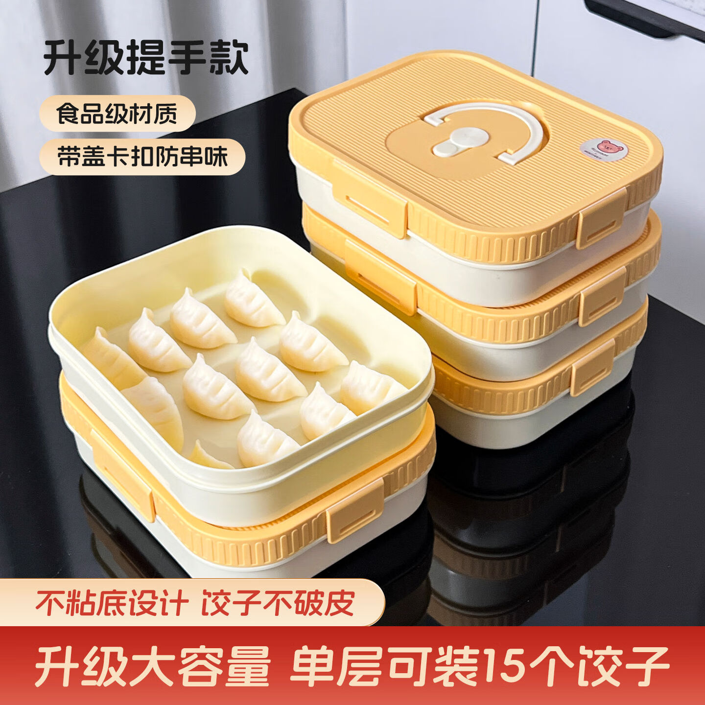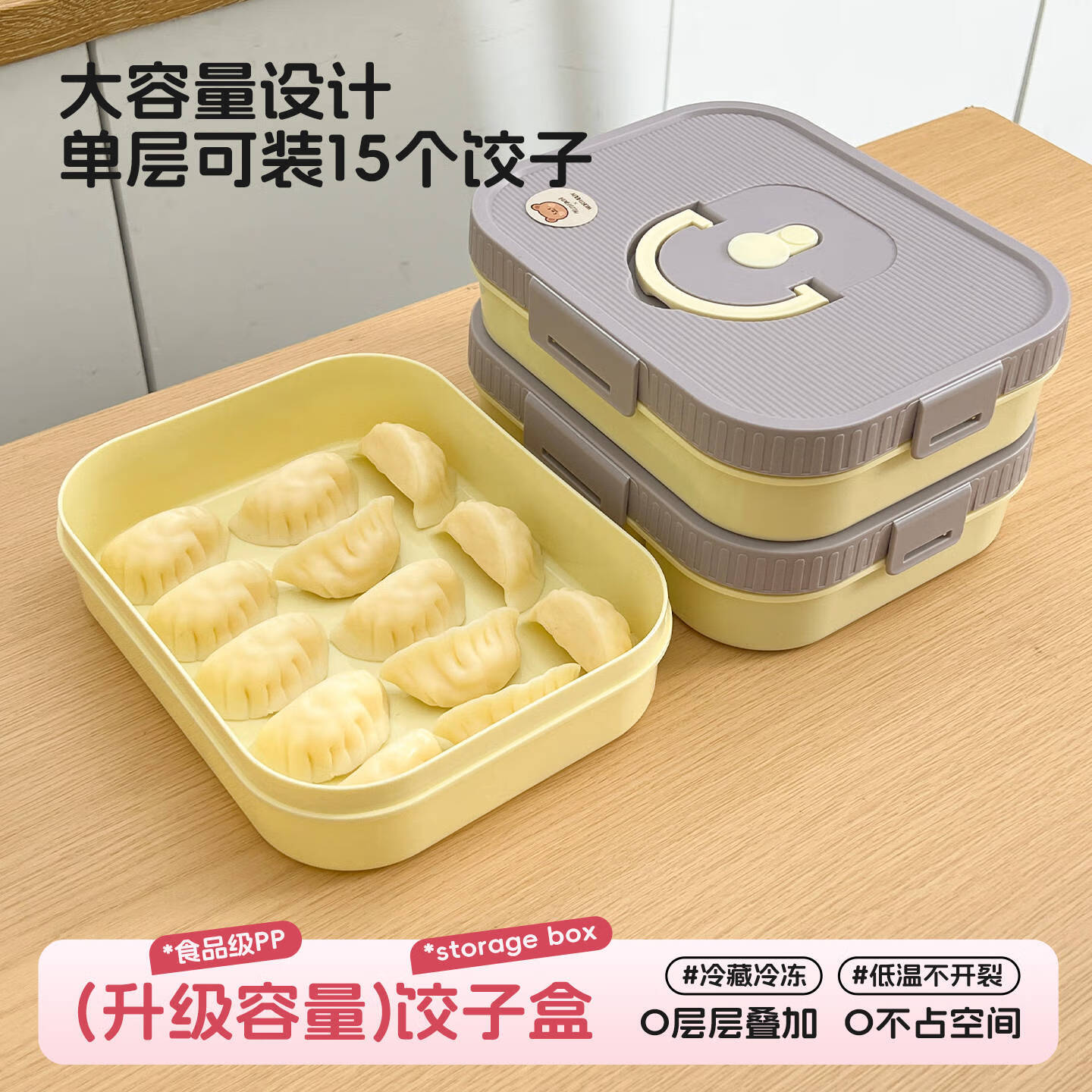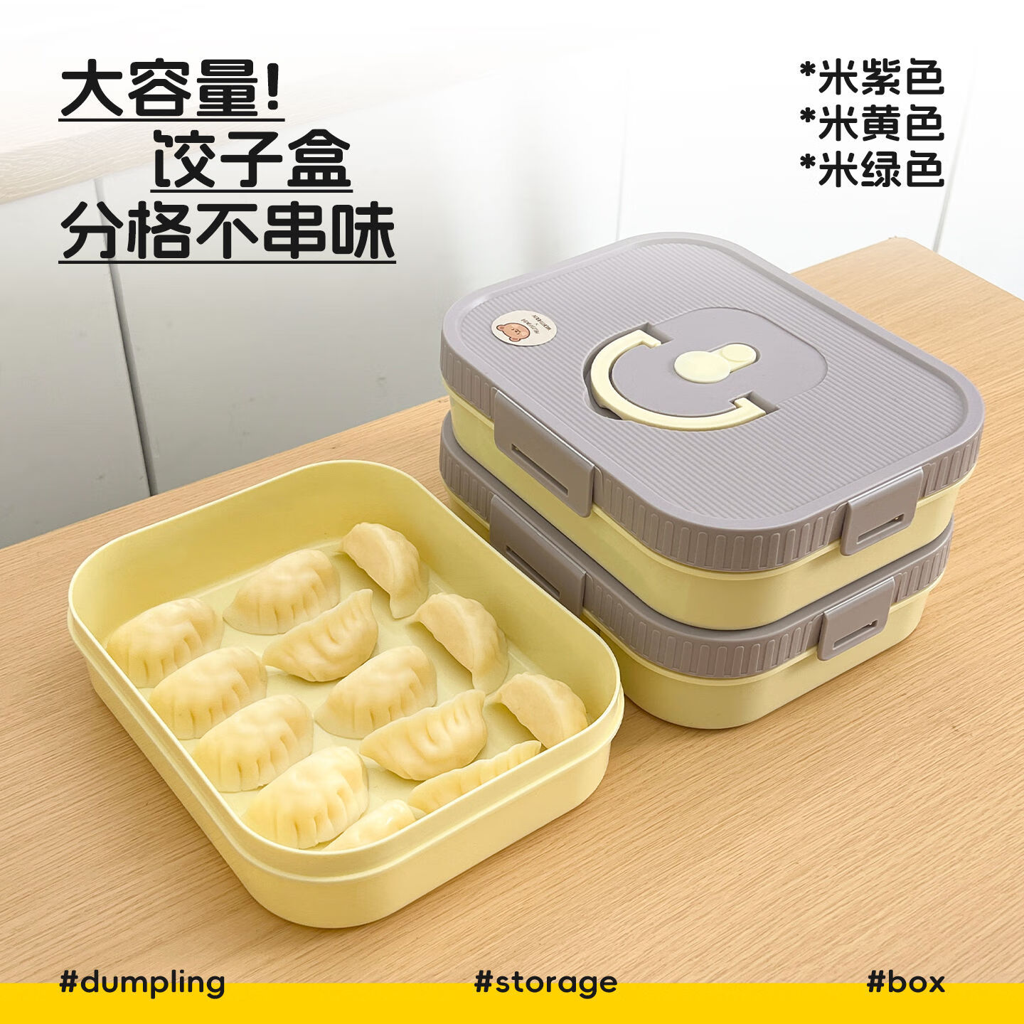 WORTHBUY Large Capacity Dumpling Box Kitchen Refrigeration Special Preservation Box Wonton & Wonton Food Grade Refrigerator Storage Box Beige - Single Compartment 1400ml