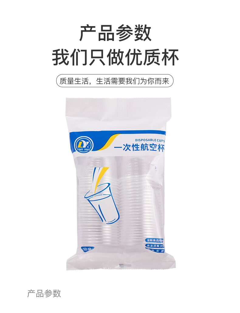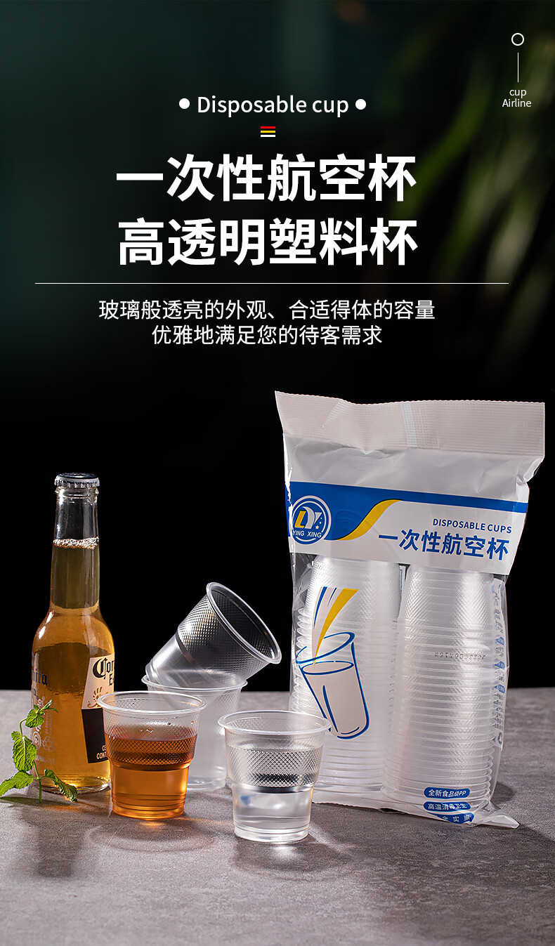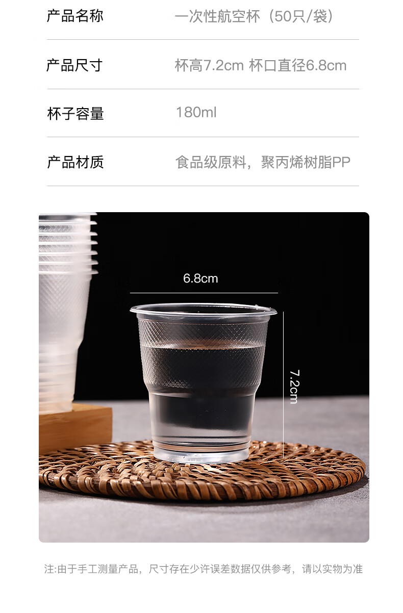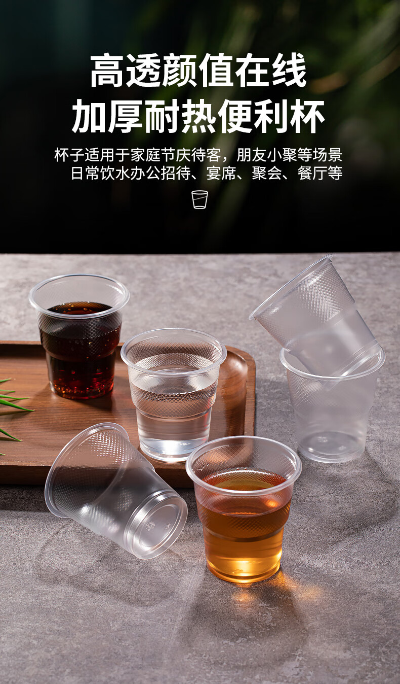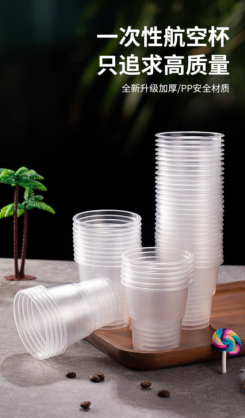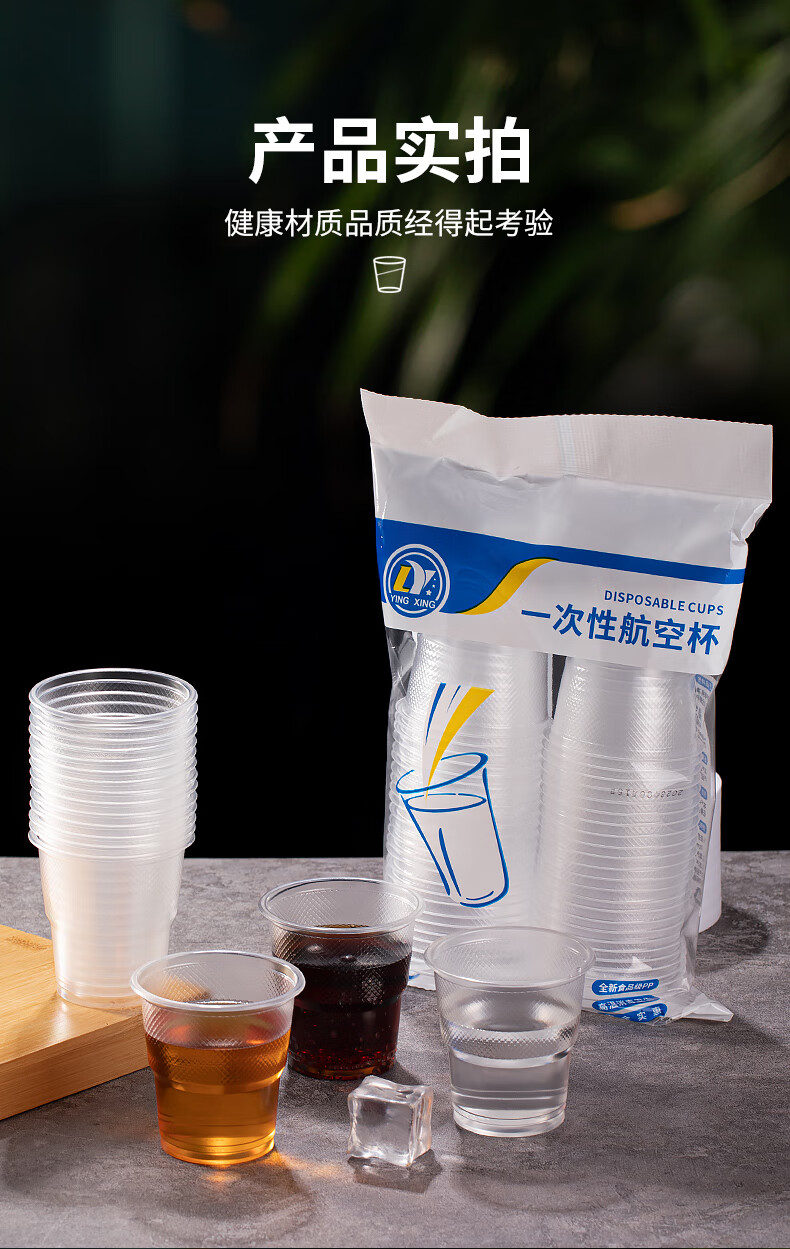 Disposable cups 50 pieces plastic cups wholesale thickened PP food grade aviation water cup household transparent wine glass drink general thick 1.4g disposable water cup 180 ml 50 pieces