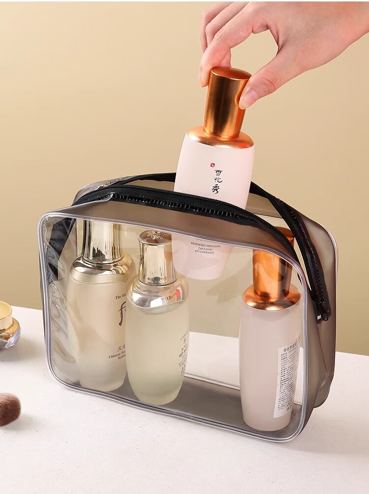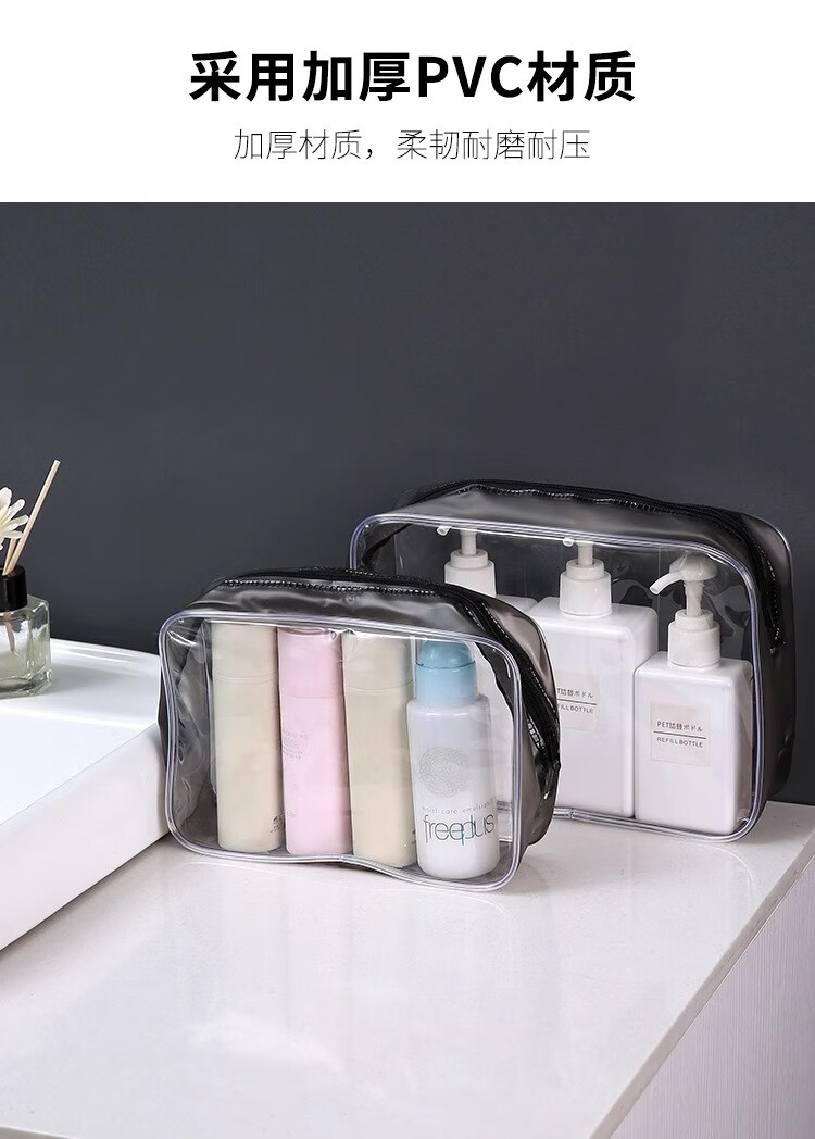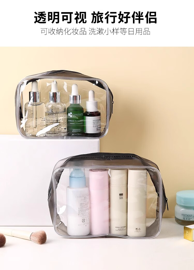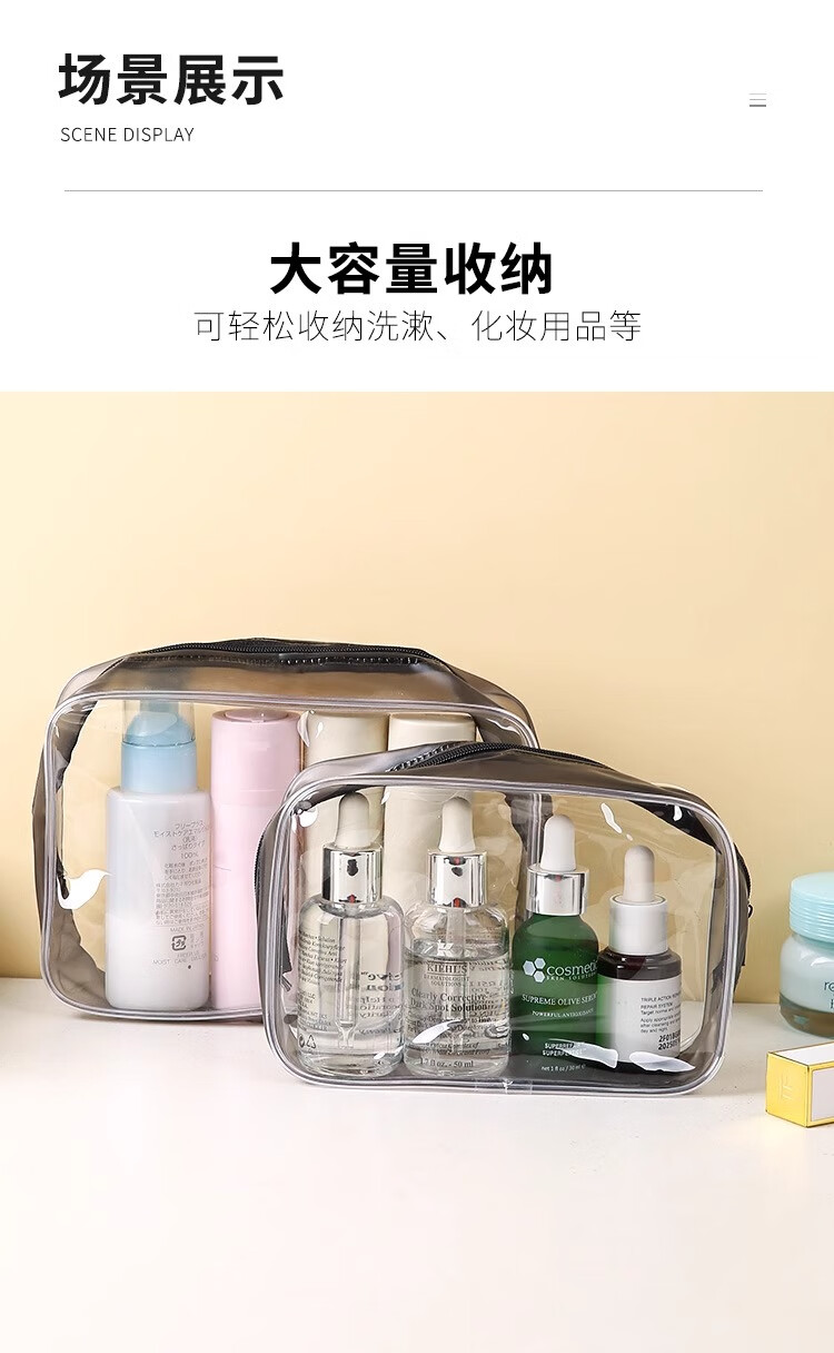 Portable Waterproof Cosmetic Bag Transparent Cosmetic Wash Bag Swimming Bath Large Capacity Storage Bag Travel Storage Bag Special Transparent Medium Black