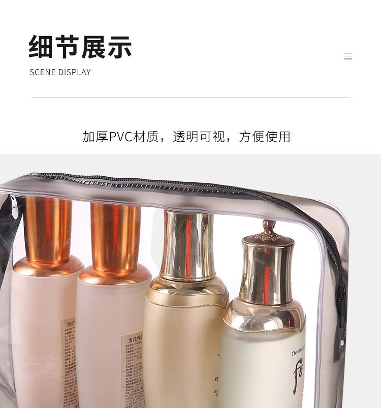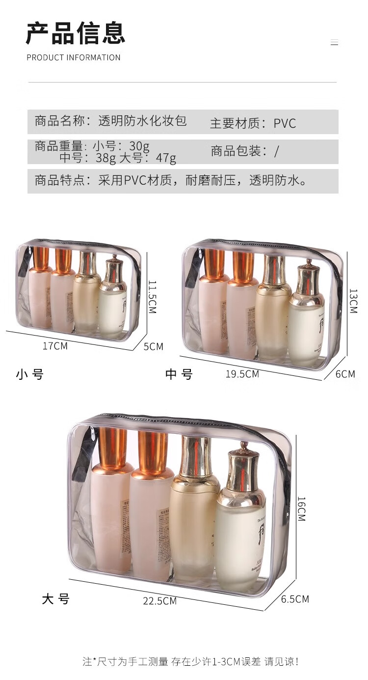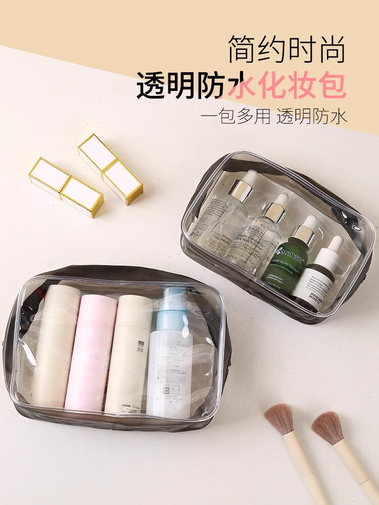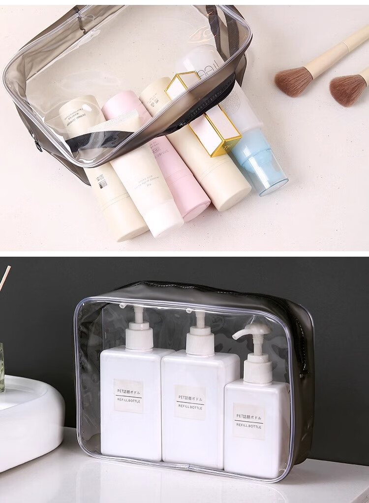 Portable Waterproof Cosmetic Bag Transparent Cosmetic Wash Bag Swimming Bath Large Capacity Storage Bag Travel Storage Bag Special Transparent Medium Black