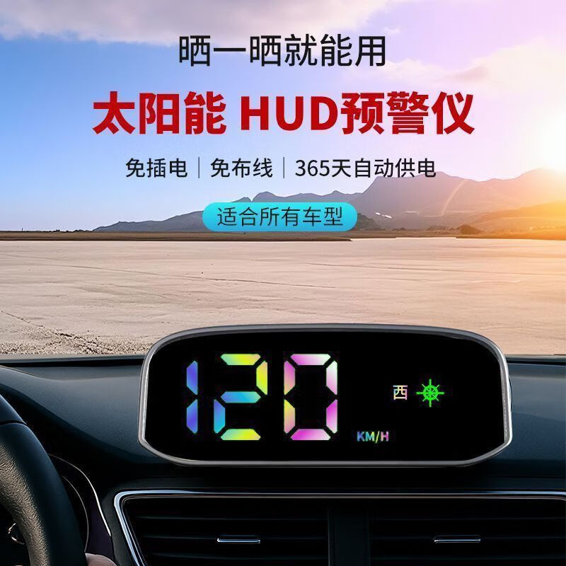 Sulianxing solar wireless car electronic dog 2025 new GPS Beidou safety warning HUD head-up display solar wireless model HUD color font