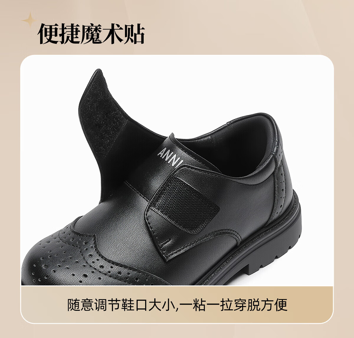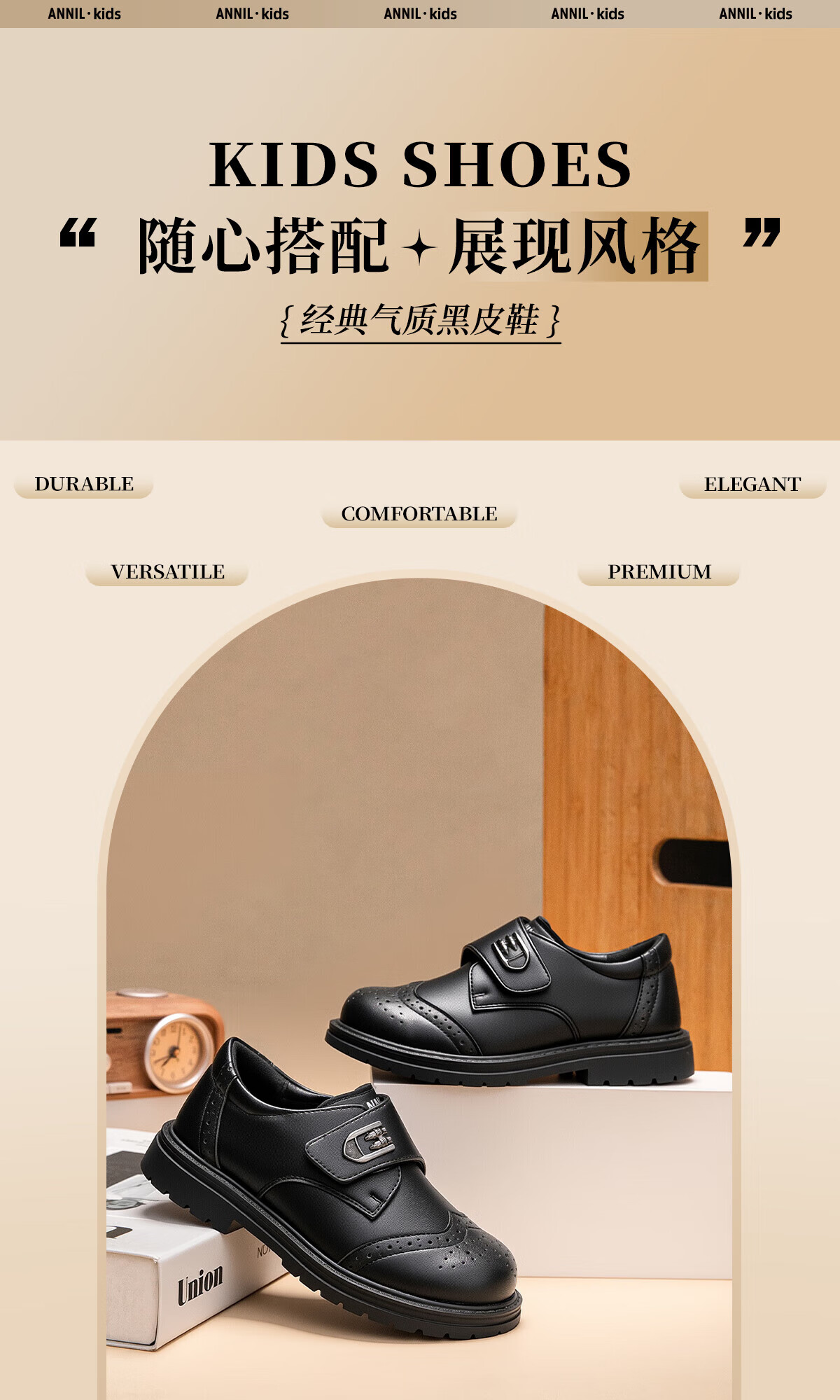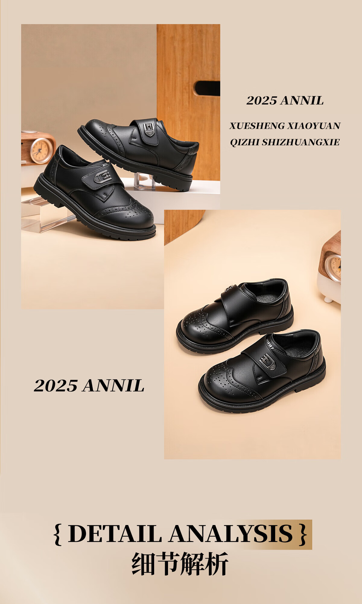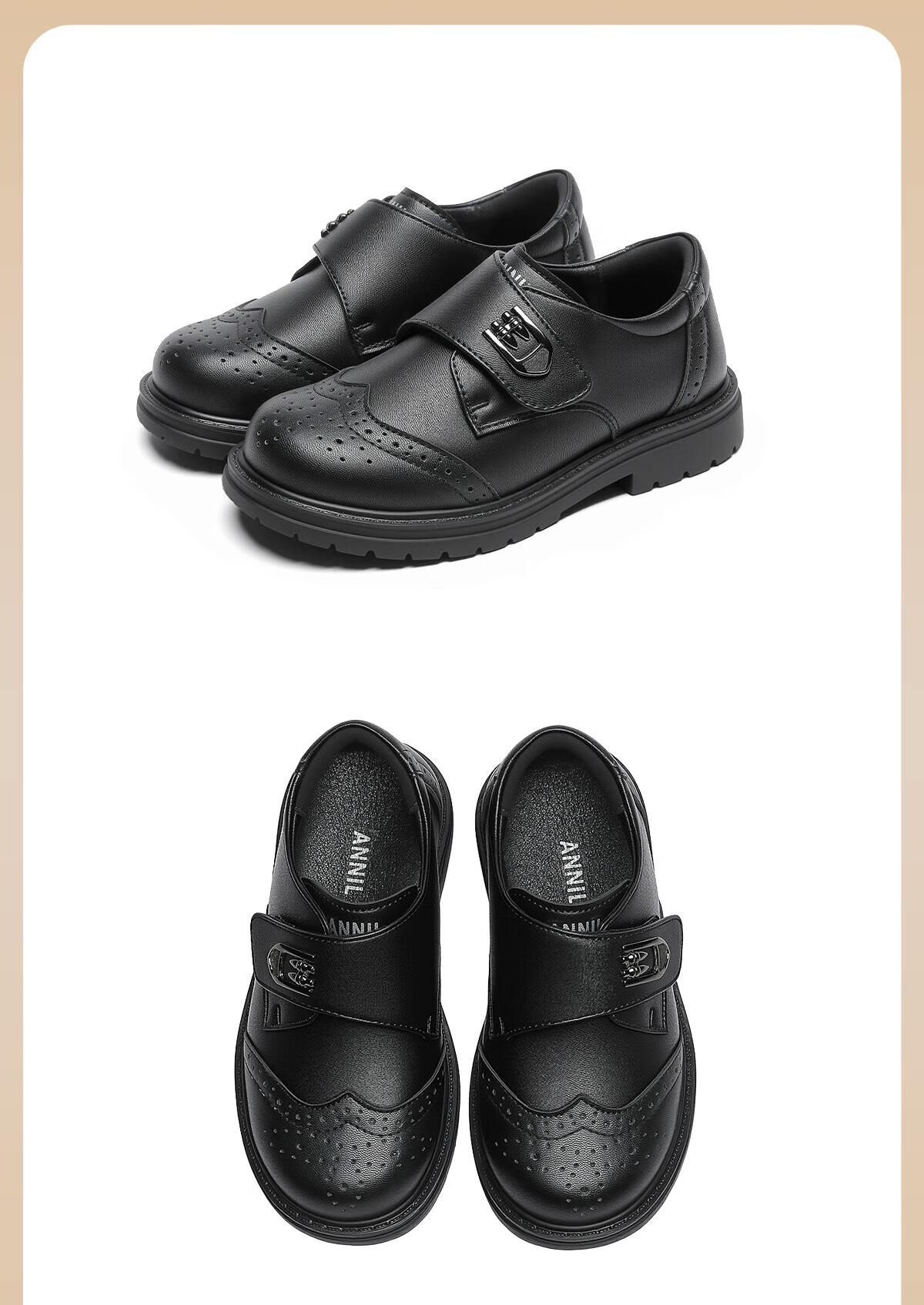 Annil (Annil) boys' leather shoes 2025 new performance small leather shoes children's leather shoes black medium and large children's black leather shoes boys 2477 black 35 inner length 22.6cm/foot length 21.6-22cm