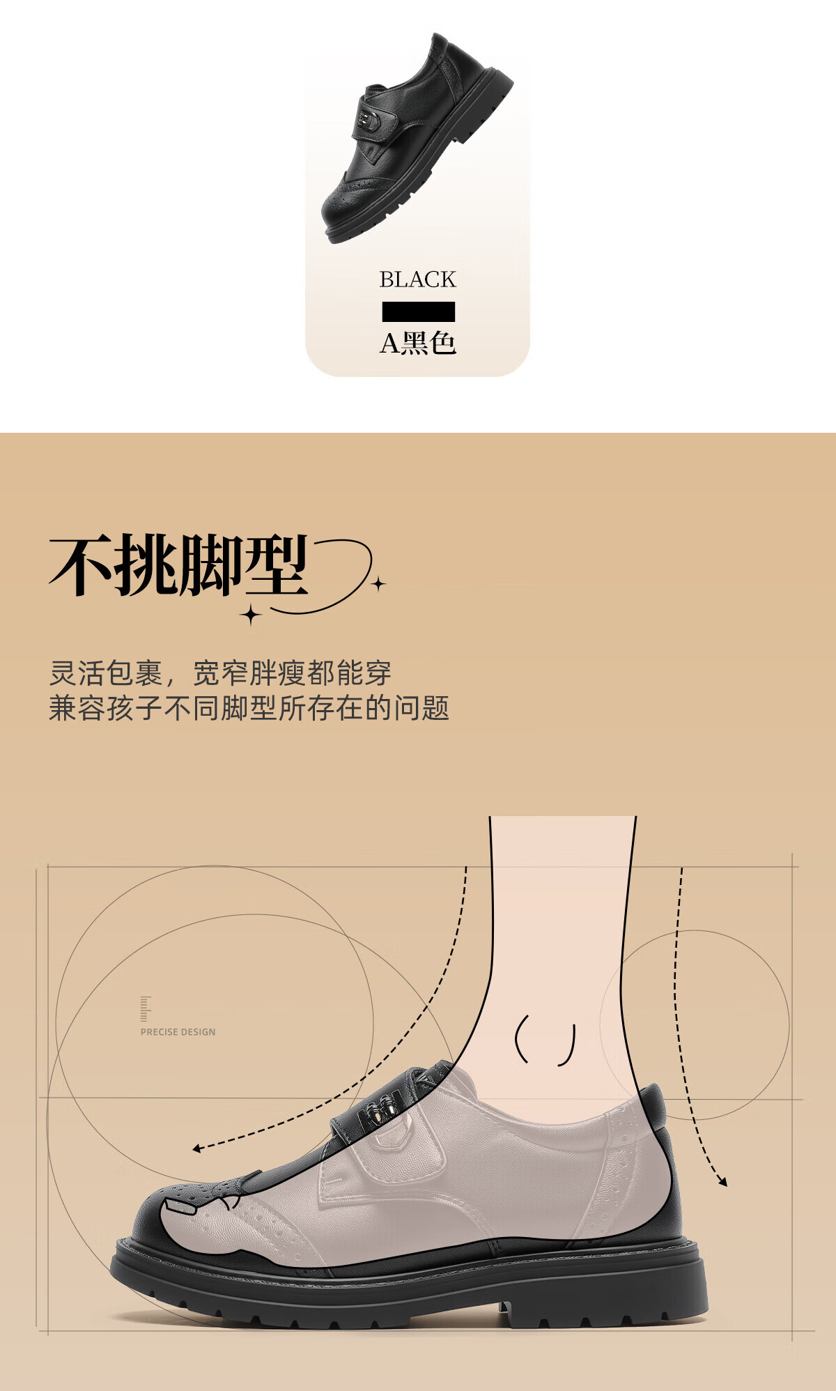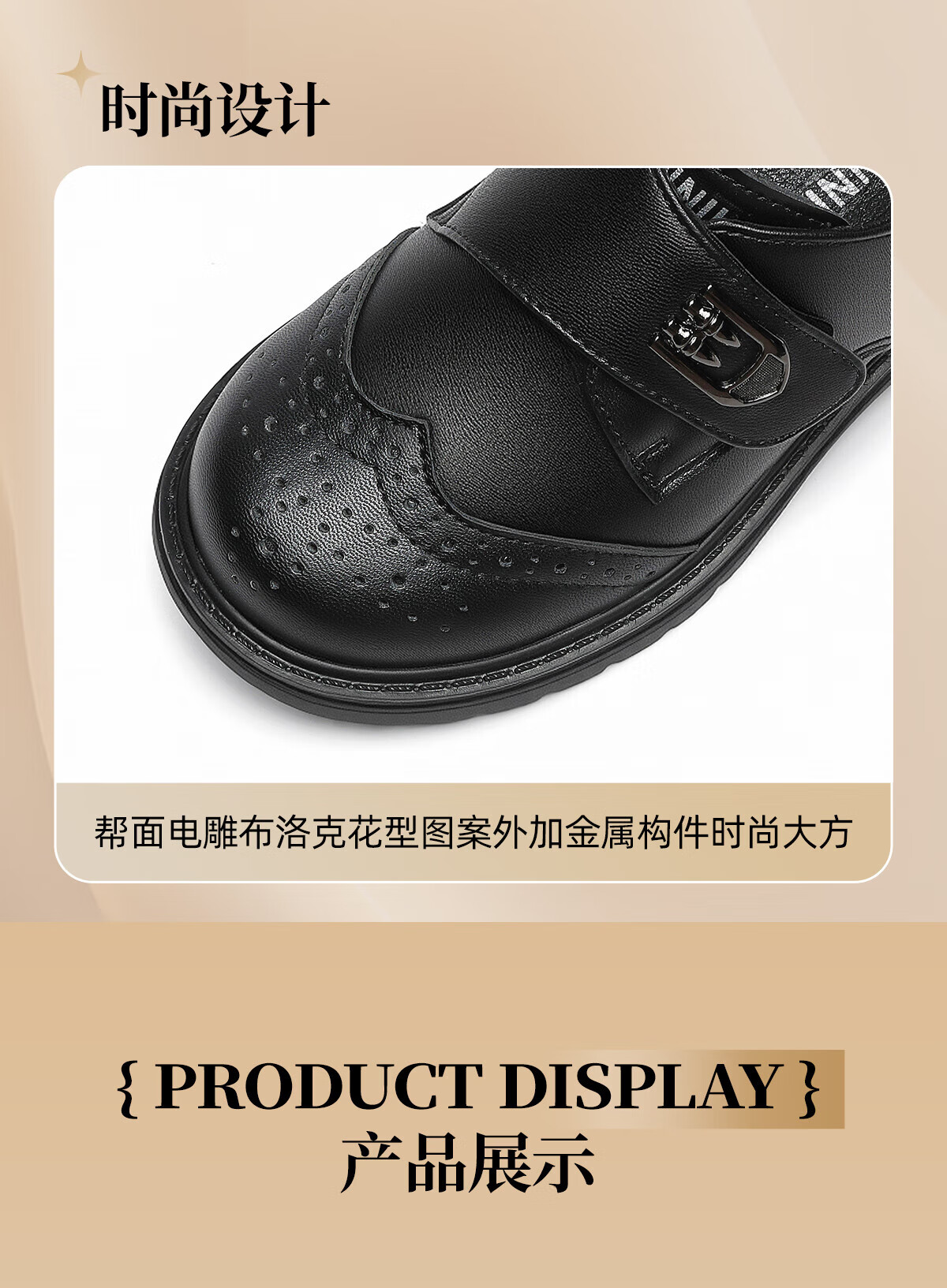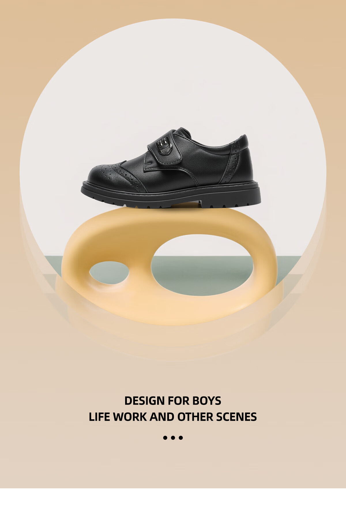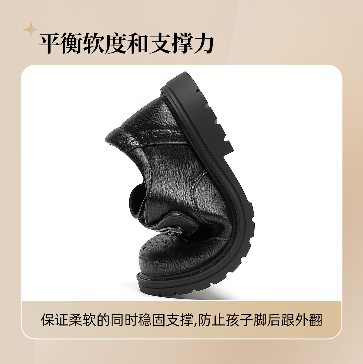 Annil (Annil) boys' leather shoes 2025 new performance small leather shoes children's leather shoes black medium and large children's black leather shoes boys 2477 black 35 inner length 22.6cm/foot length 21.6-22cm