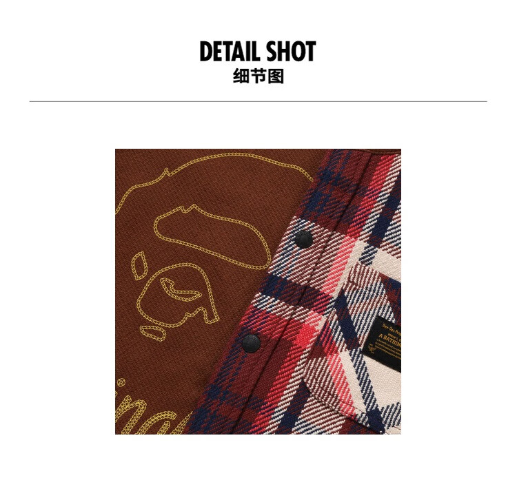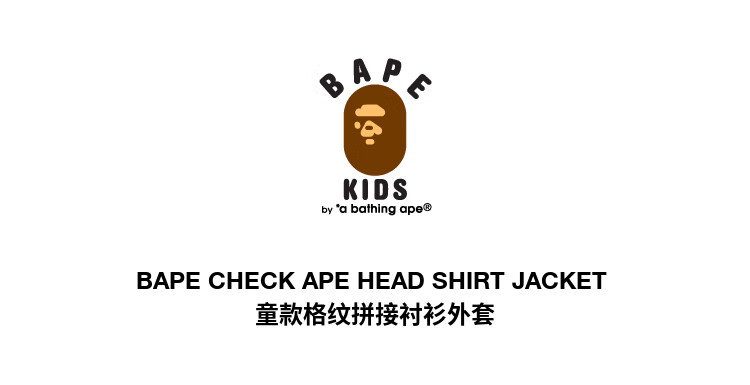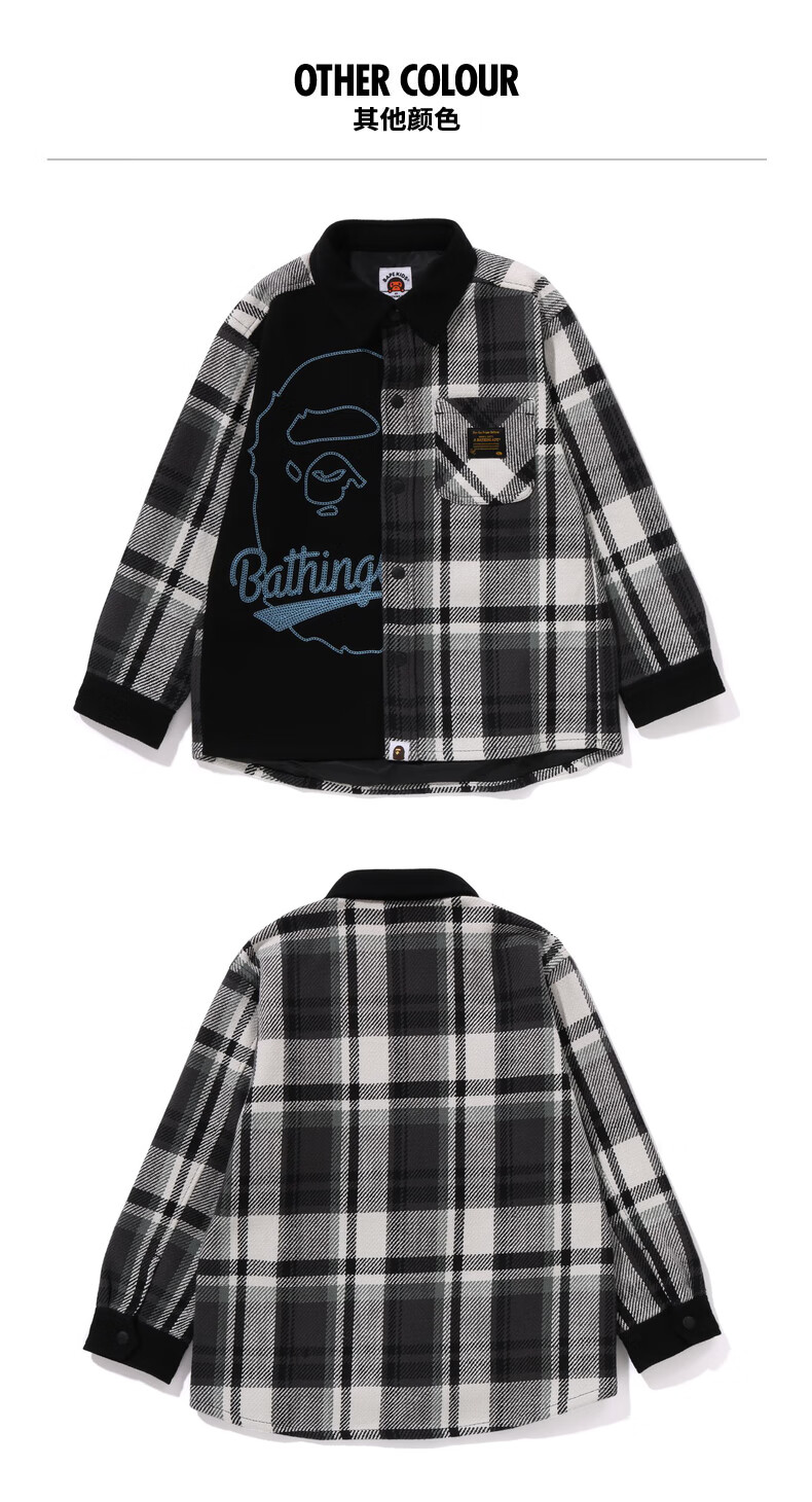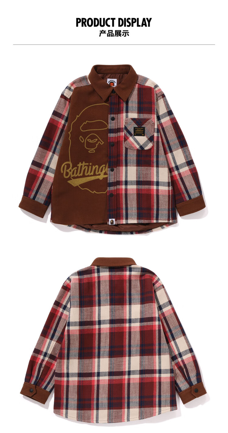 BAPE children's clothing autumn and winter ape letter embroidery plaid stitching long-sleeved shirt jacket 340006L red RDX 140cm one size