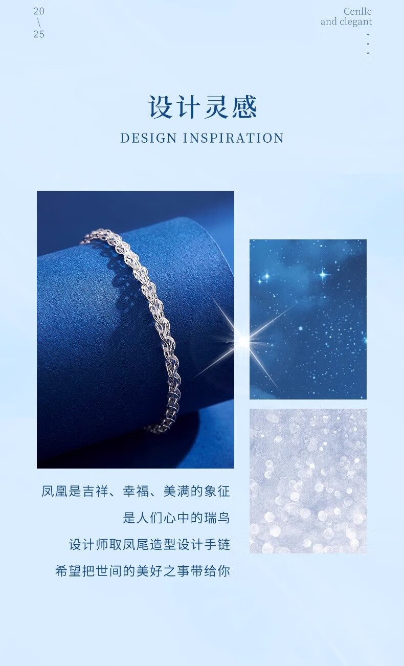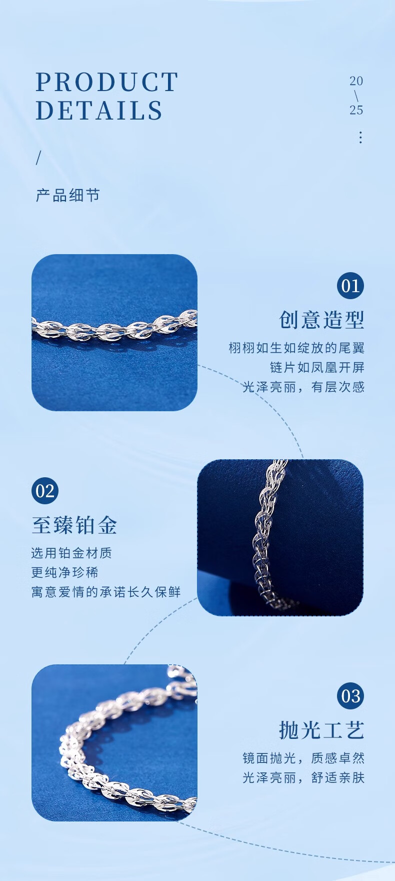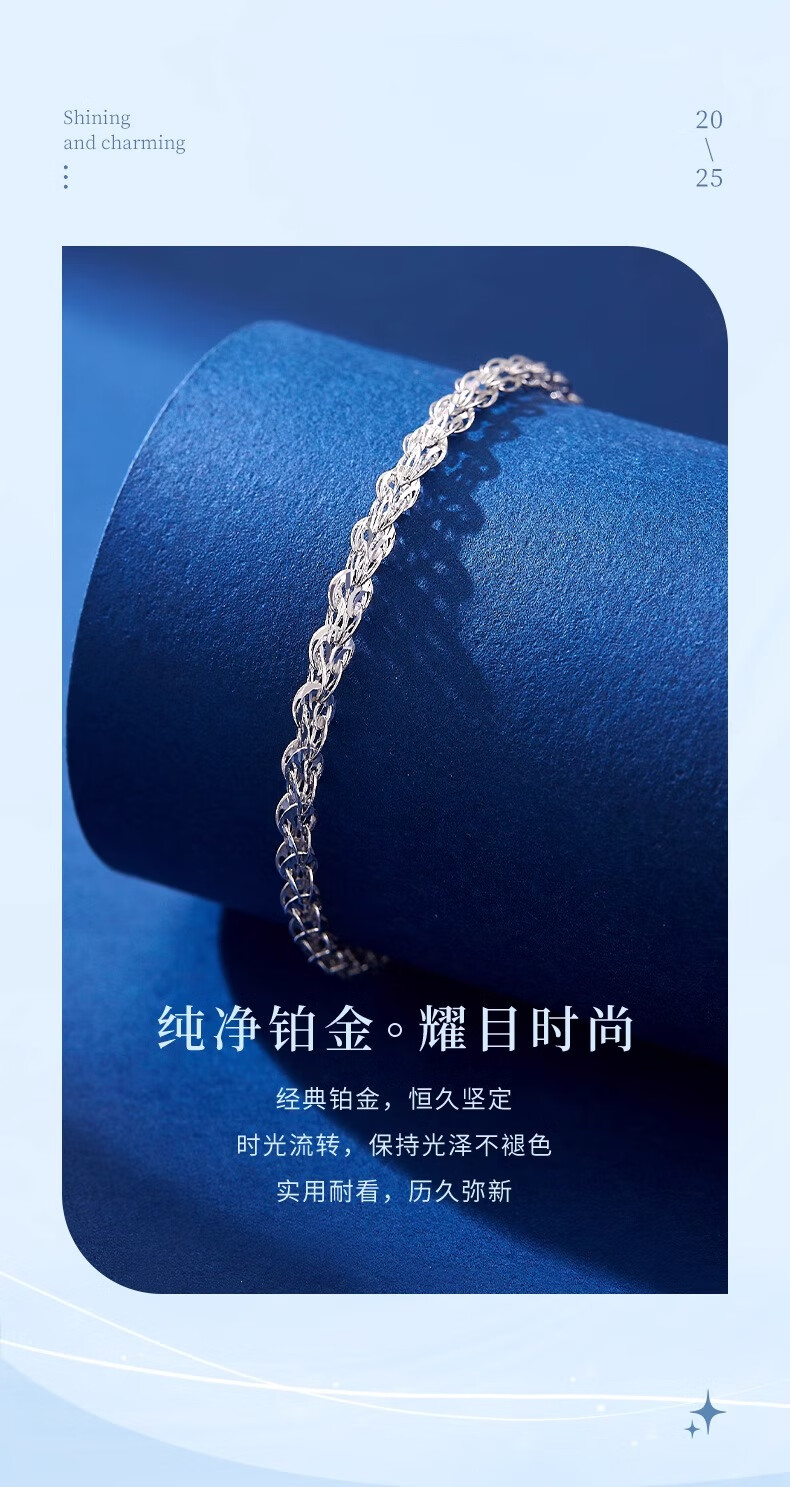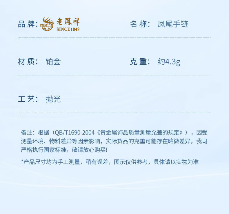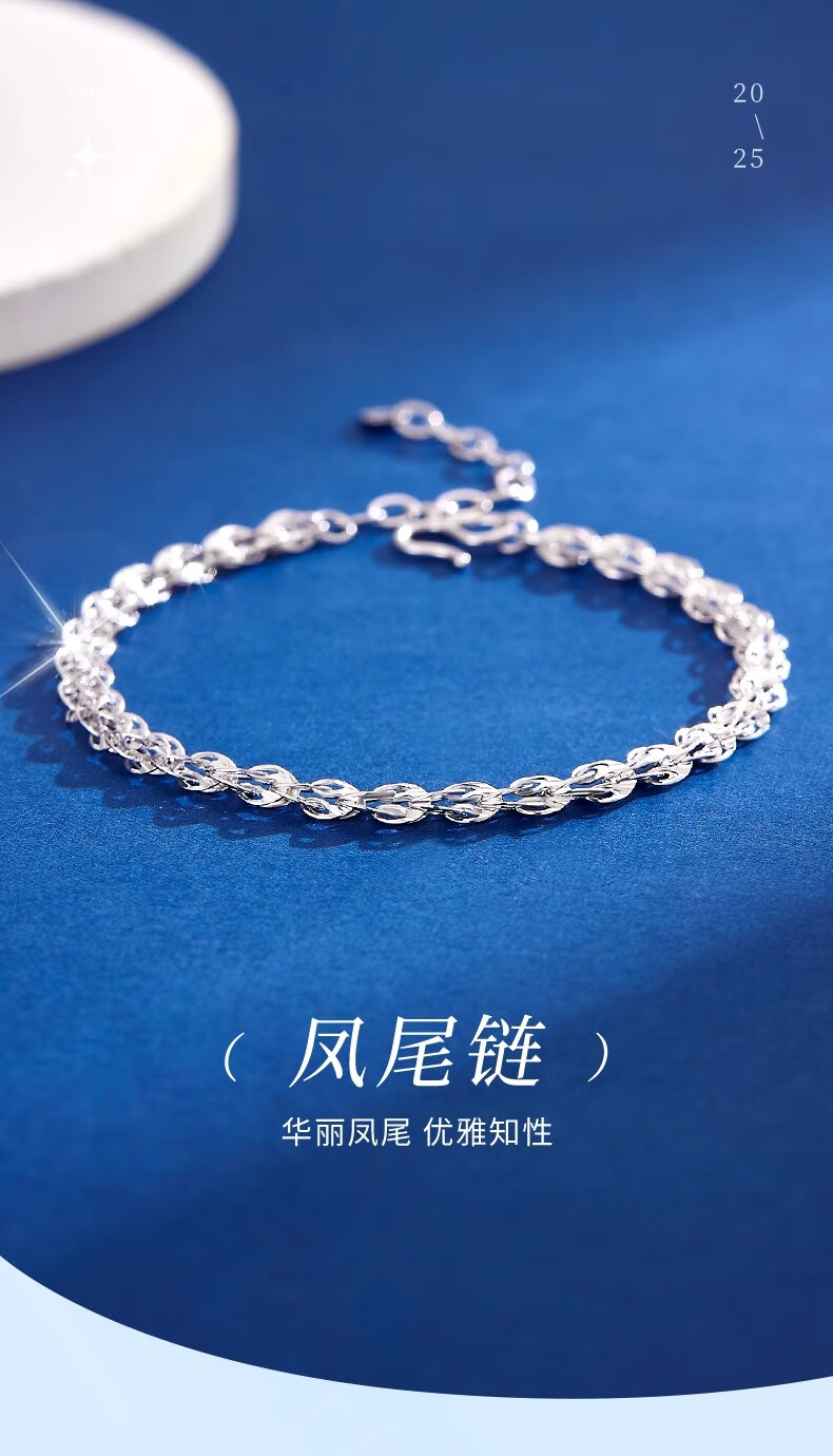 Lao Fengxiang PT950 platinum bracelet for women, platinum phoenix tail chain, Mid-Autumn Festival birthday gift for girlfriend and wife PT950 platinum phoenix tail bracelet, about 2.1g, brand gift box