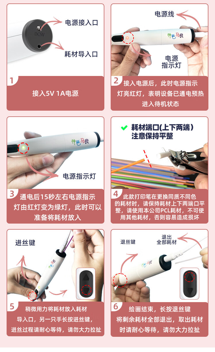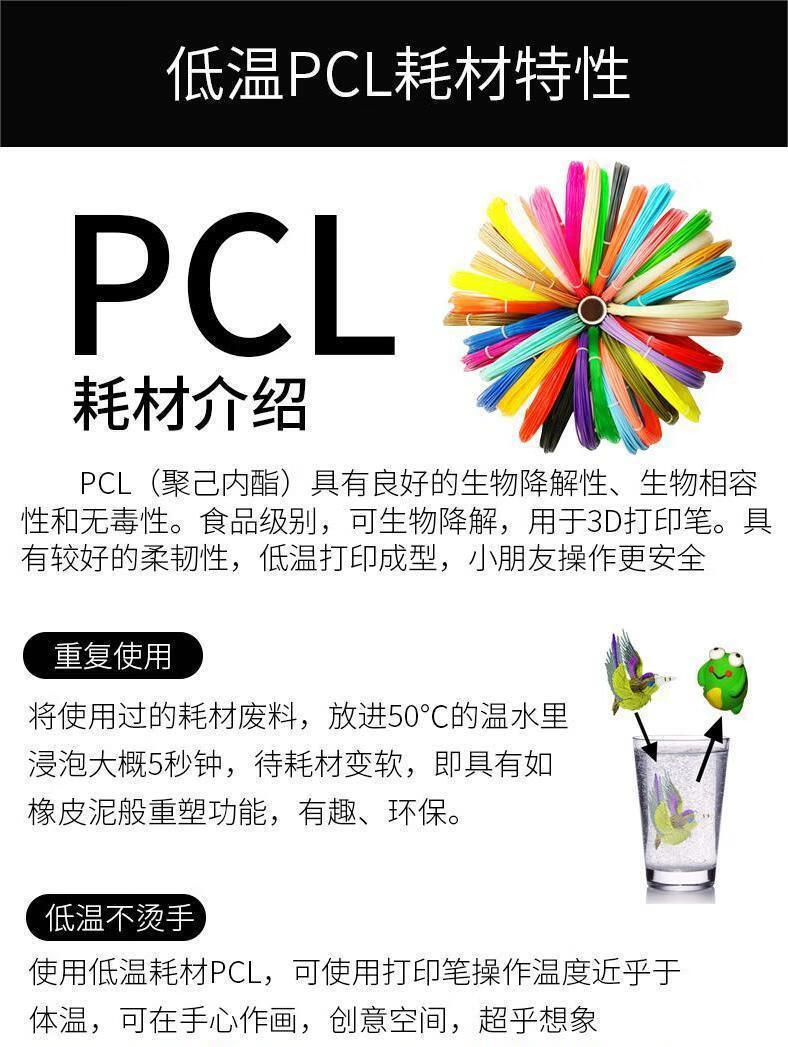 3D printing pen diy painting pen low temperature smart graffiti toys children's gifts educational toys children's gifts 5m PCL low temperature consumables roll (random color)
