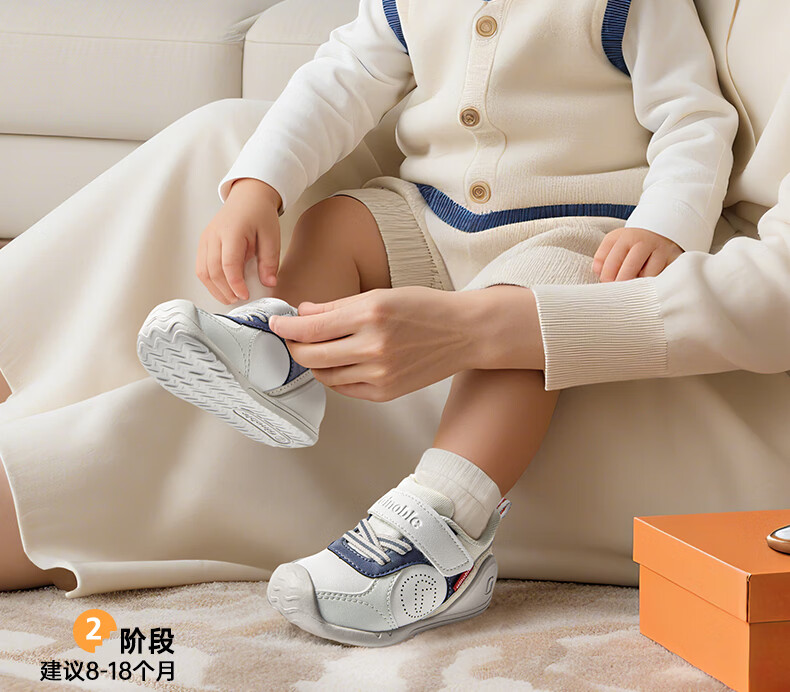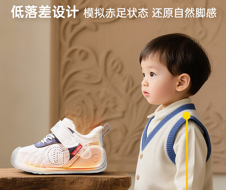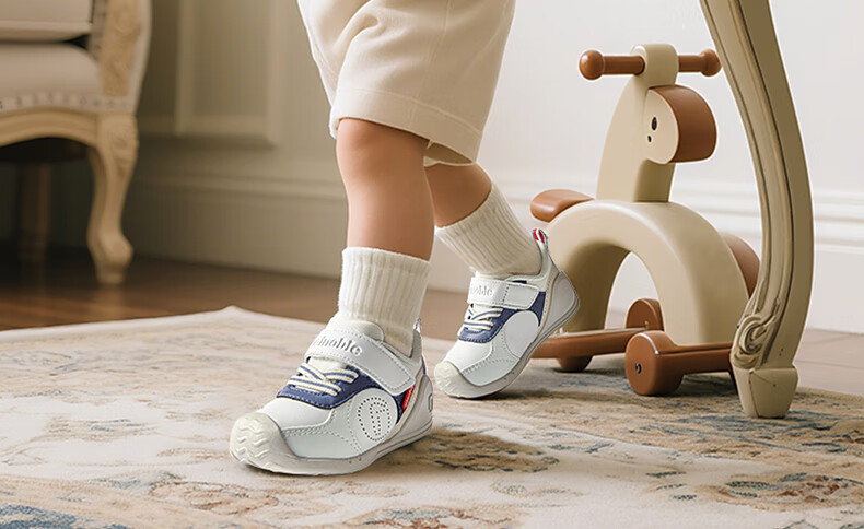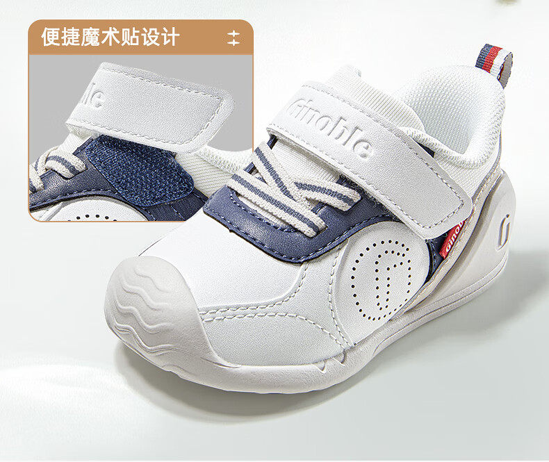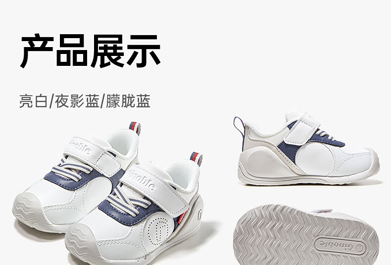 Genopu 2025 autumn soft sole breathable baby walking shoes, baby functional shoes, toddler shoes for boys and girls GB2459 bright white_night shadow blue_hazy blue 20 125mm suitable for foot length 125-129mm