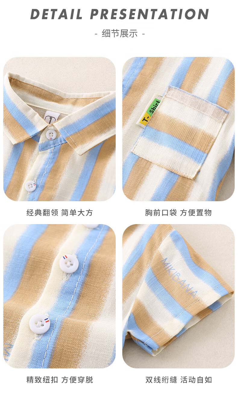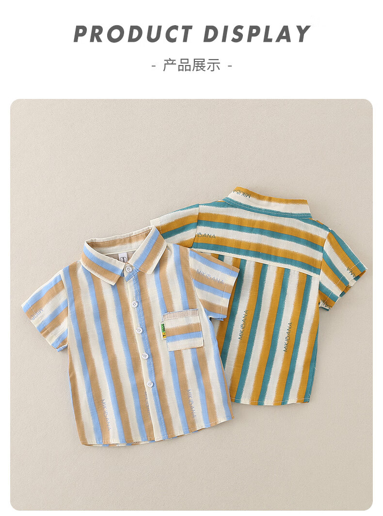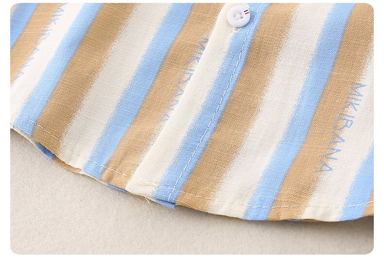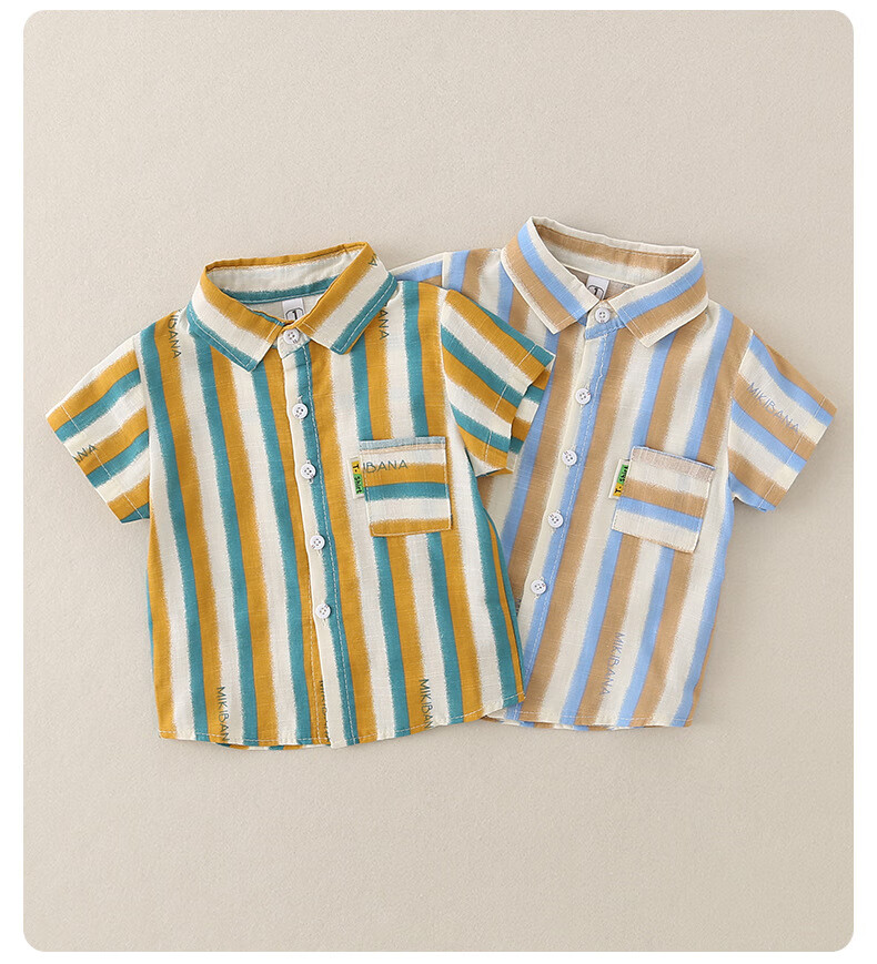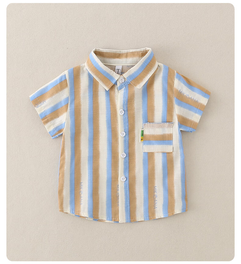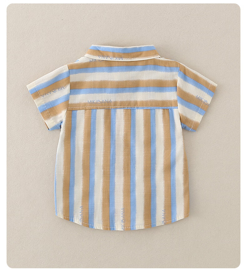 2025 new summer style boys' vertical striped shirt short-sleeved jacket baby thin summer outer wear Korean style shirt blue 130 cm