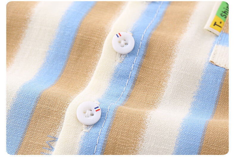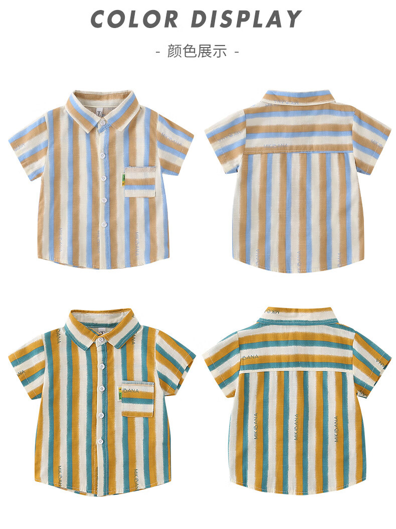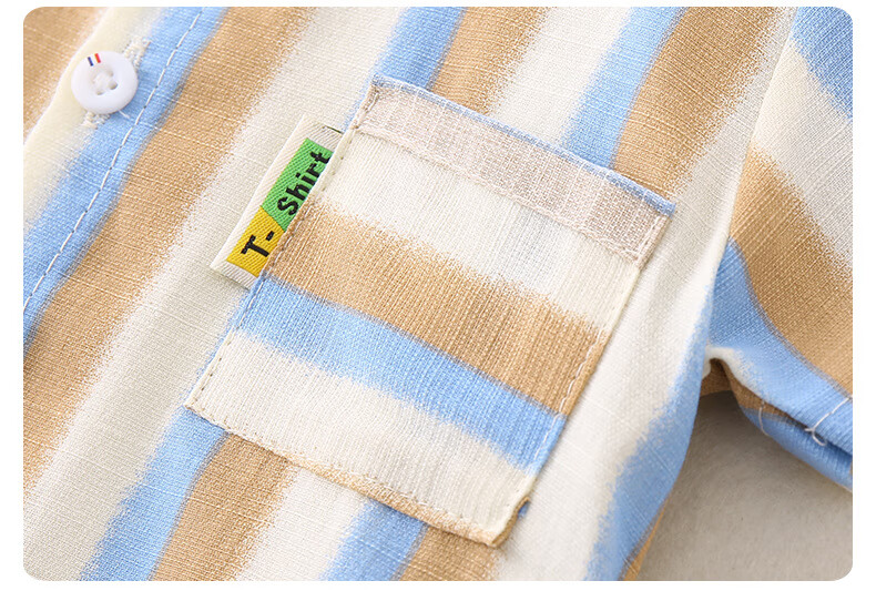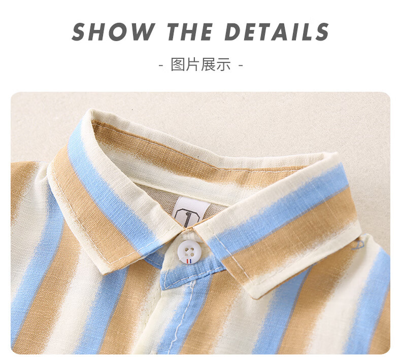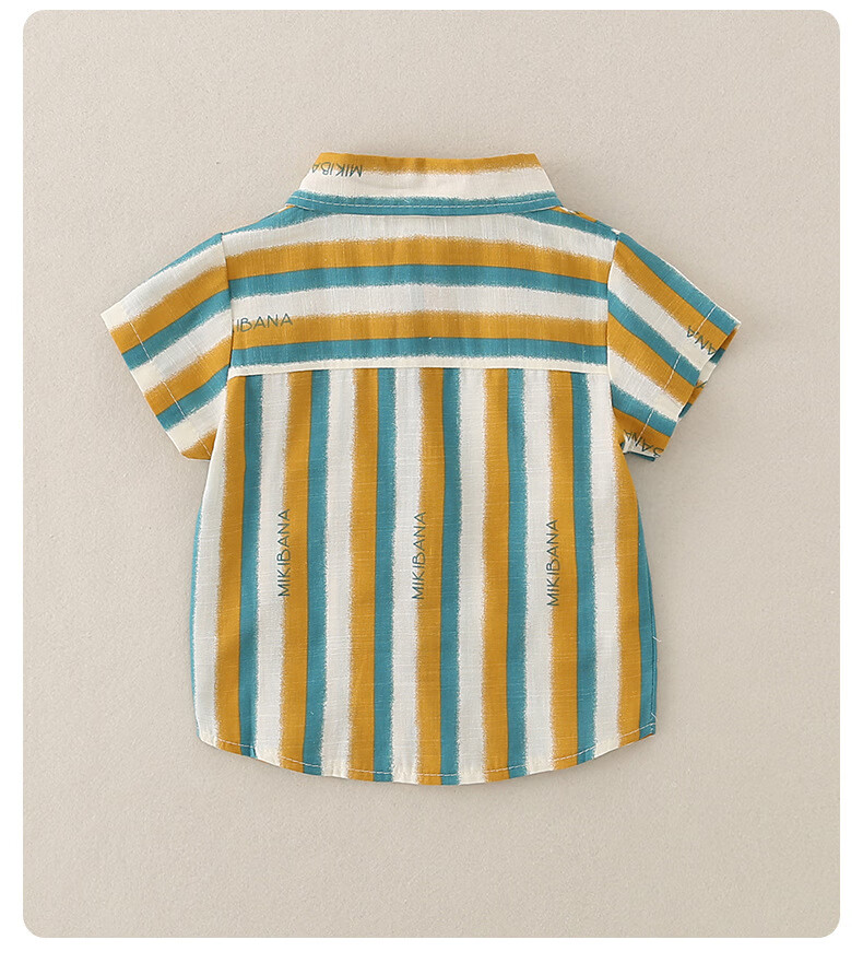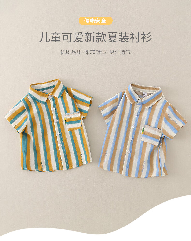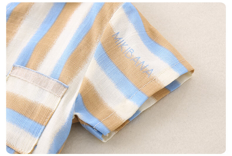 2025 new summer style boys' vertical striped shirt short-sleeved jacket baby thin summer outer wear Korean style shirt blue 130 cm