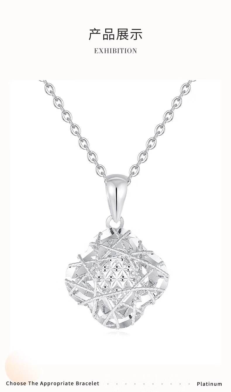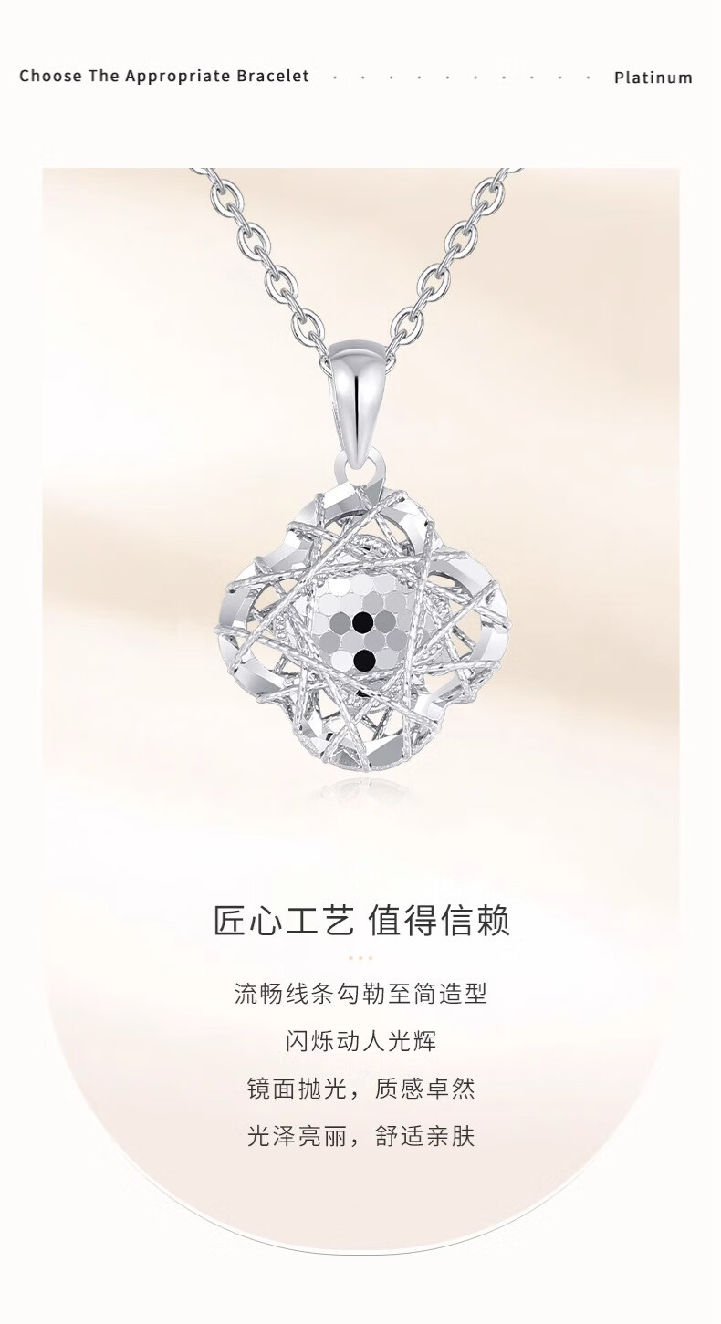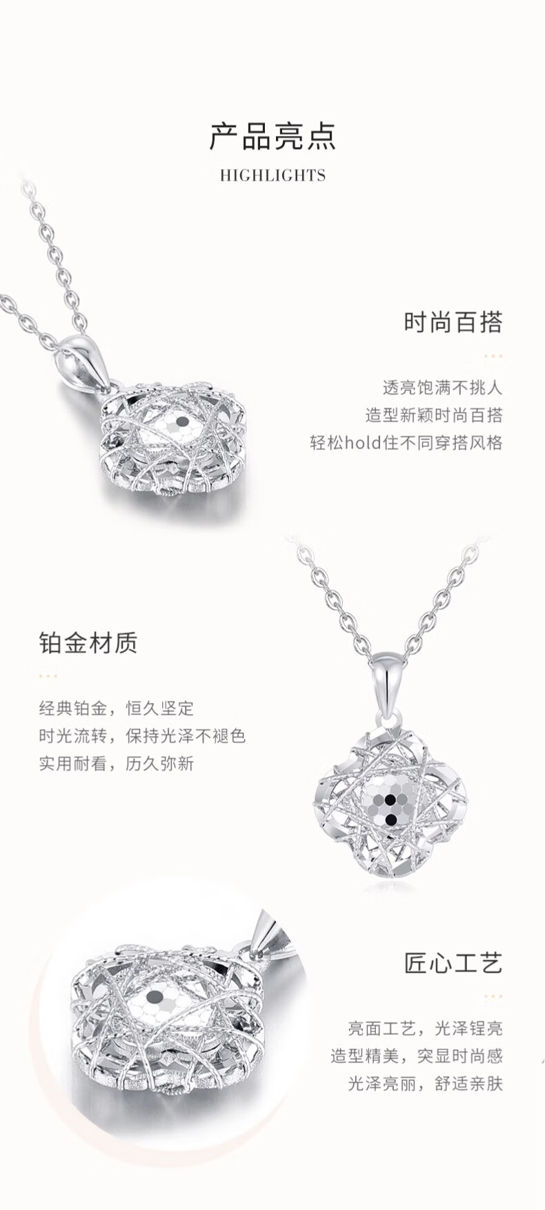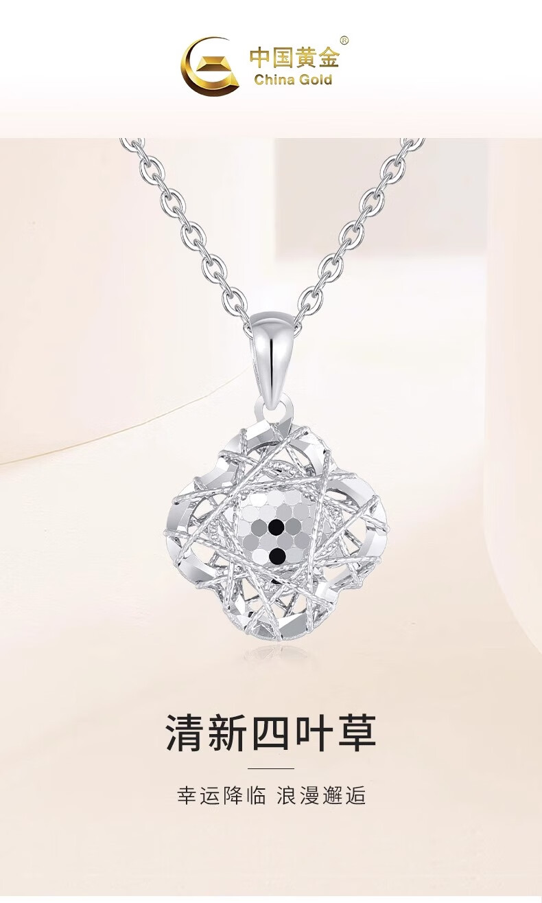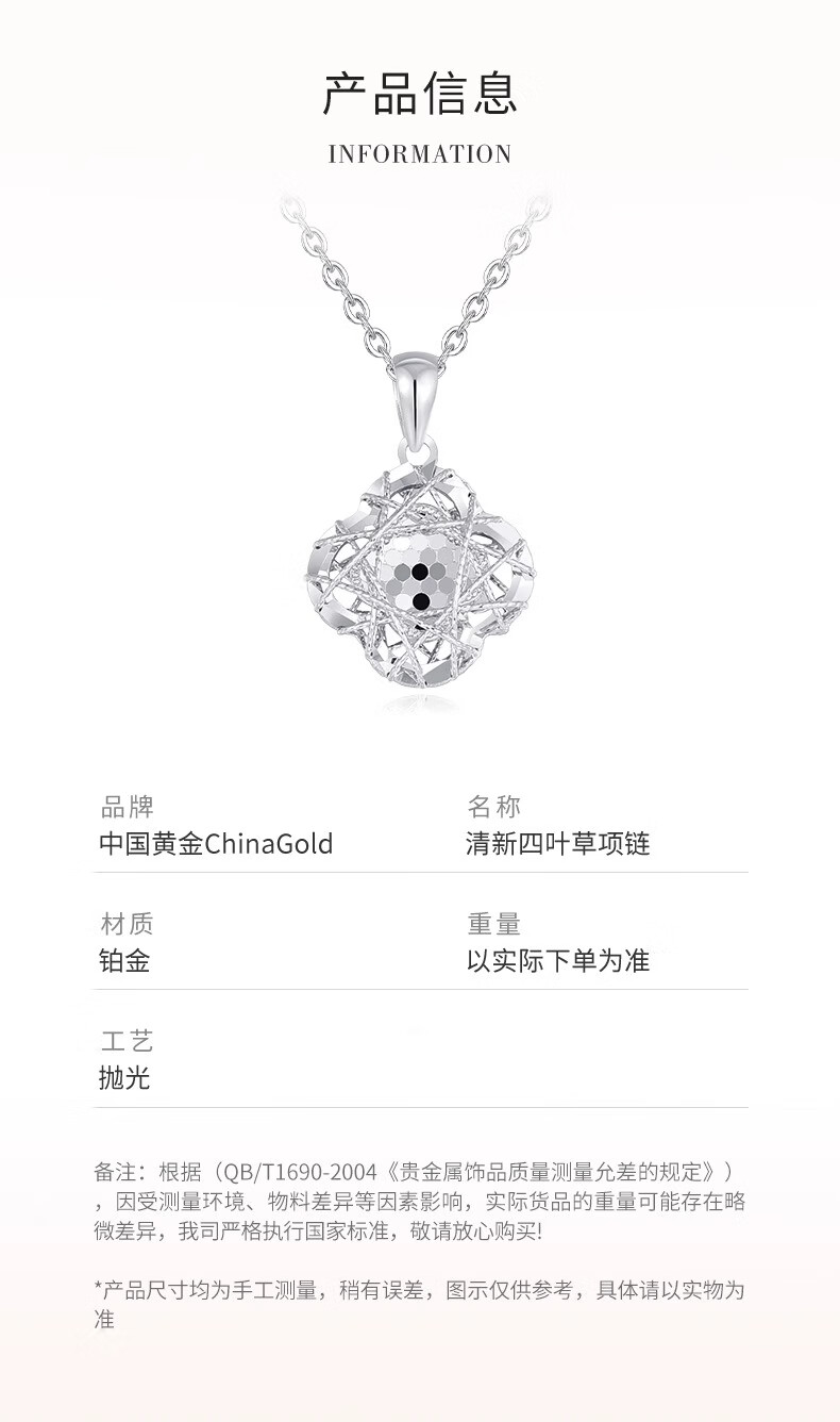 China Gold (CHINA GOLD) Crushed Ice Four-leaf Clover Platinum Pendant for Women PT950 Platinum Necklace Practical Valentine's Day Birthday Gift for Girlfriend PT950 Platinum Four-leaf Clover Pendant About 2.1g Free Silver Chain