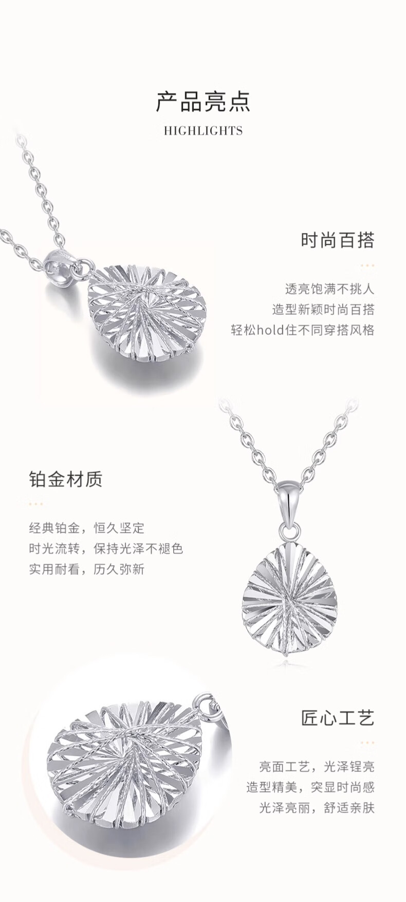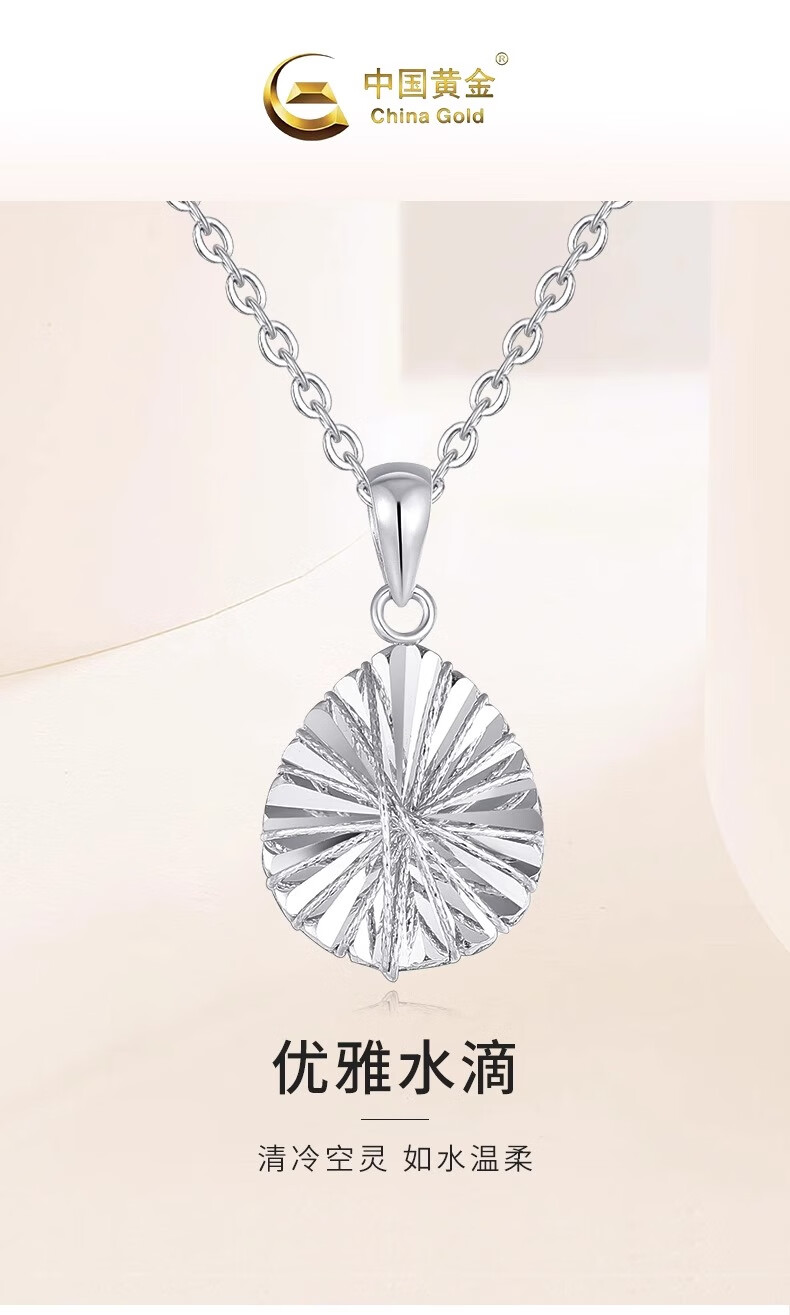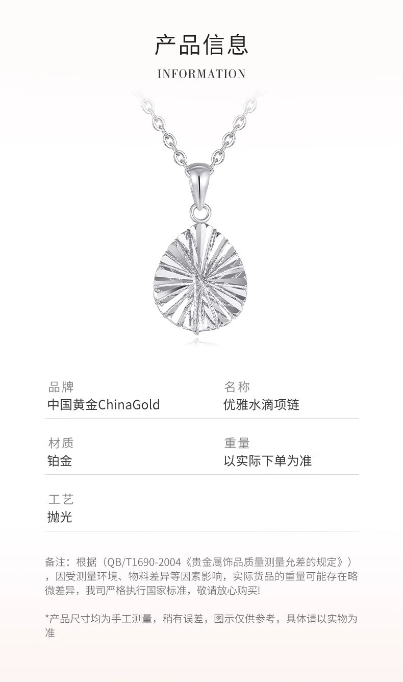 China Gold (CHINA GOLD) PT950 platinum water drop pendant, new light luxury and high-end platinum necklace for girls, birthday gift for girlfriend, PT950 platinum water drop pendant, free sterling silver chain, about 2.5g