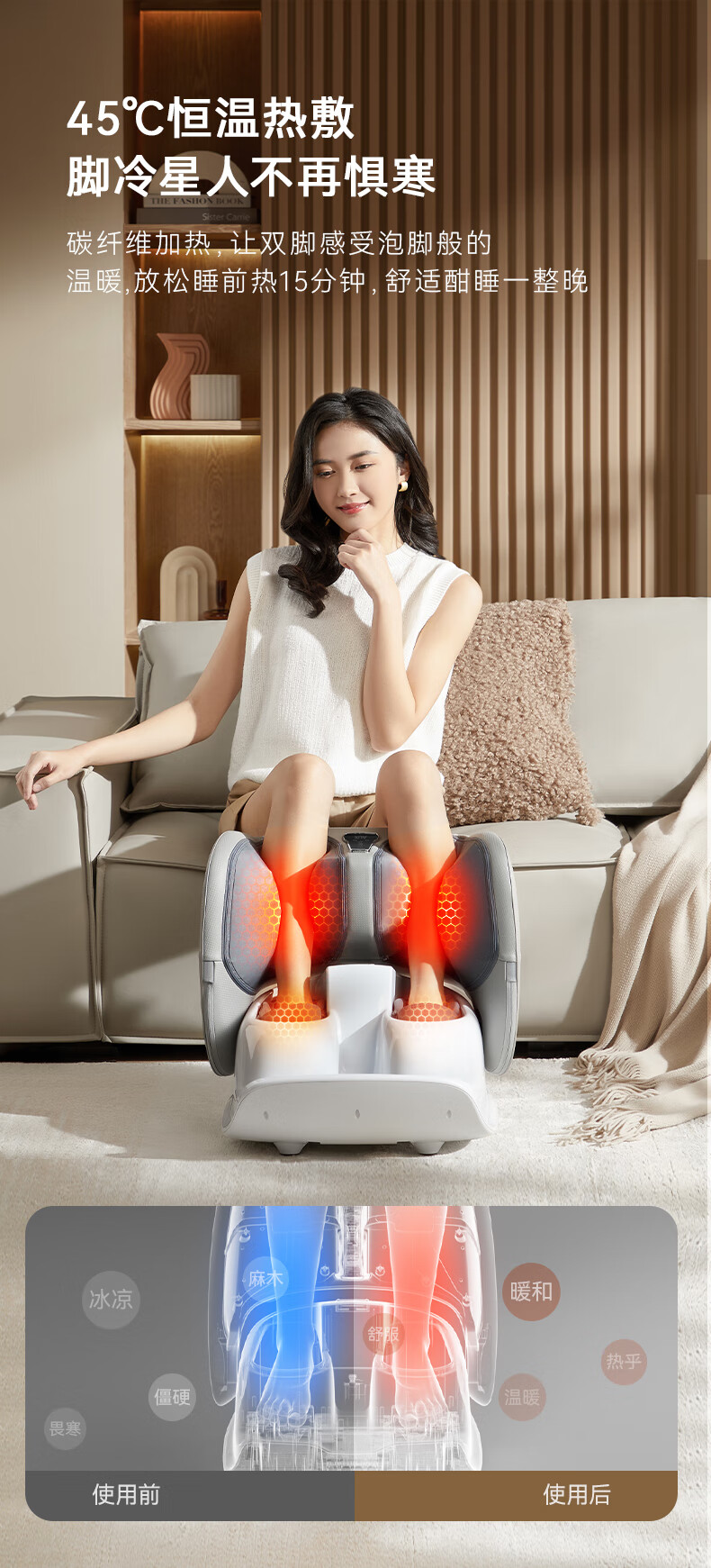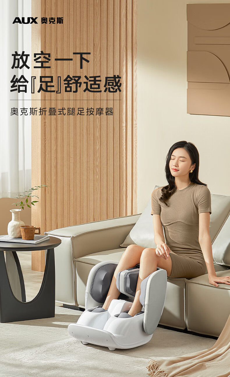 AUX foot massage machine, integrated foot and foot massager, leg massager, fully automatic kneading thigh and calf muscles, a gift for parents and elders, off-white Thai rolling and scraping + high-frequency leg shaking + air bag full wrapping + foldable, high-end and practical, a gift for elderly parents, men, and girls.
