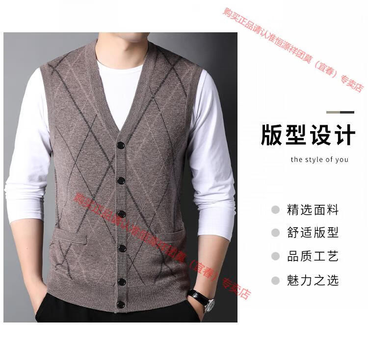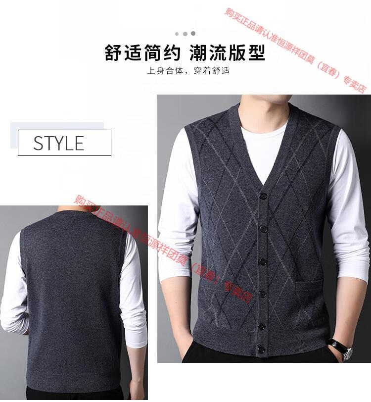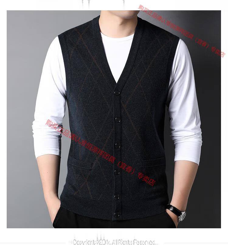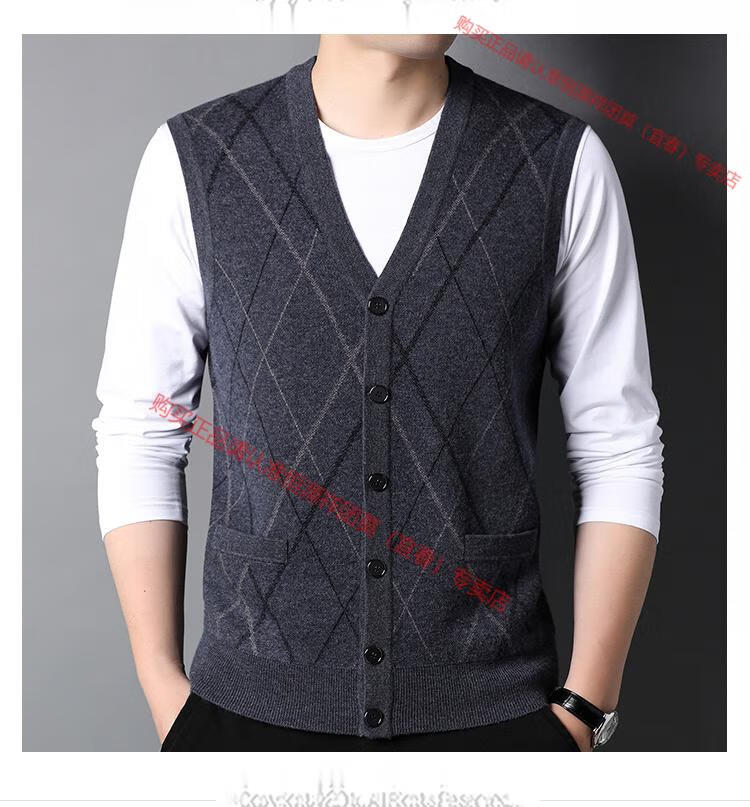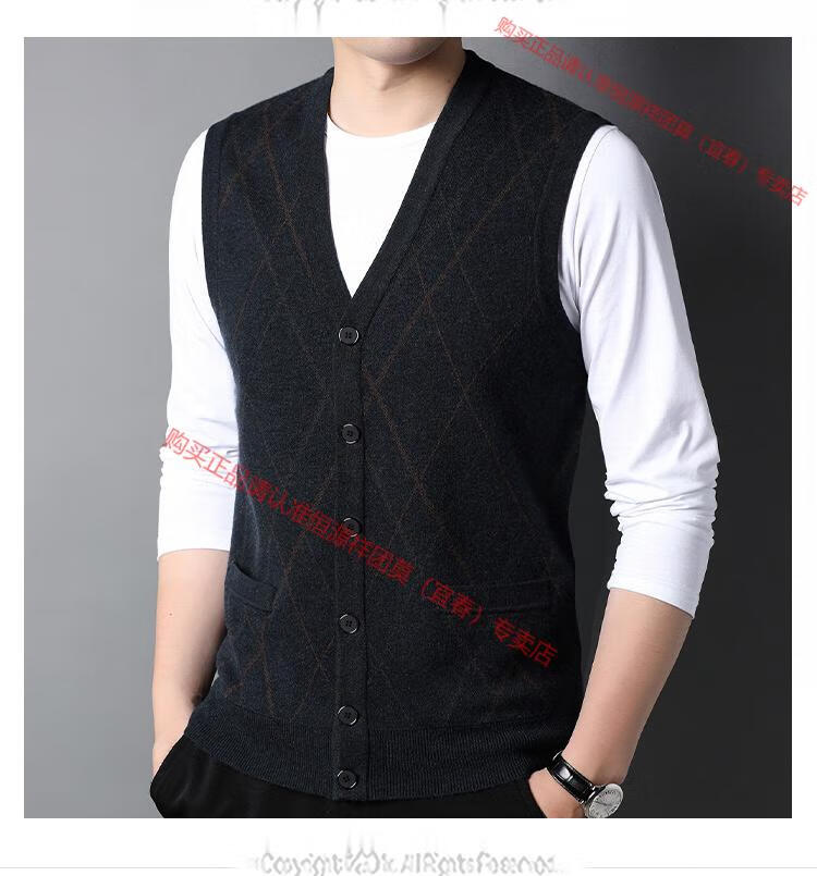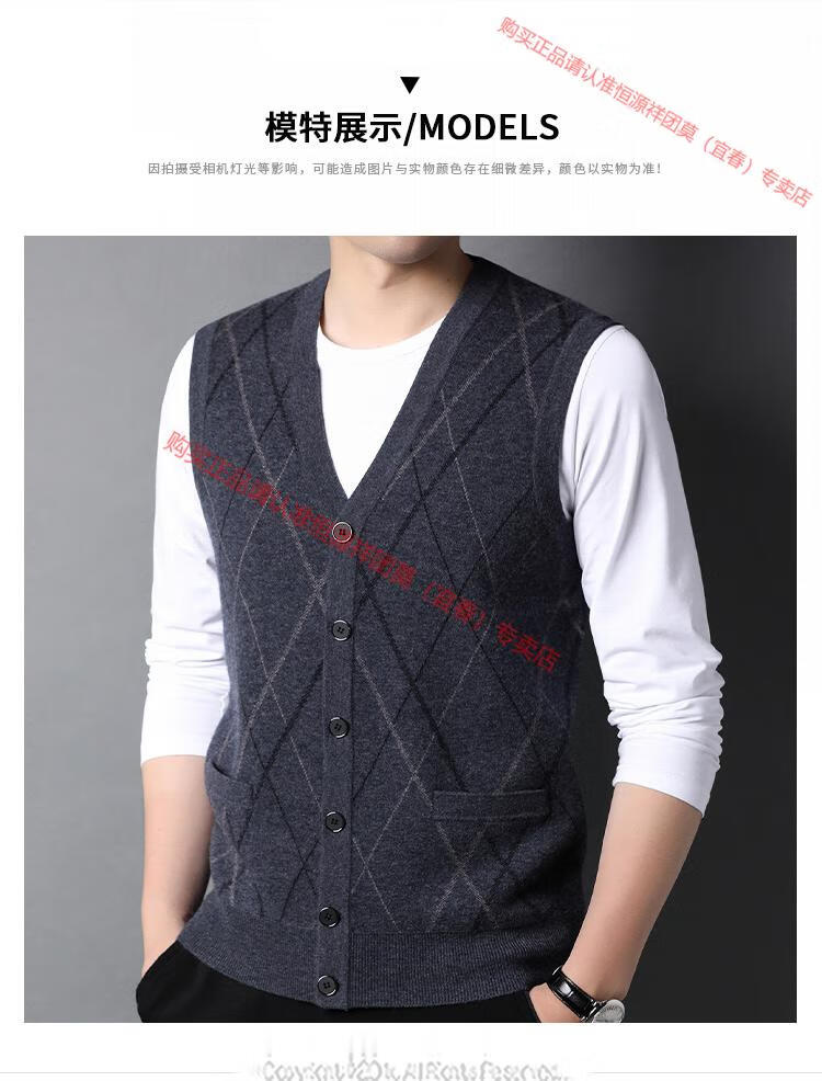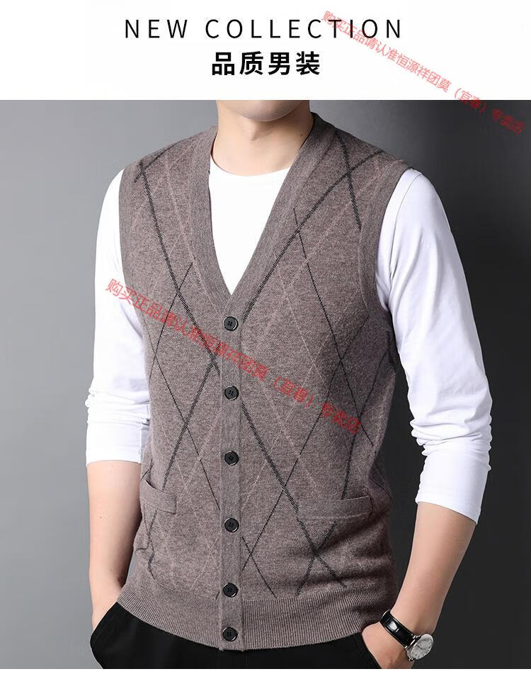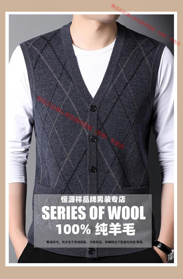 Hengyuanxiang 100% pure wool vest knitted vest men's thickened 2025 autumn and winter casual plaid waistcoat middle-aged men's sweater medium gray M 170 suitable for 100-120 Jin Jin equals 0.5 kg
