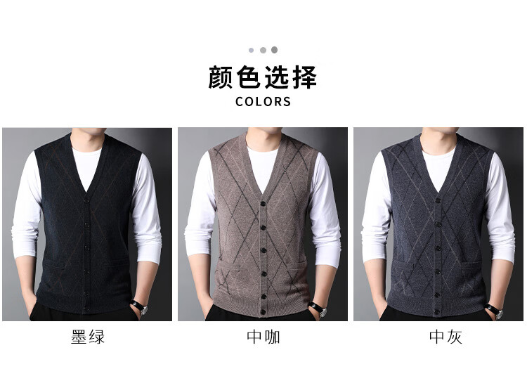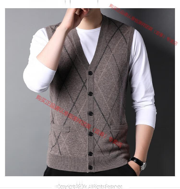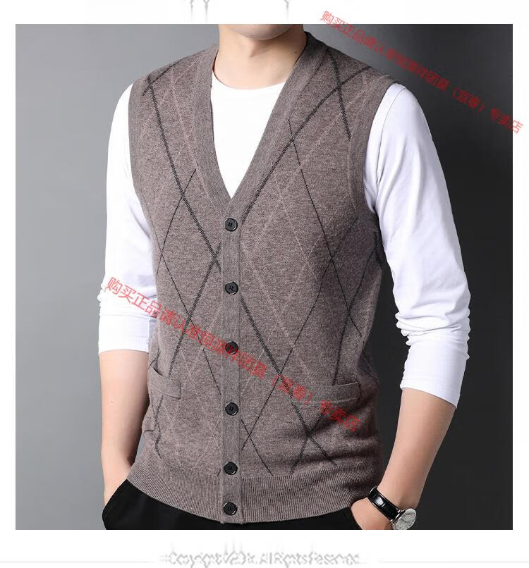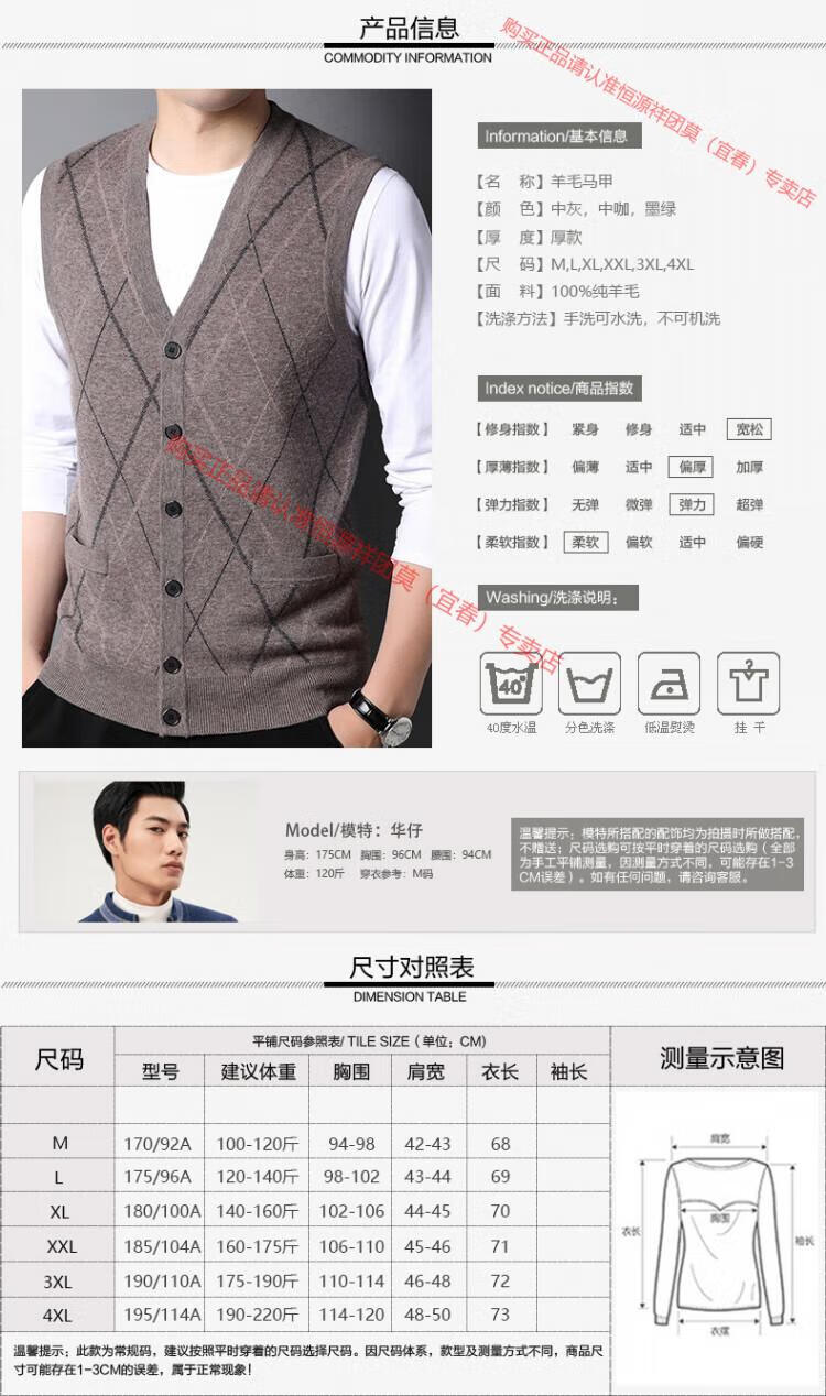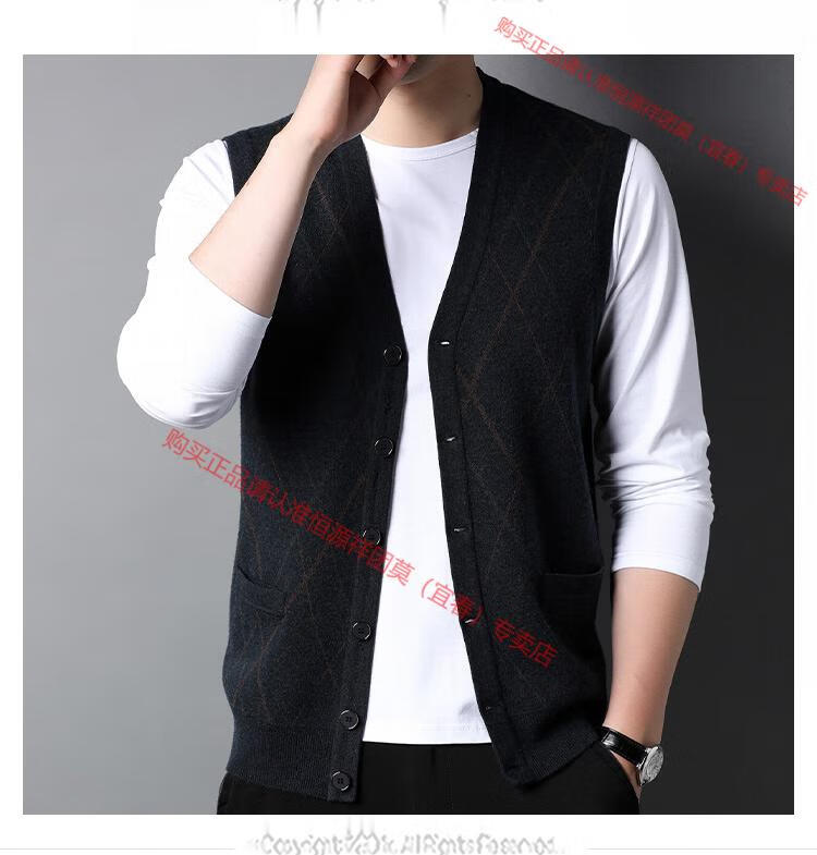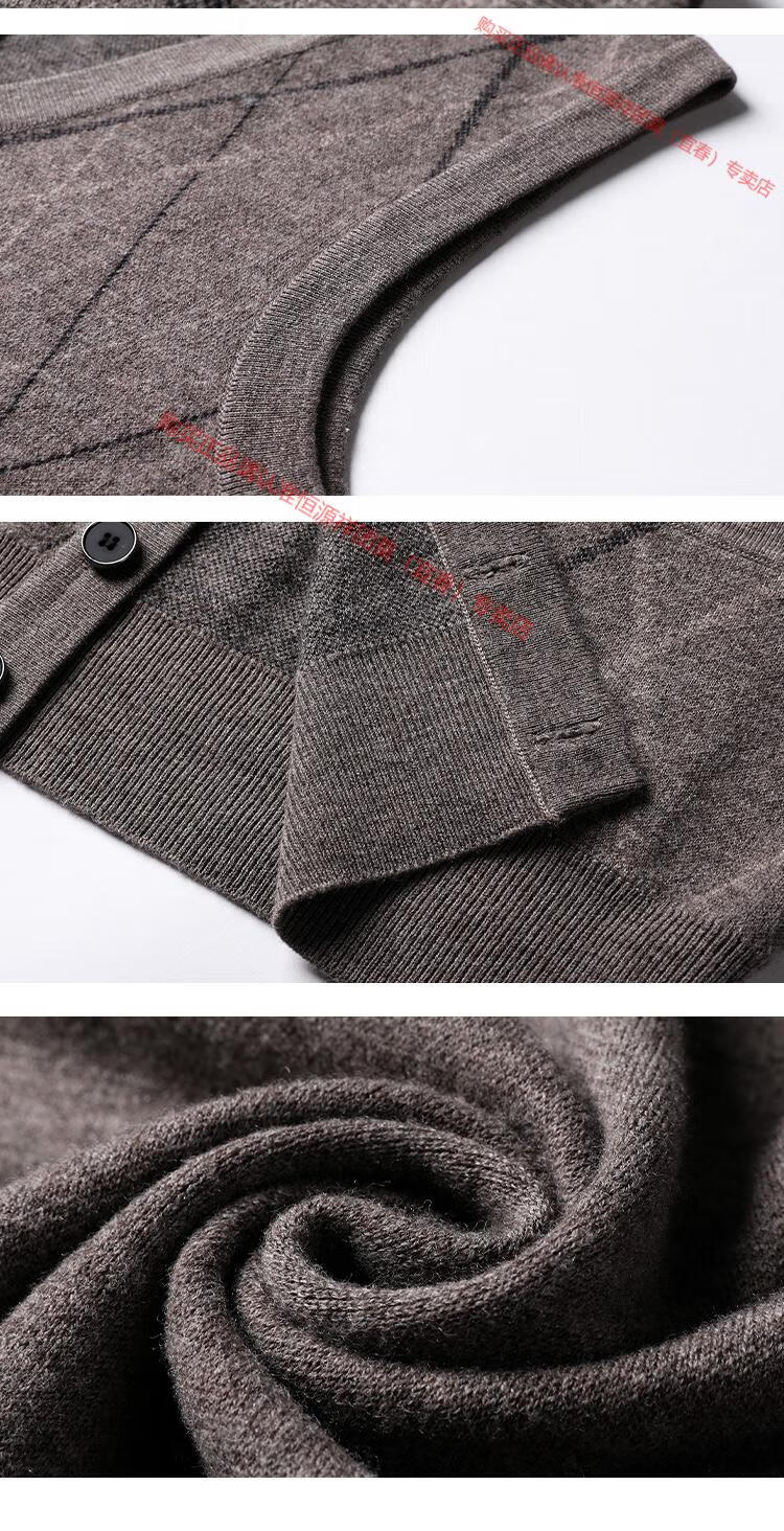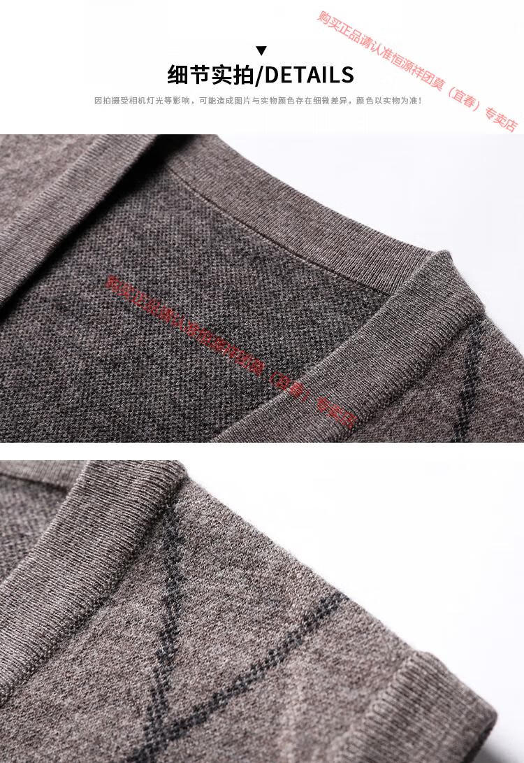 Hengyuanxiang 100% pure wool vest knitted vest men's thickened 2025 autumn and winter casual plaid waistcoat middle-aged men's sweater medium gray M 170 suitable for 100-120 Jin Jin equals 0.5 kg