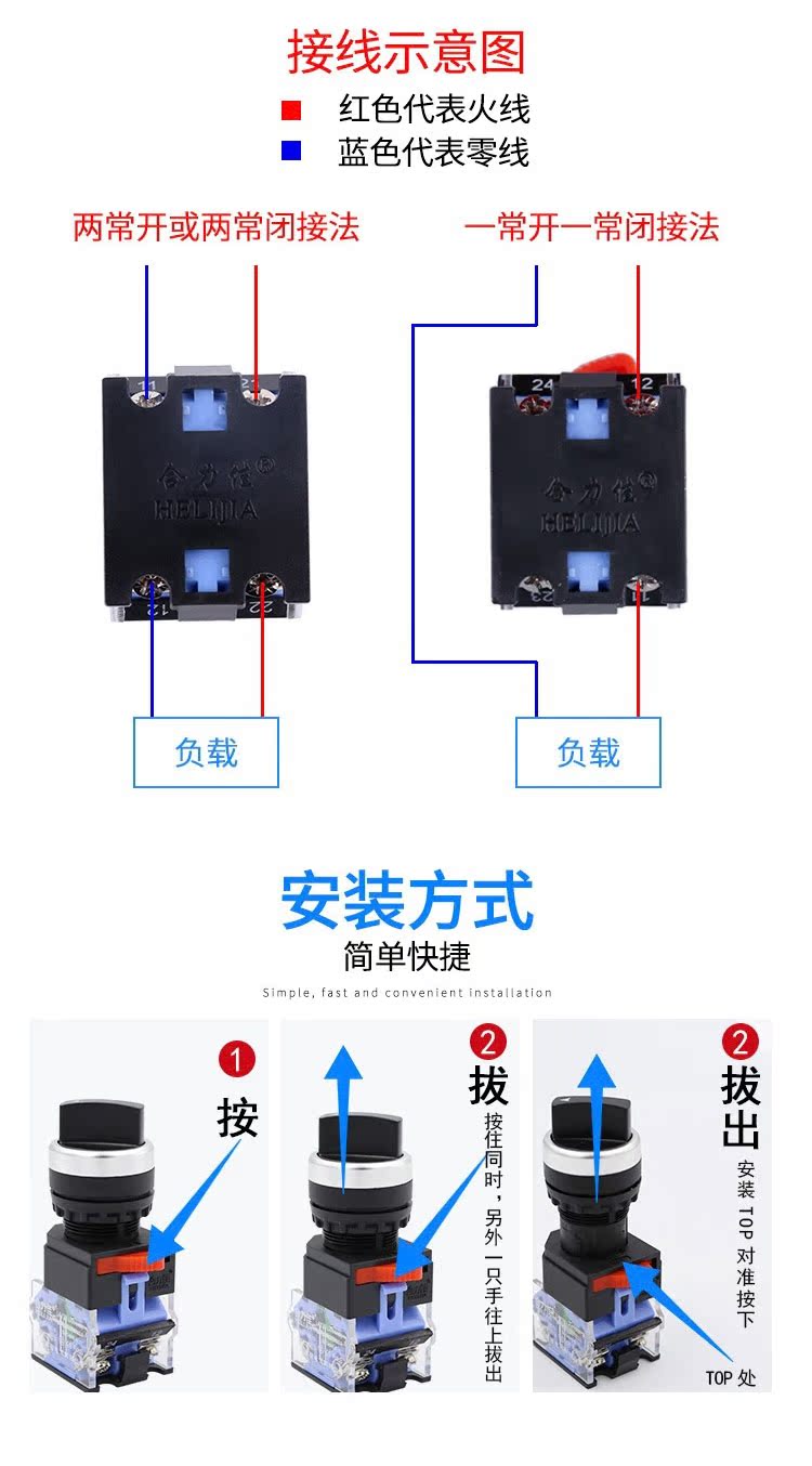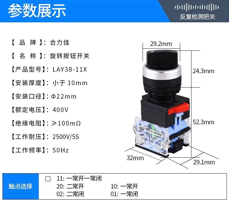 Helijia rotary button switch LA38-11X2 two-speed and three-speed selector switch transfer switch 22MM aperture upgraded 3-speed rotary switch
