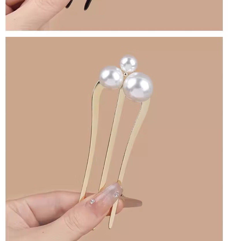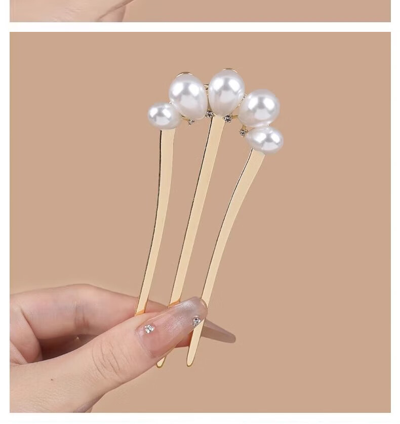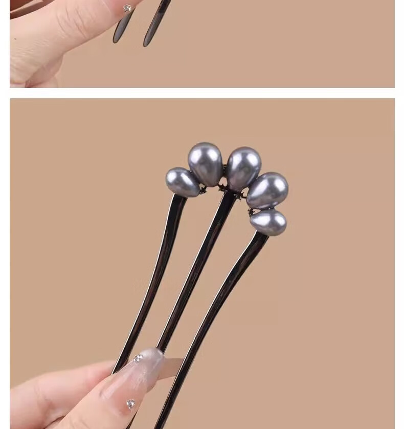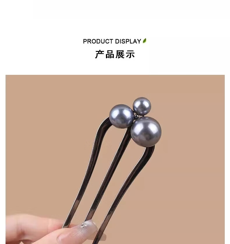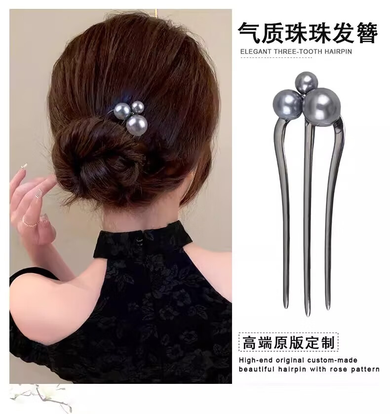 Two Worlds Happy New Chinese Style National Style Cheongsam Updo Three Teeth Imitation Pearl Hairpin Headdress 2025 New Ball Head Hairpin Hairpin for Women Gray Bead Style