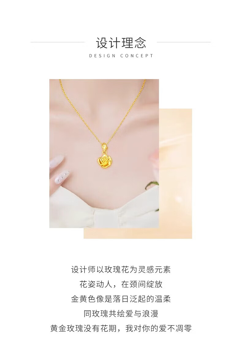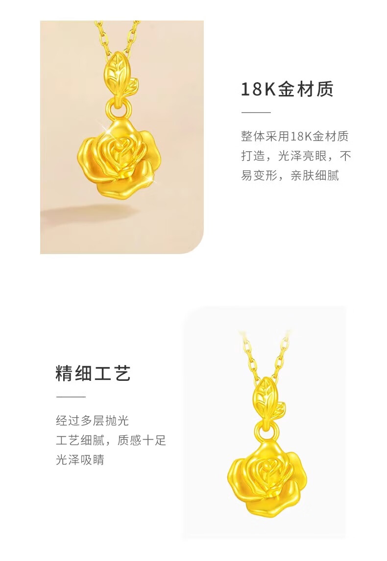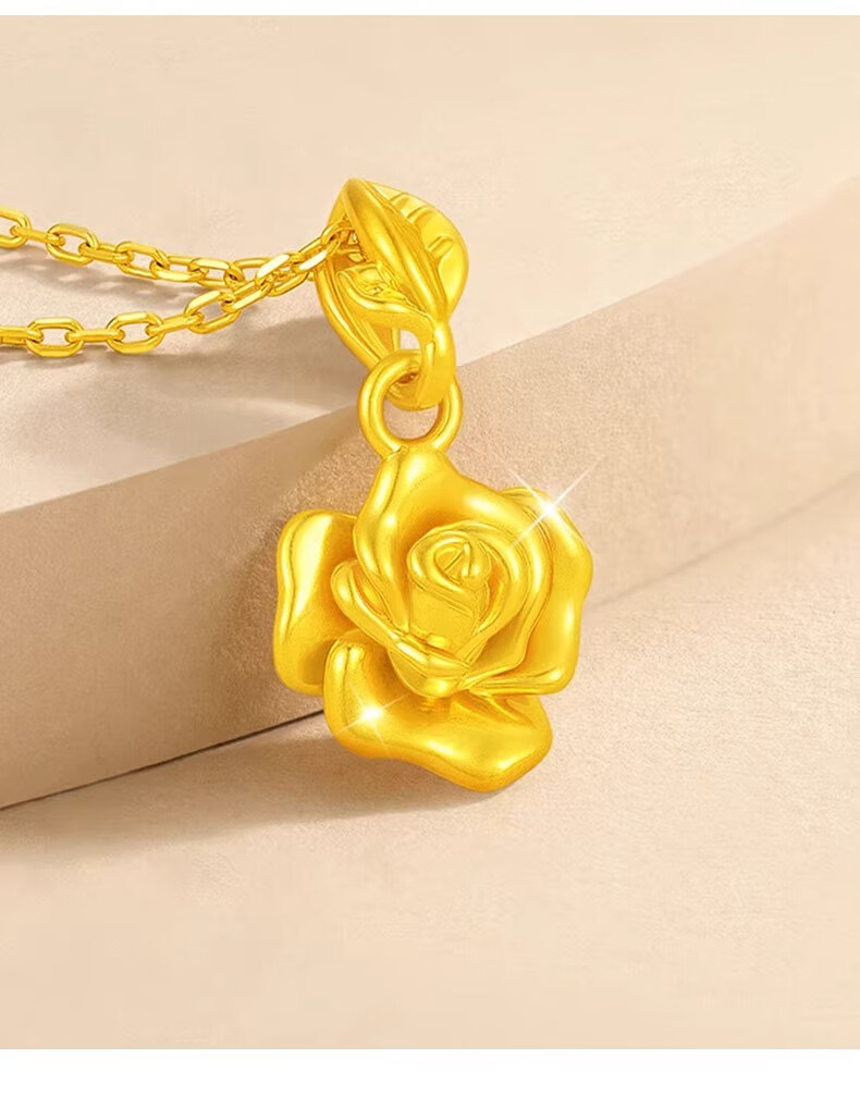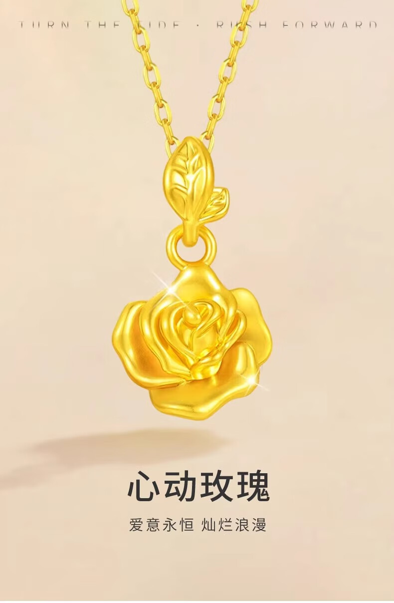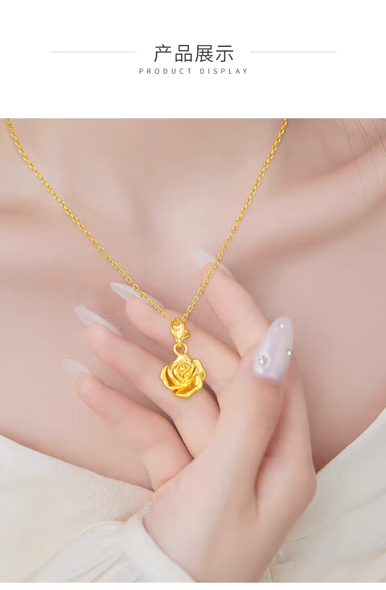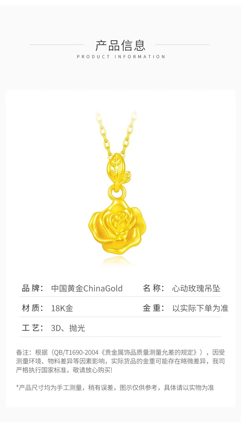 CHINA GOLD 18K gold heart-moving rose pendant for women, light luxury and high-end new flower necklace birthday gift for girlfriend 18K gold heart-moving rose pendant, free sterling silver chain, about 0.2g