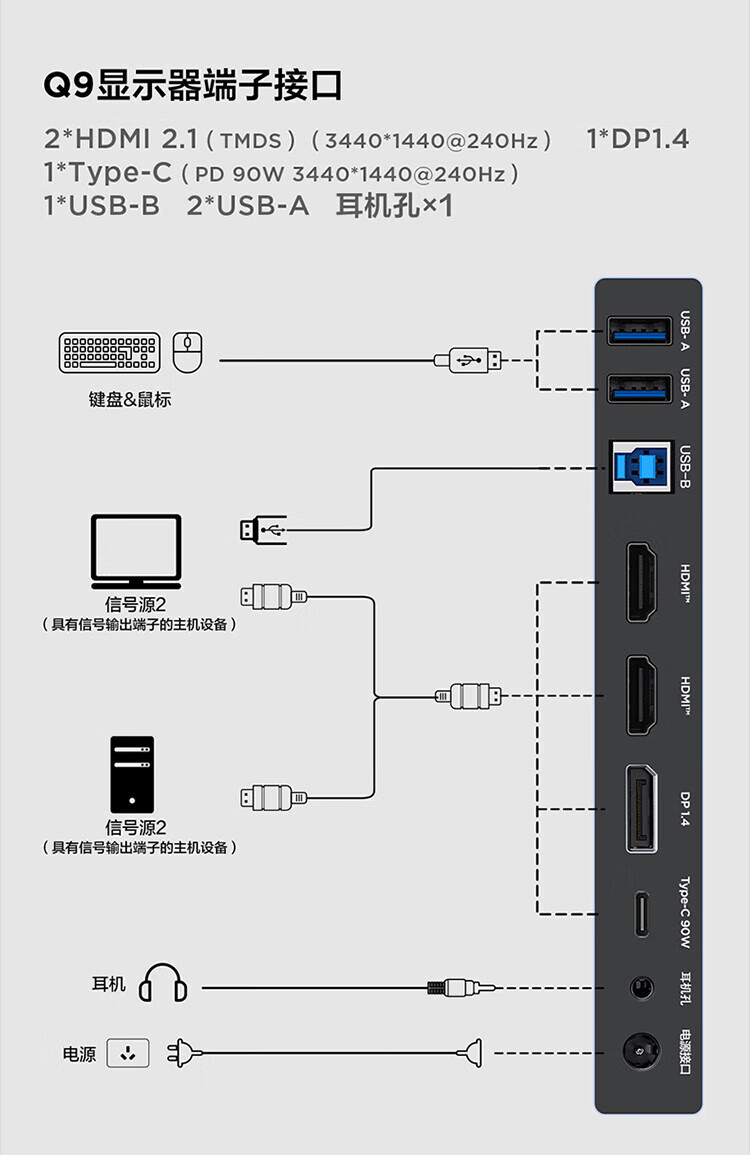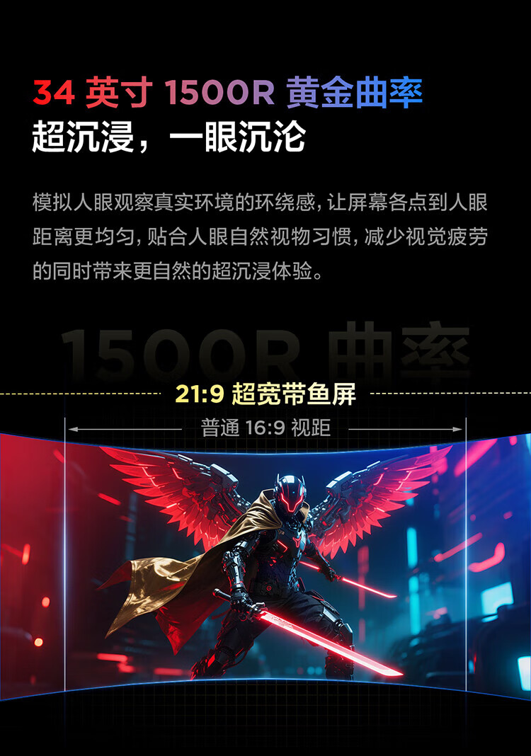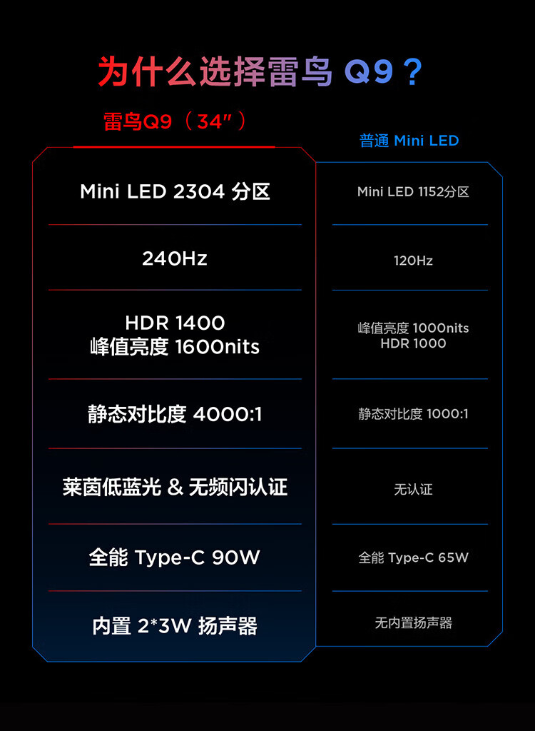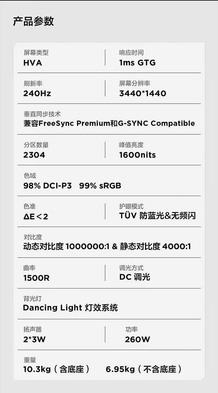 Thunderbird Q9 34-inch quasi-4K 240Hz professional e-sports fish screen curved monitor 2304 partition QD-MiniLED 1ms response gaming office eye protection display new product Q9 panda color/rotating lift/built-in audio