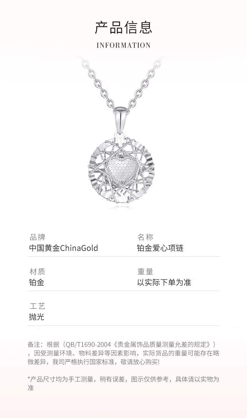 China Gold (CHINA GOLD) PT950 disc pendant for women, high-end platinum love necklace, Valentine's Day birthday gift for girlfriend and wife, platinum disc pendant, about 2.9g, free silver chain