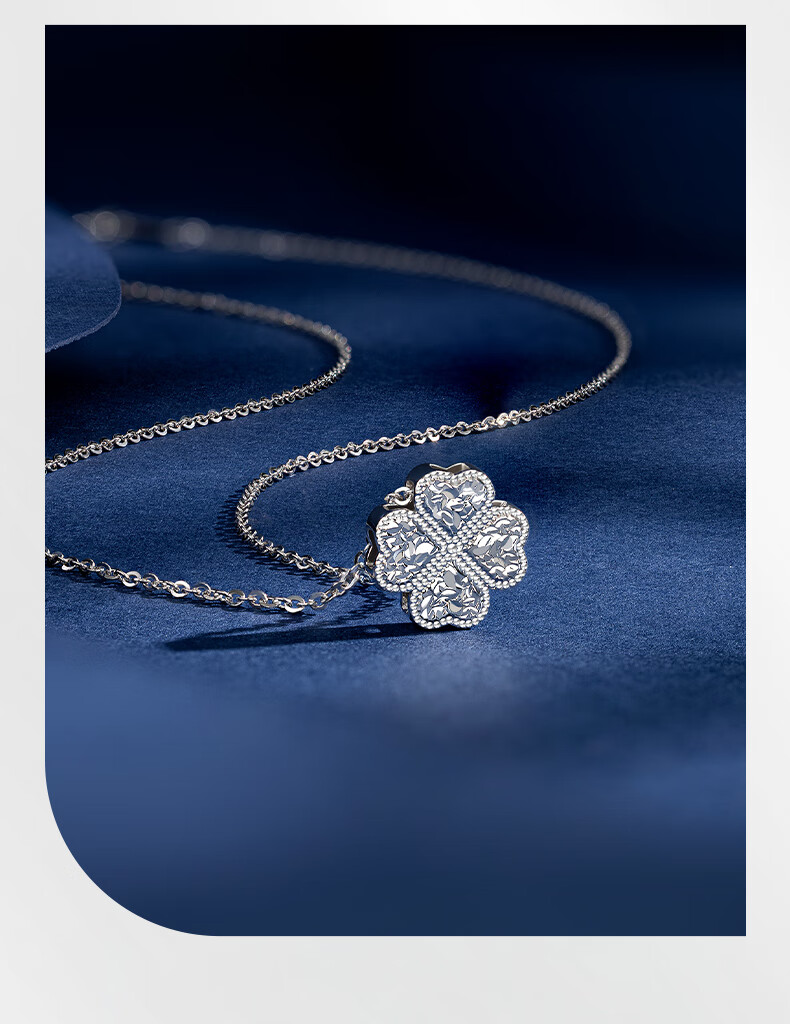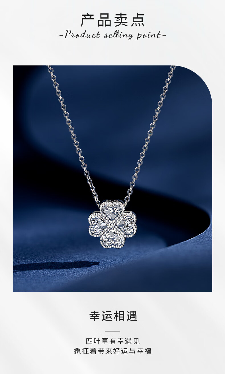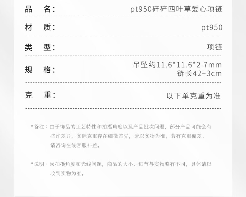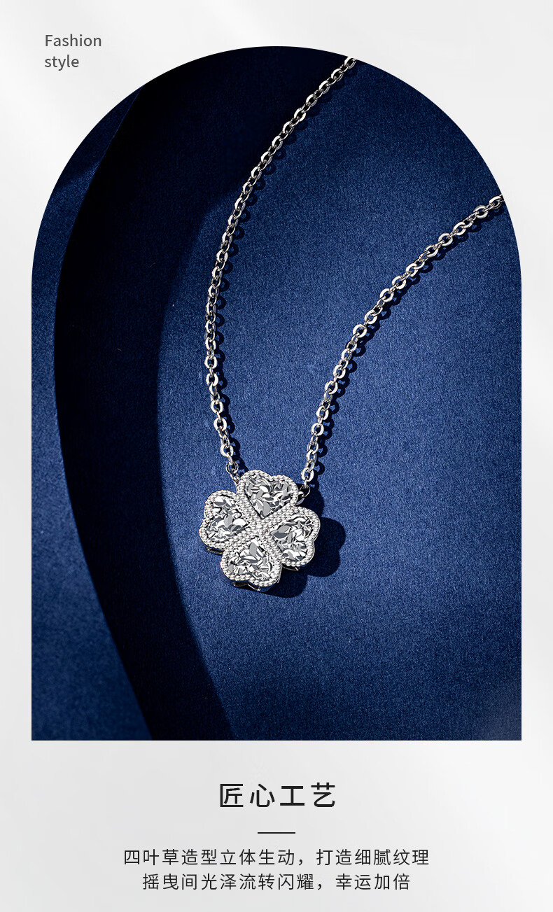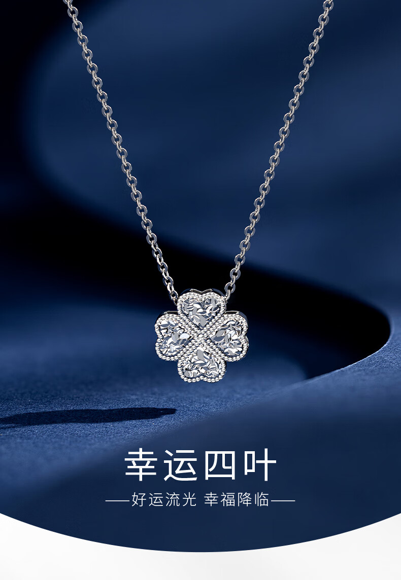 Beijing Gold Trading Center Co., Ltd. platinum necklace pt950 crushed ice four-leaf clover pendant platinum necklace birthday Mid-Autumn Festival gift for girlfriend and wife shining lucky four-leaf clover necklace about 6.2g