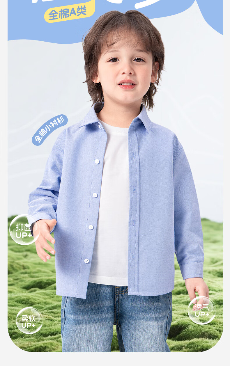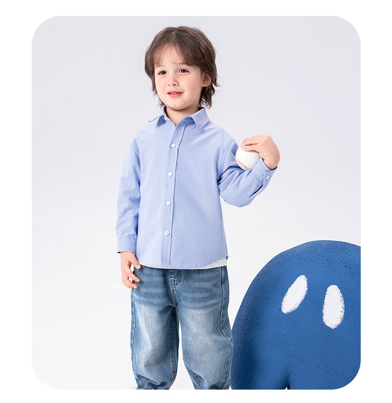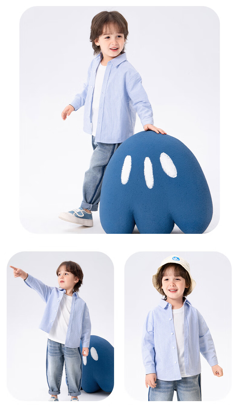 Jeanswest boys' shirts, children's jackets, thin baby autumn clothes, children's pure cotton long-sleeved boys' clothes, autumn children's clothes, blue stripe J Pocket Dog X 90