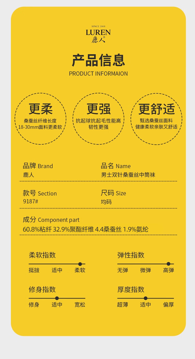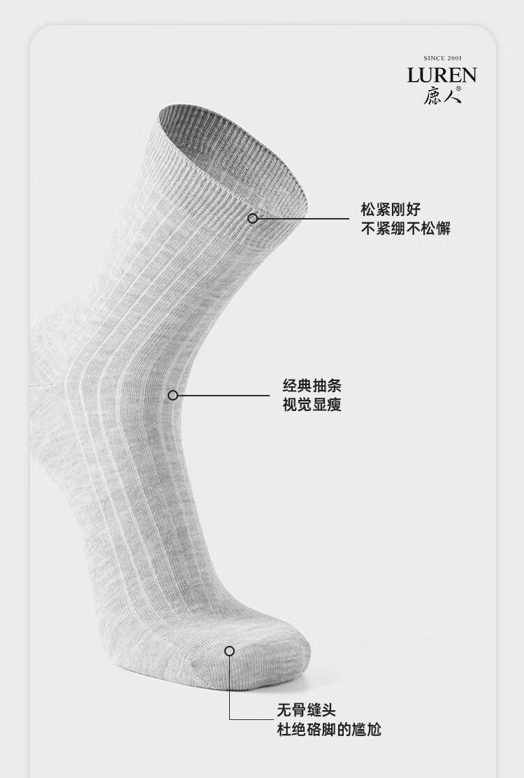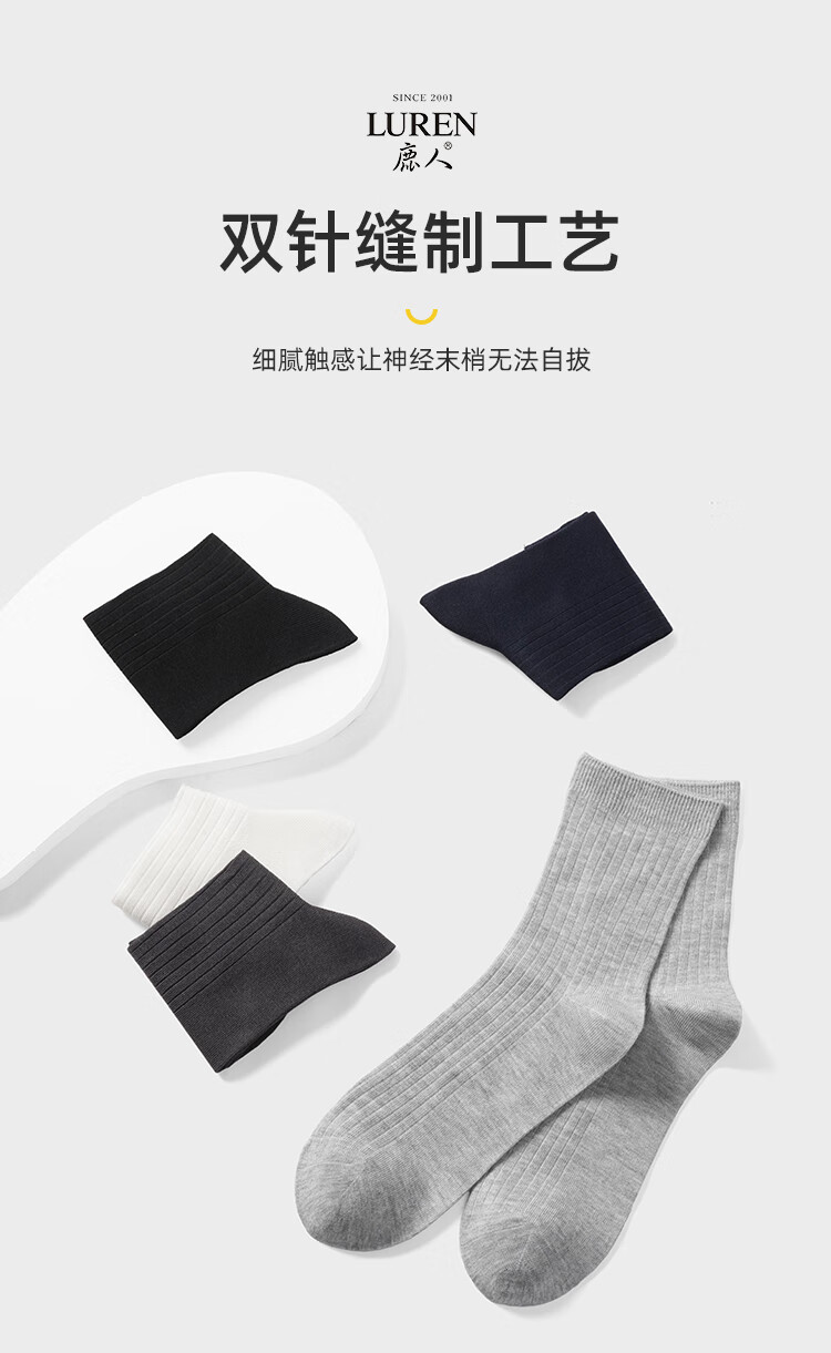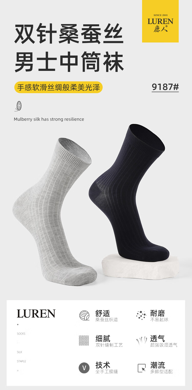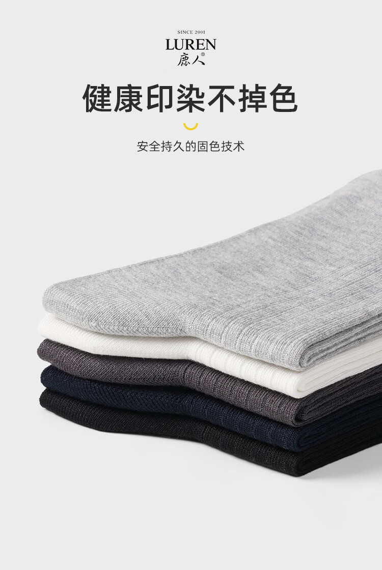 LU REN socks men's mulberry mid-calf socks sweat-absorbent and breathable spring and summer double-needle thin black socks for men 9187 9187-combination 1-pack 5 pairs one size fits all