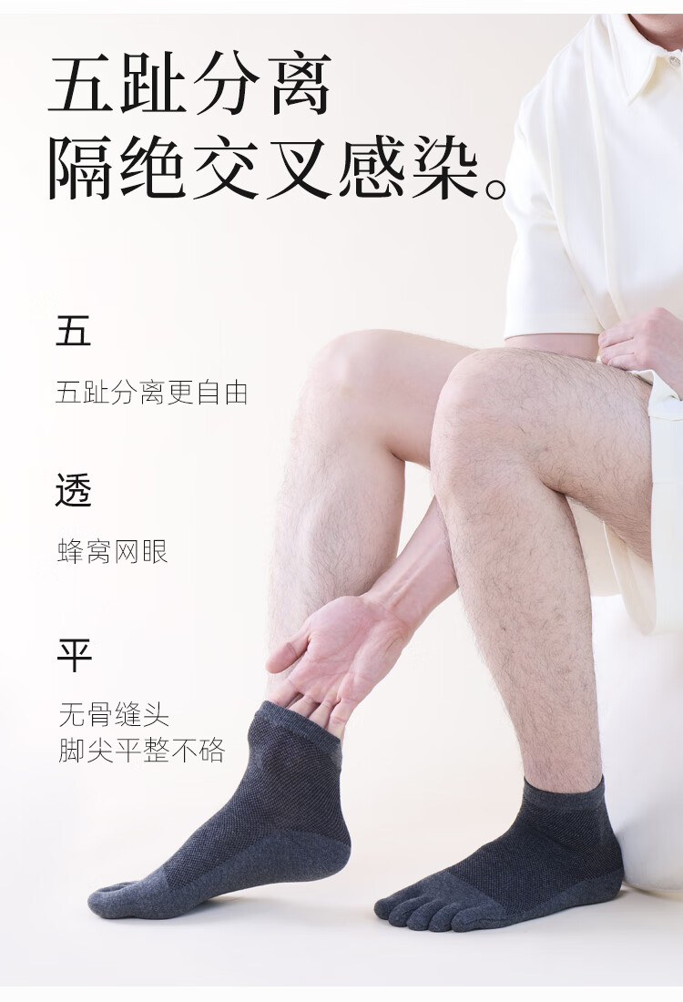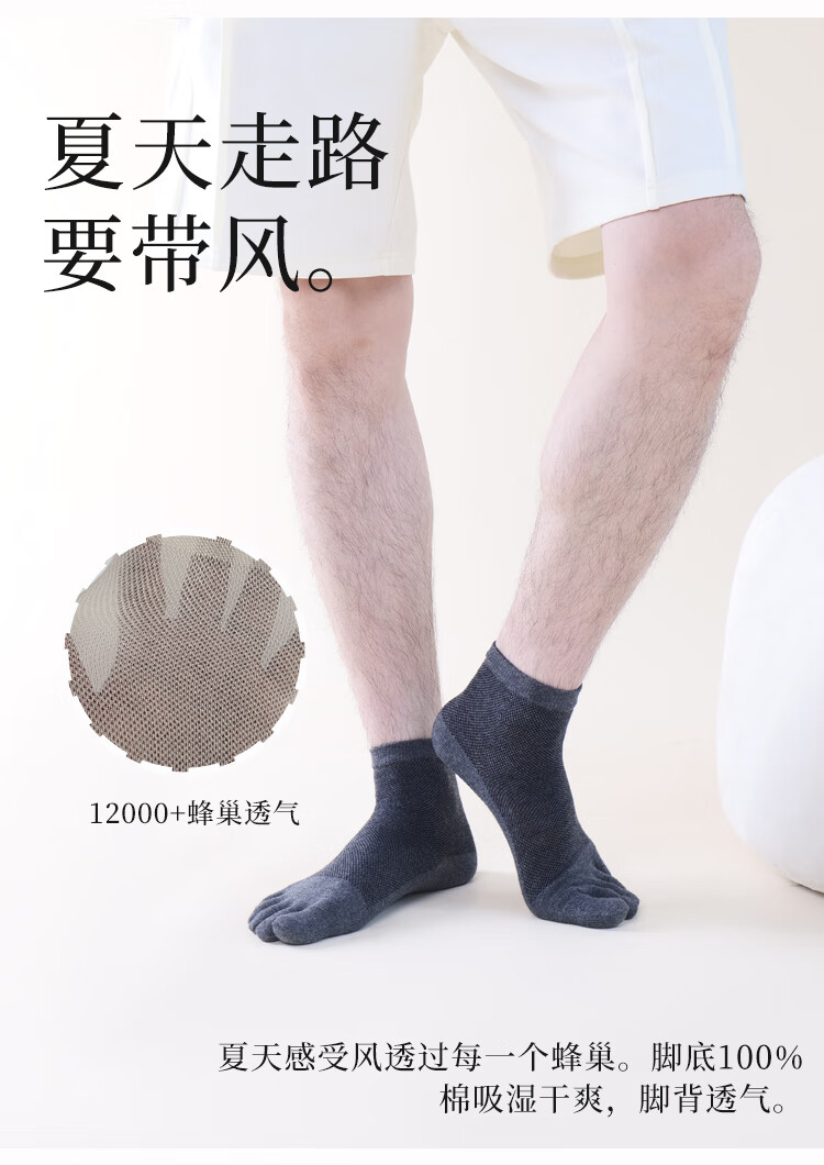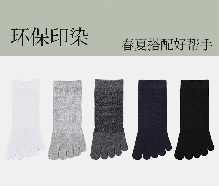 LU REN socks men's toe socks pure cotton sweat-absorbent and breathable spring and summer cotton split-toe socks men's black mid-calf socks 7102 7102-white (mesh)-pack 5 pairs one size fits all
