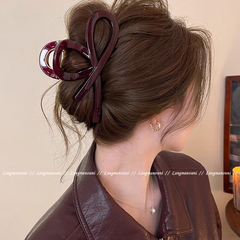 BARY REEF Korean high-quality acrylic hair clip hair large shark clip hair volume chocolate butterfly hair clip women's hair accessories chocolate brown cross style (12.5cm) regular version