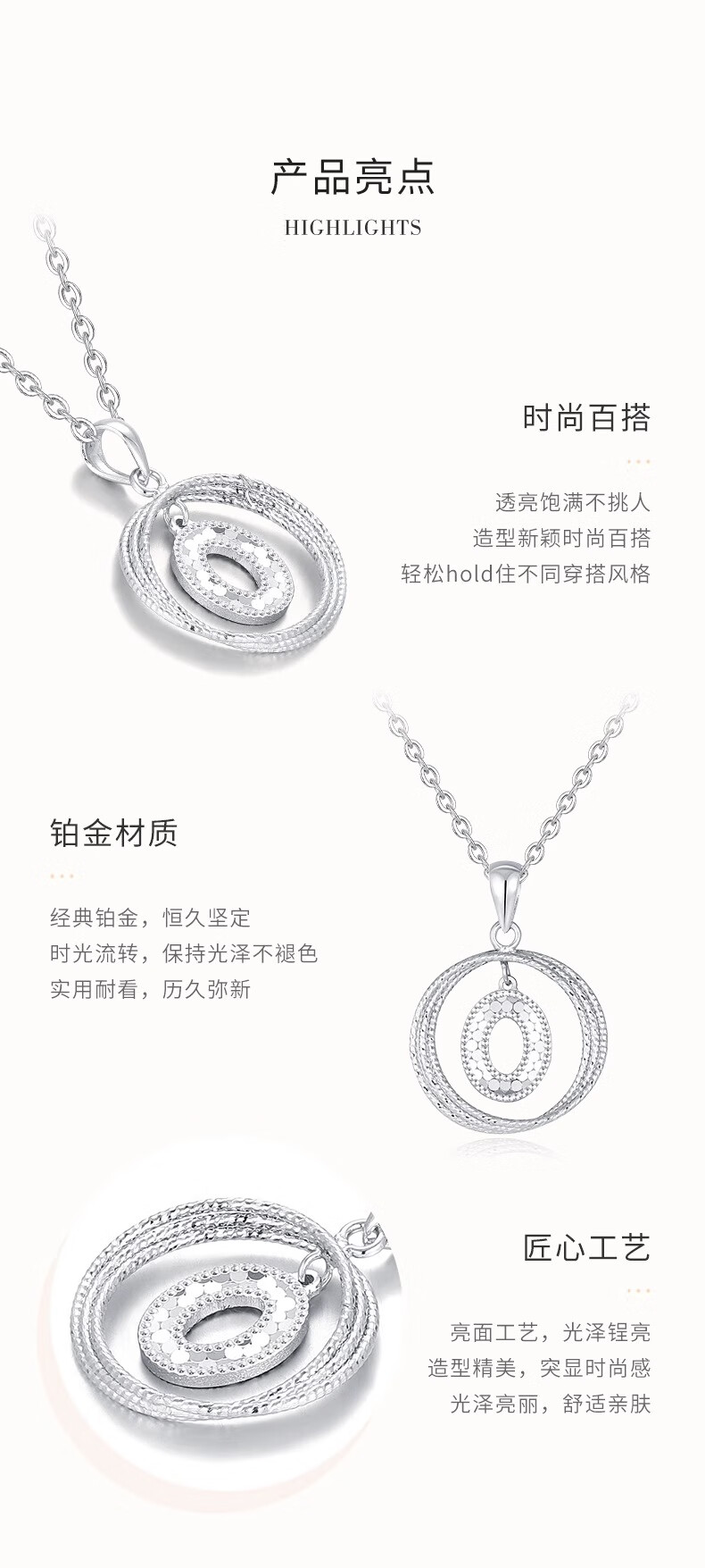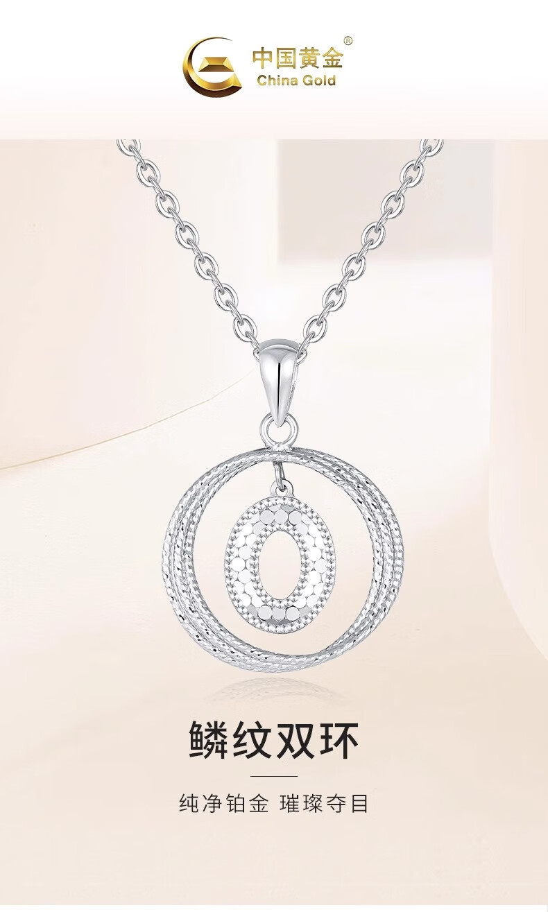 China Gold (CHINA GOLD) PT950 Platinum Double Ring Pendant Women's High-end Platinum Necklace Valentine's Day Birthday Gift for Girlfriend and Wife Platinum Double Ring Pendant About 2.6g Free Silver Chain