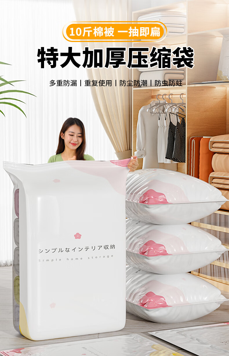 Kaooseen Vacuum Compression Bag Down Jacket Clothes Quilt Extra Large Storage Bag Home Thickened Quilt Artifact Electric Pump 5 Extra Large + 5 Large Power Delivery Pump Leak Bag Return and Exchange within One Year