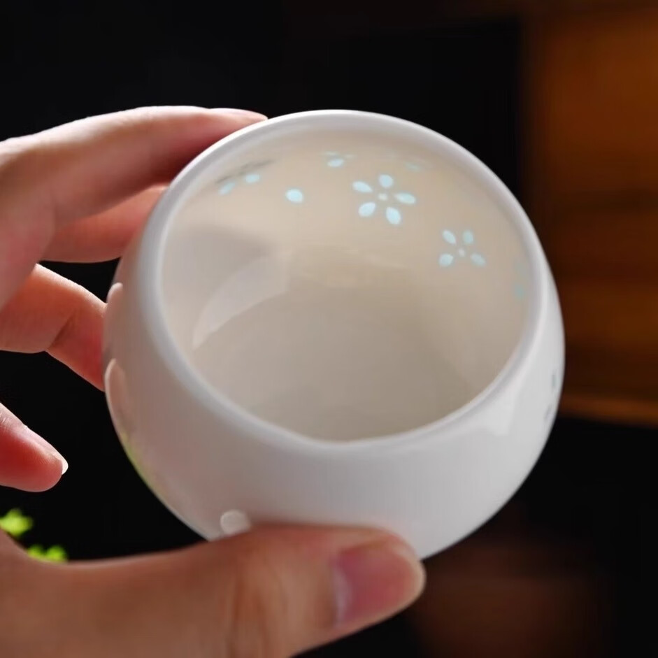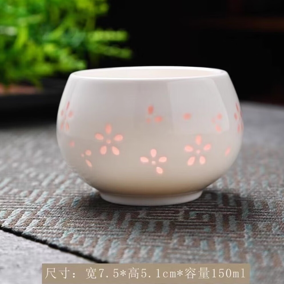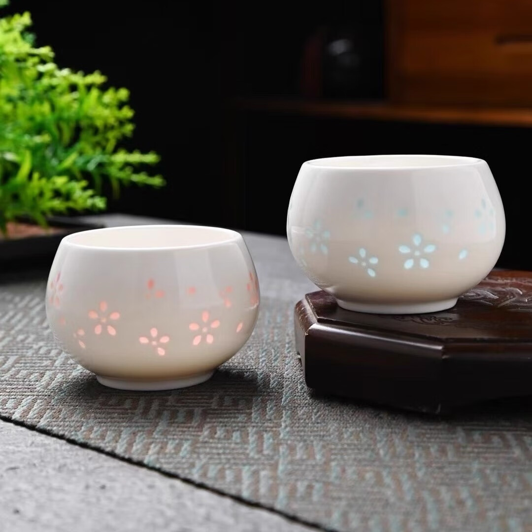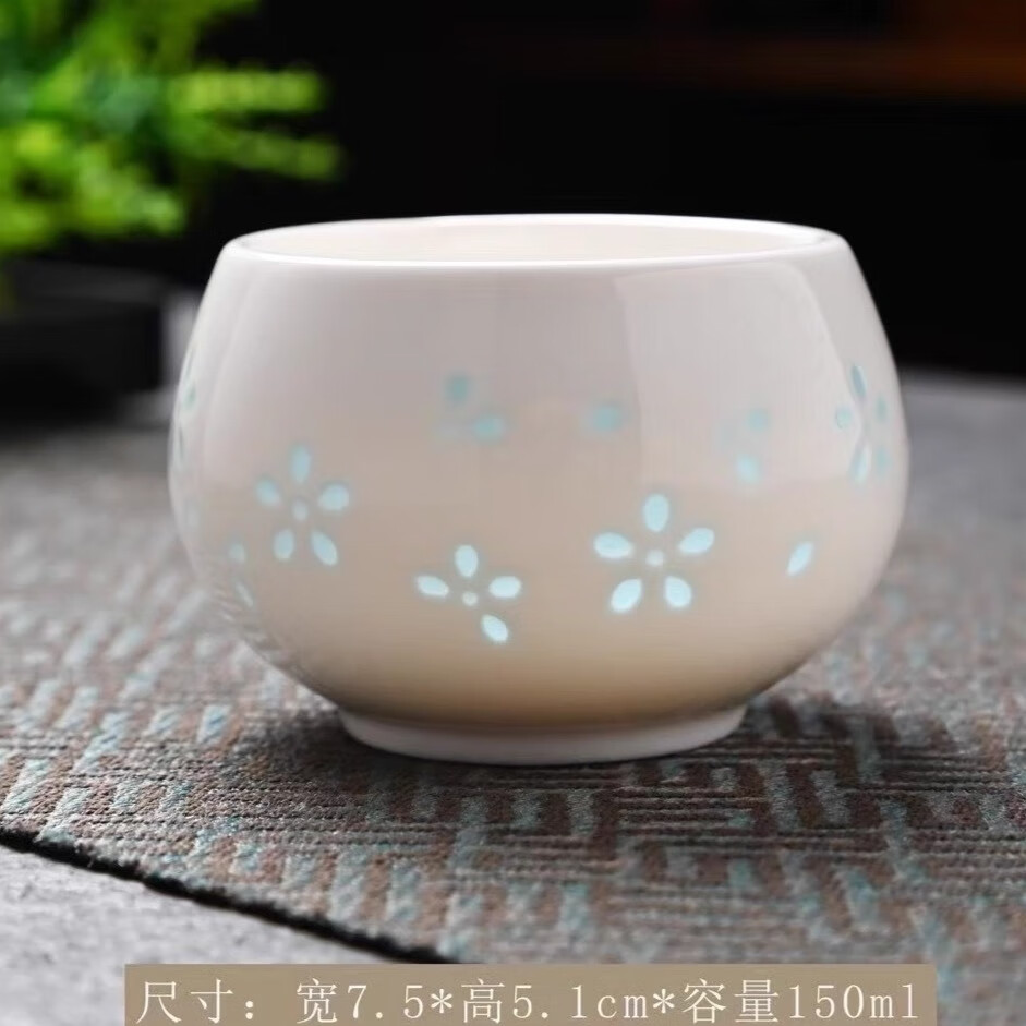 Suet-fat jade porcelain tea cup, exquisite hollow hand-painted plum blossom master cup, new tea-making small tea cup, exquisite tea cup, pair of cups, blue and pink, 1 each