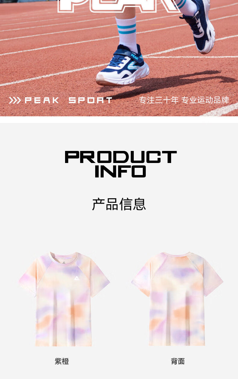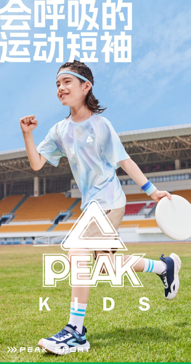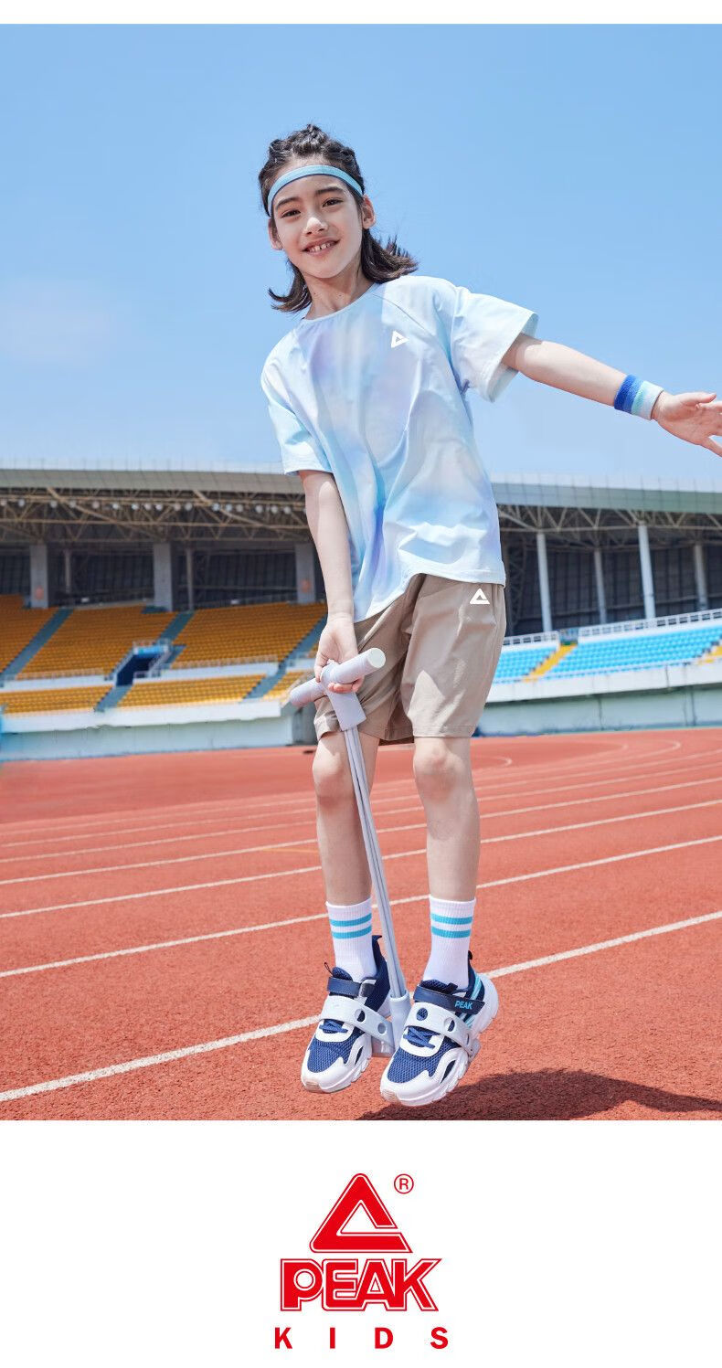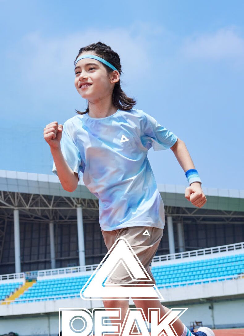 Peak children's clothing boys suit summer 2025 new children's quick-drying sportswear girls sun protection short-sleeved T-shirt summer wear blue purple/E325 120