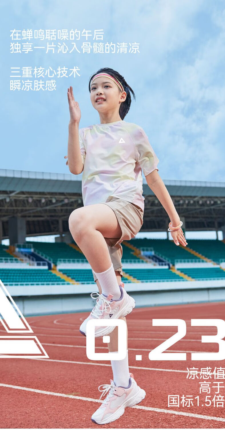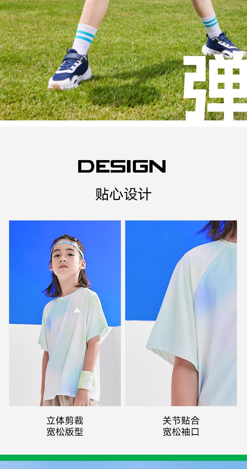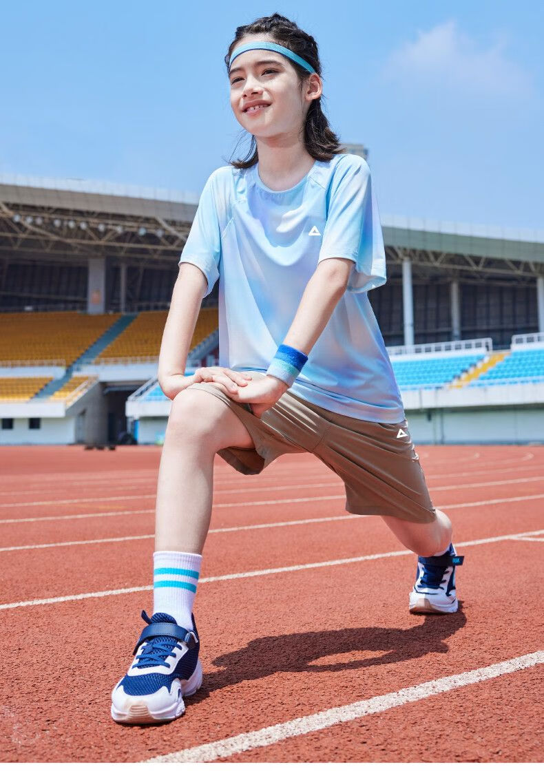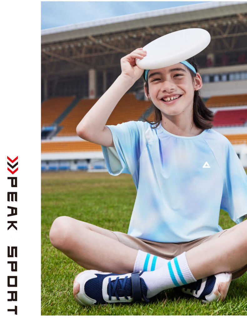 Peak children's clothing boys suit summer 2025 new children's quick-drying sportswear girls sun protection short-sleeved T-shirt summer wear blue purple/E325 120