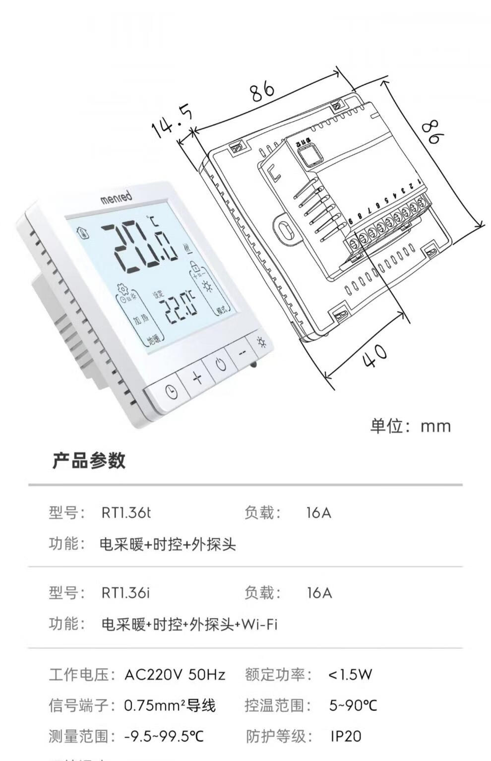 Menred.36t electric floor heating electric heating thermostat WIFI mobile phone APP steam room light gray RT1.36t 16A time control + Wifi + outside