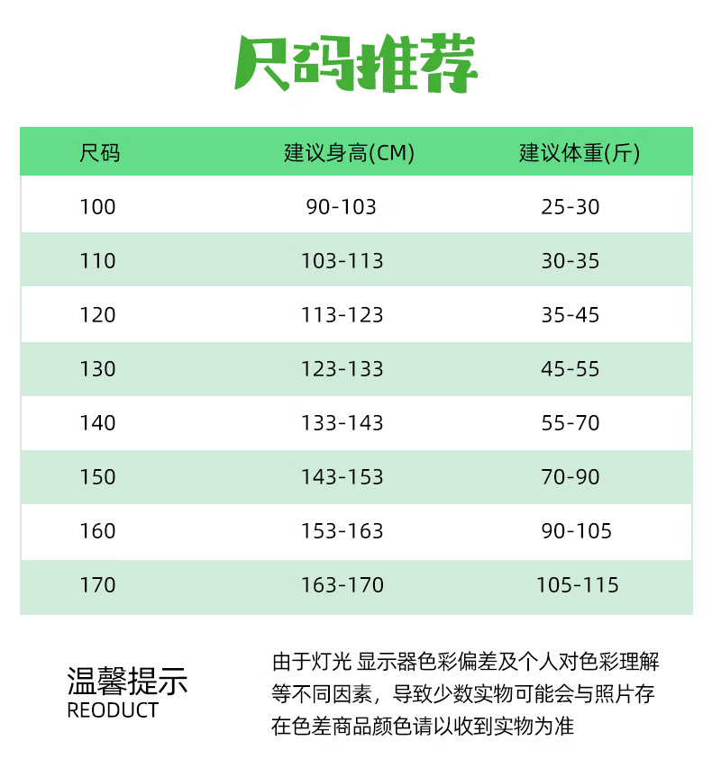 China (cm) 165 / 88-90 170 / 96-98 175 / 108-110 180 / 118-122 185 / 126-130