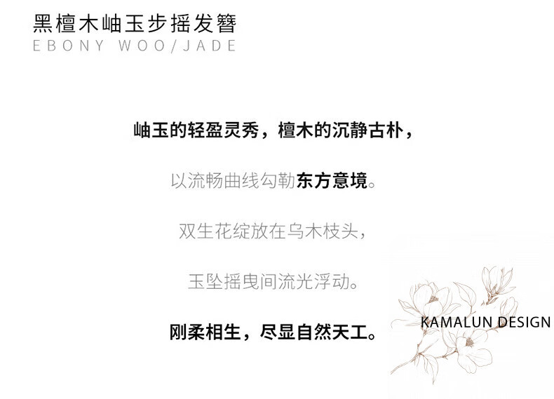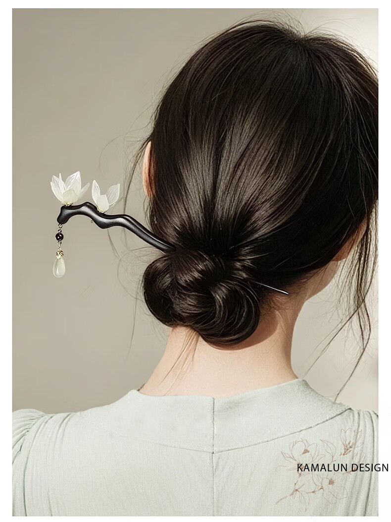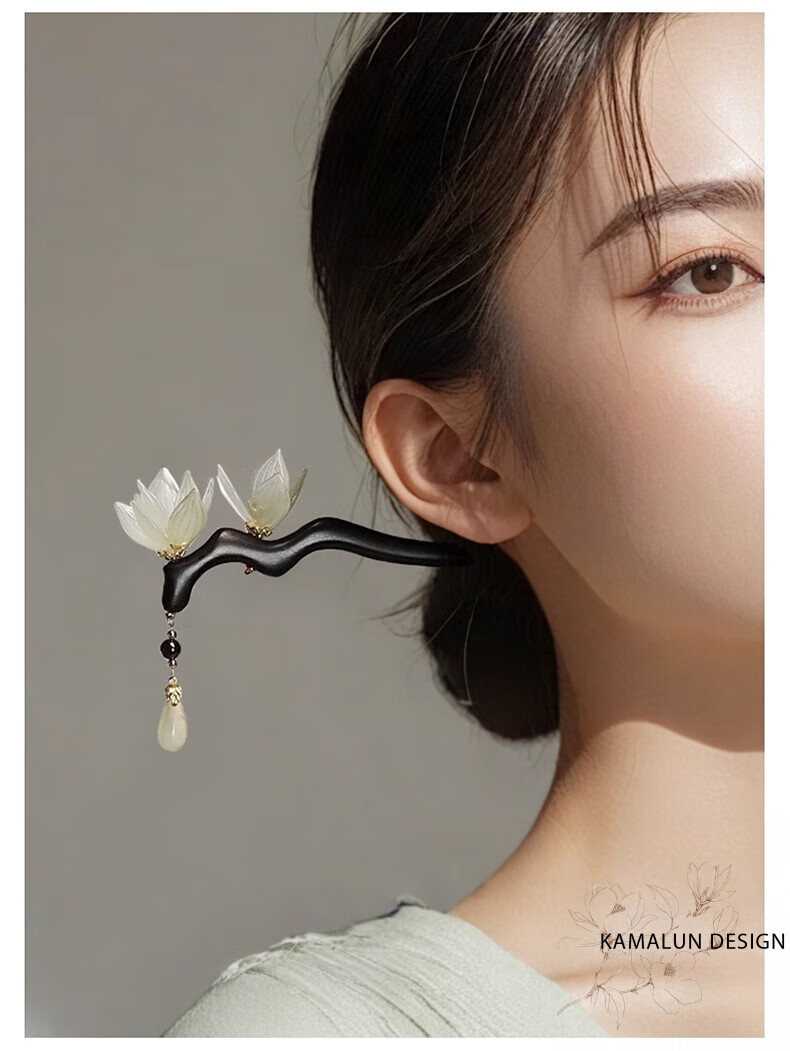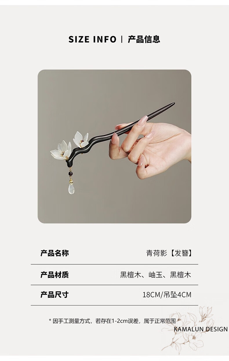 Kamalun (KAMALUN) sandalwood hairpin new Chinese style ancient style high-end lotus walking hairpin women's cool temperament hairpin hairpin headdress green lotus shadow hairpin + brand gift box