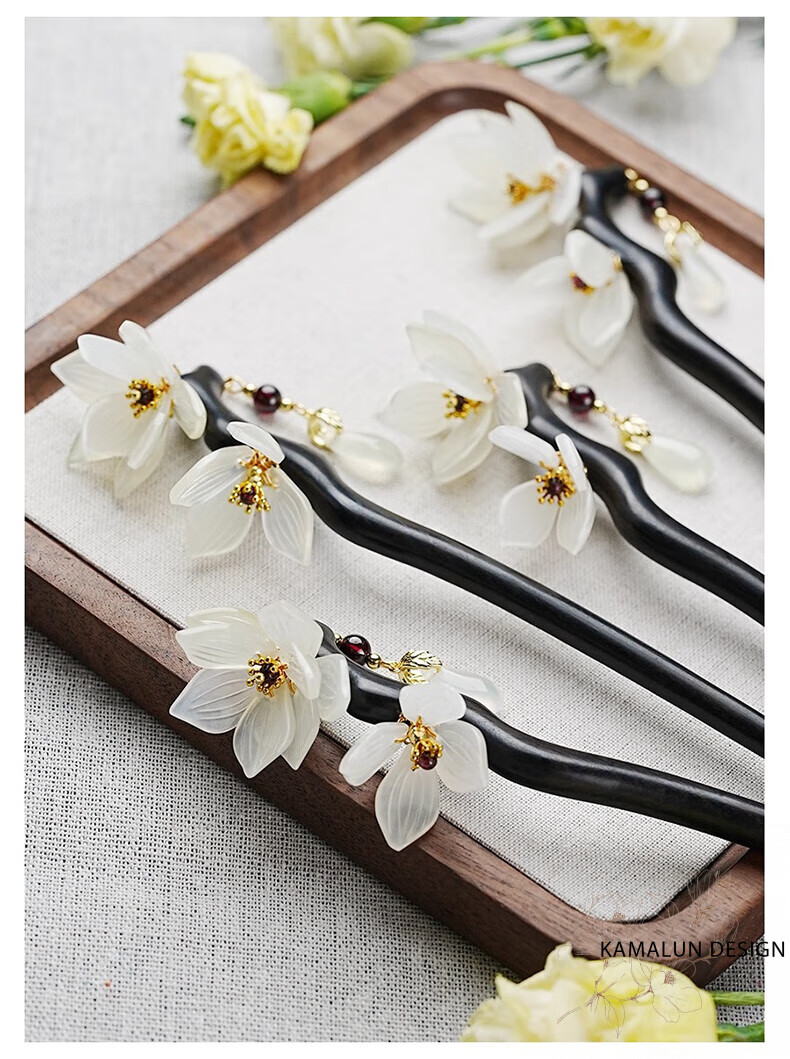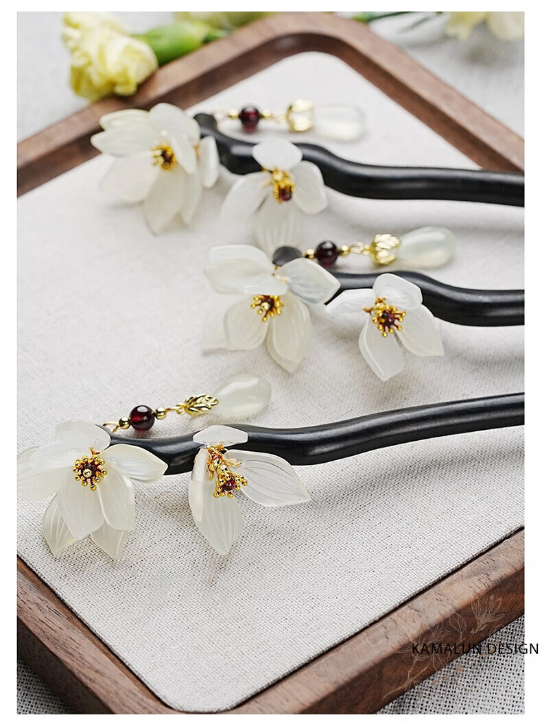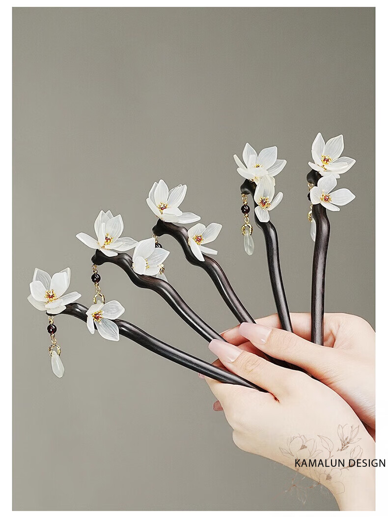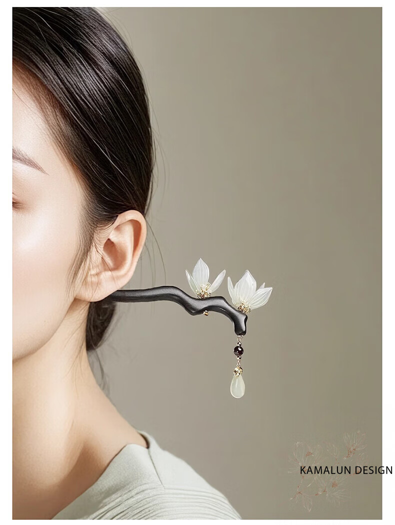 Kamalun (KAMALUN) sandalwood hairpin new Chinese style ancient style high-end lotus walking hairpin women's cool temperament hairpin hairpin headdress green lotus shadow hairpin + brand gift box