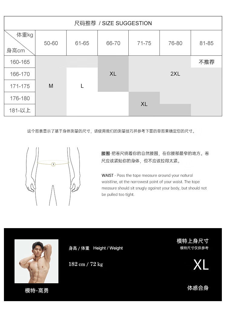 China (cm) 165 / 88-90 170 / 96-98 175 / 108-110 180 / 118-122 185 / 126-130