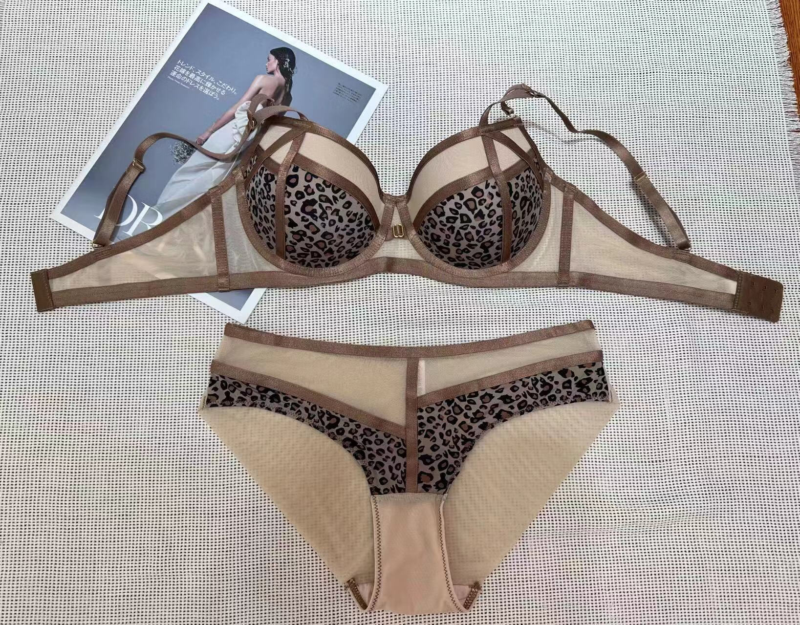 Victoria Palace Sexy Underwear Women's Leopard Print Contrast Color Small Breasts Revealing Large Push-up Bra Set Anti-Sagging Top Support Side Bra Orange 85B/38B With XL Size Underwear