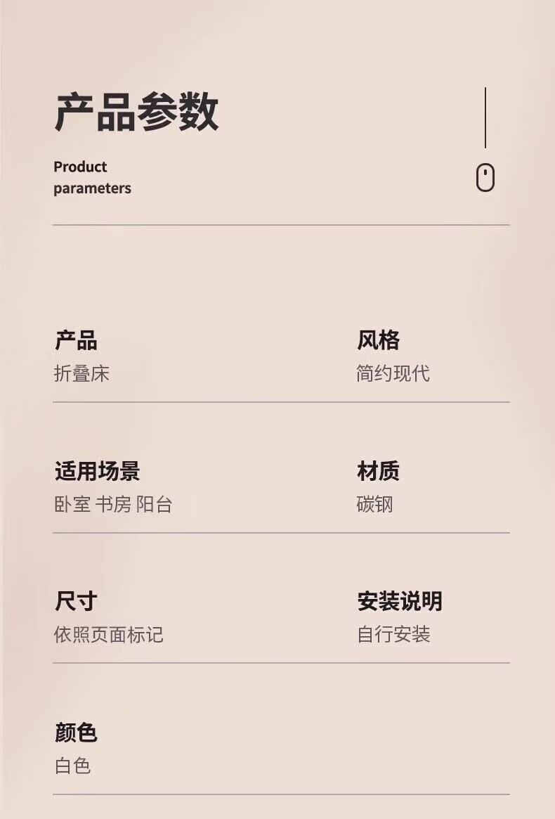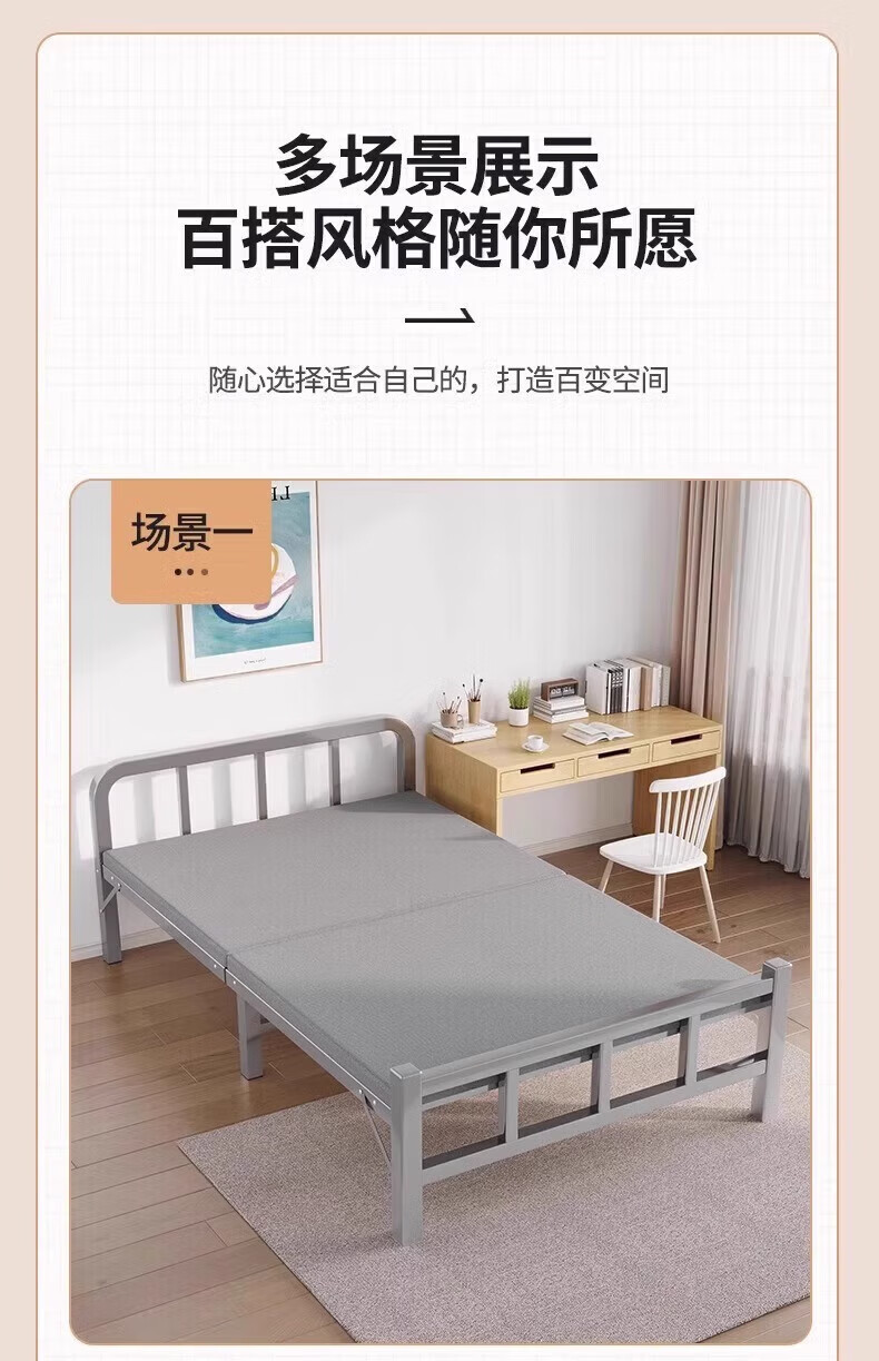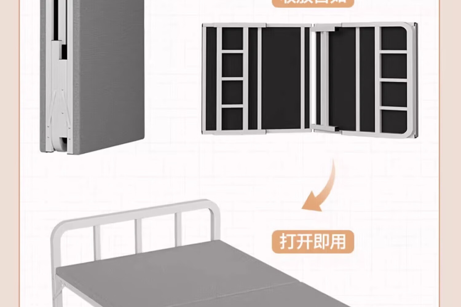 Yianda Folding Bed Home Single Bed Office Simple Lunch Break Nap Bed Hospital Accompanying Bed Dormitory Hard Board Iron Frame Bed Cream White 70CM Stable and Not Shaking