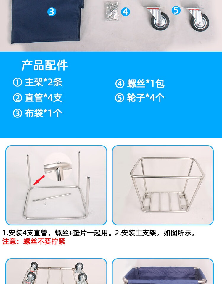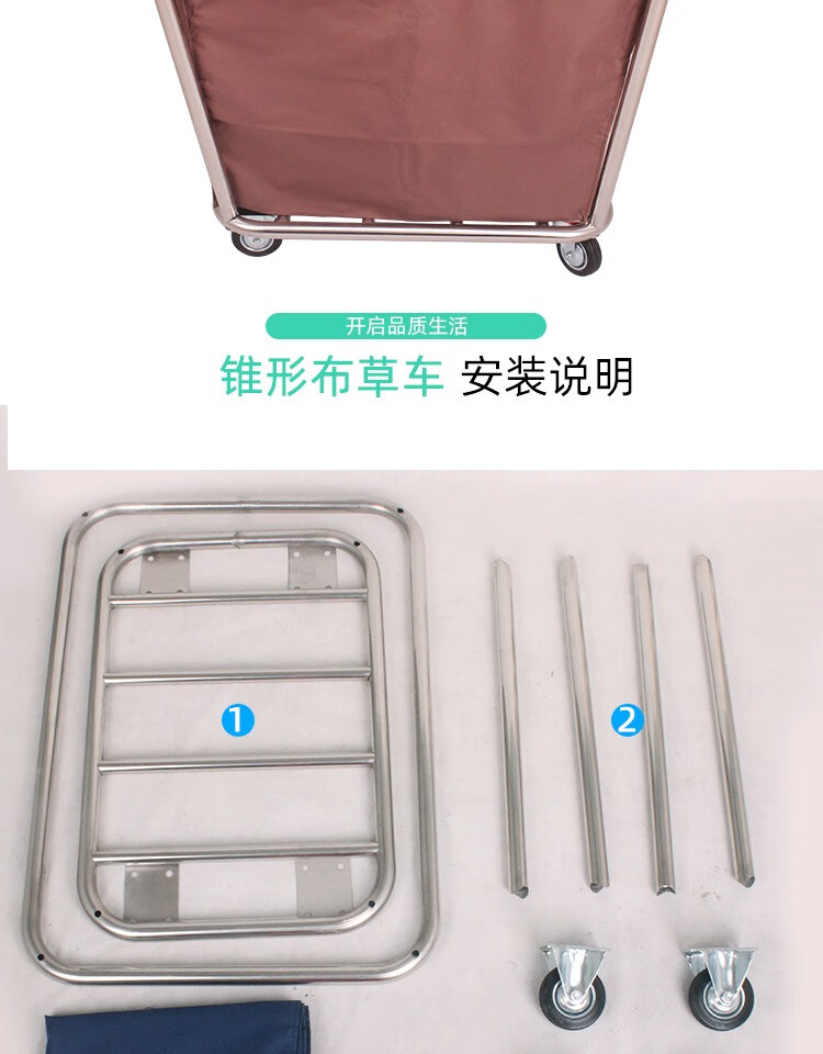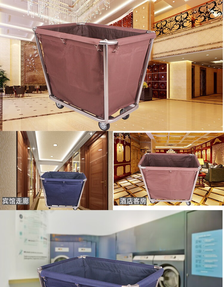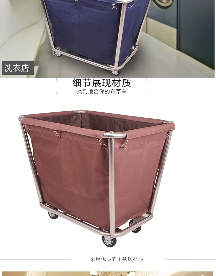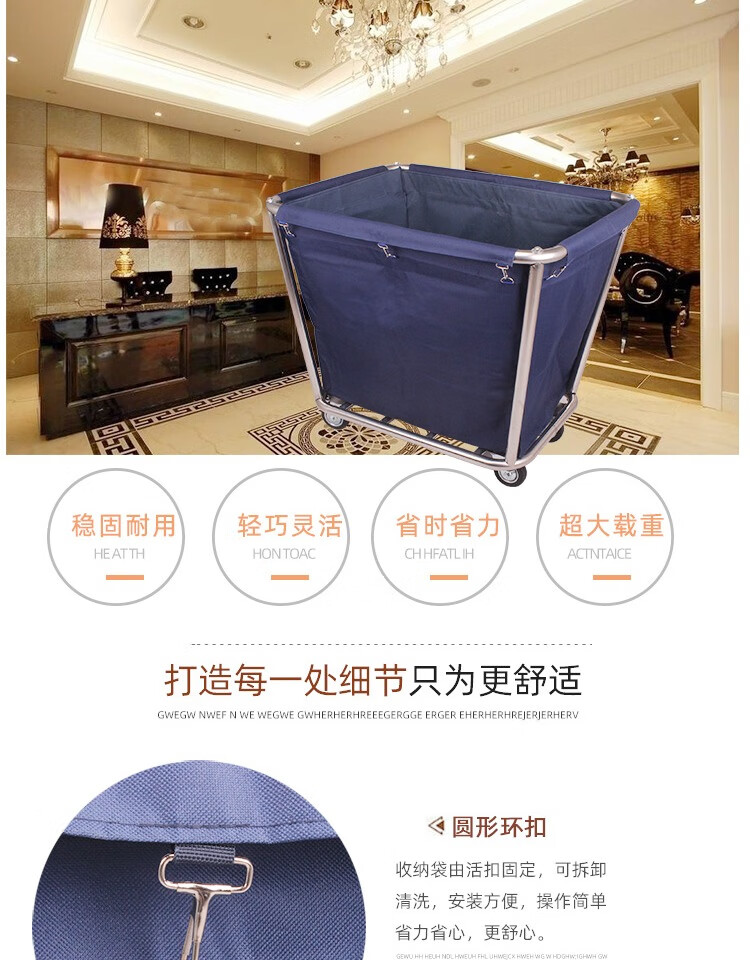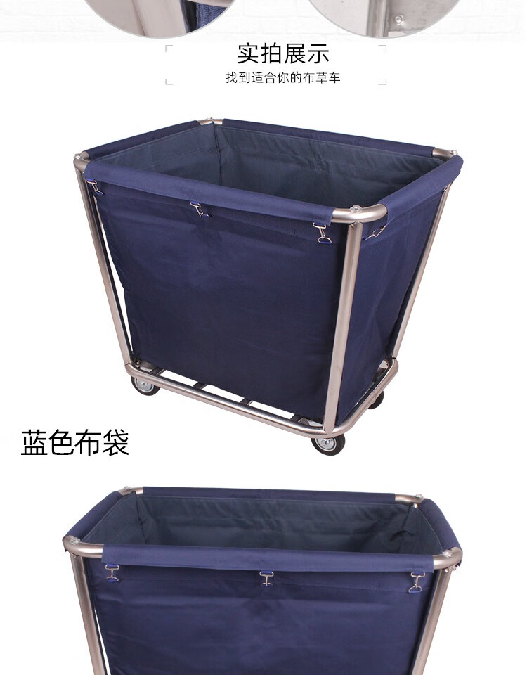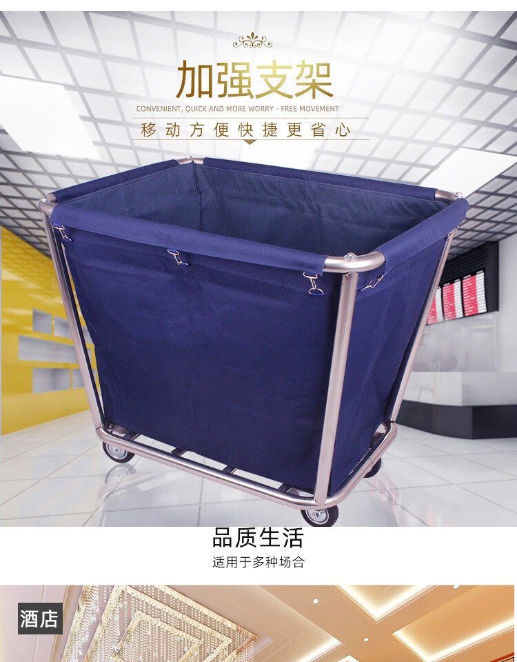 Yue Changsheng linen cart hotel work cart hotel service cart dry cleaning shop storage cart stainless steel hand push dirty linen recycling cart extra thick reinforced blue 8-tube linen cart with small pocket