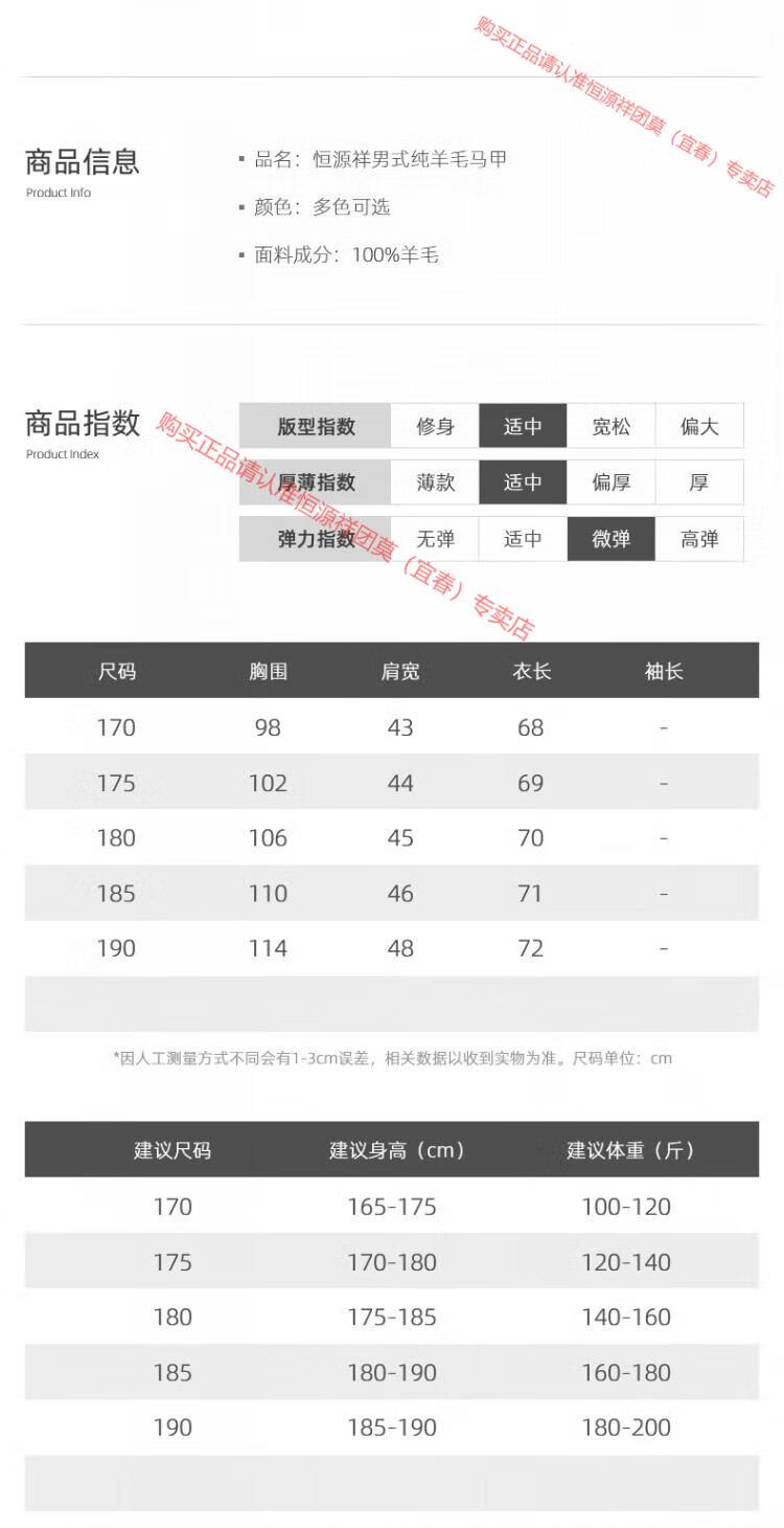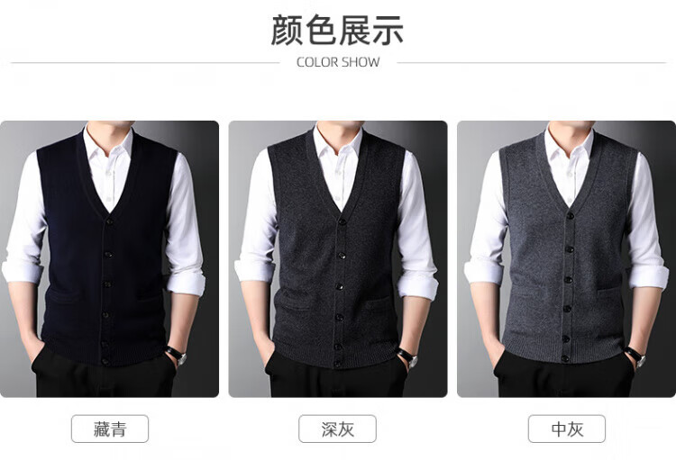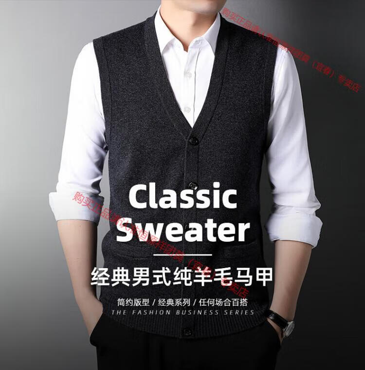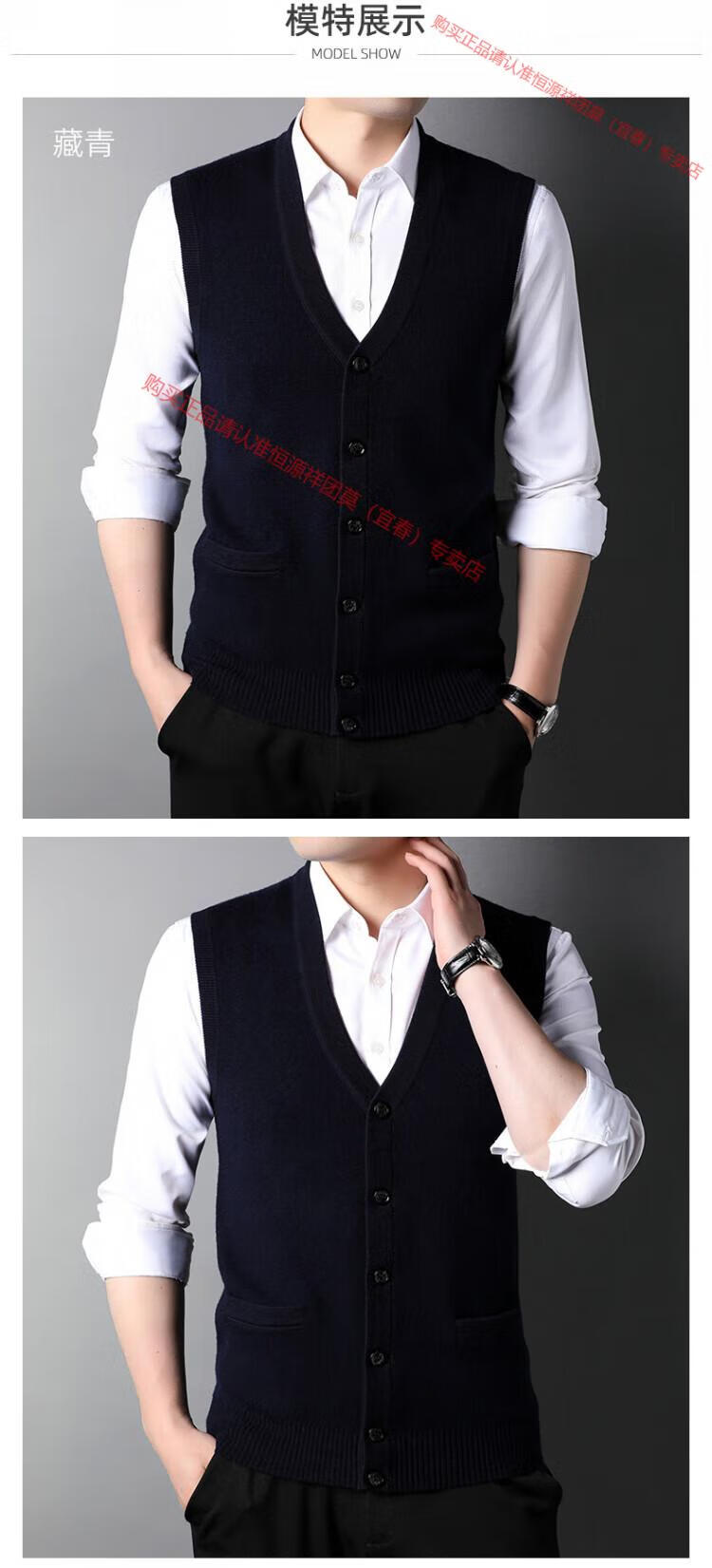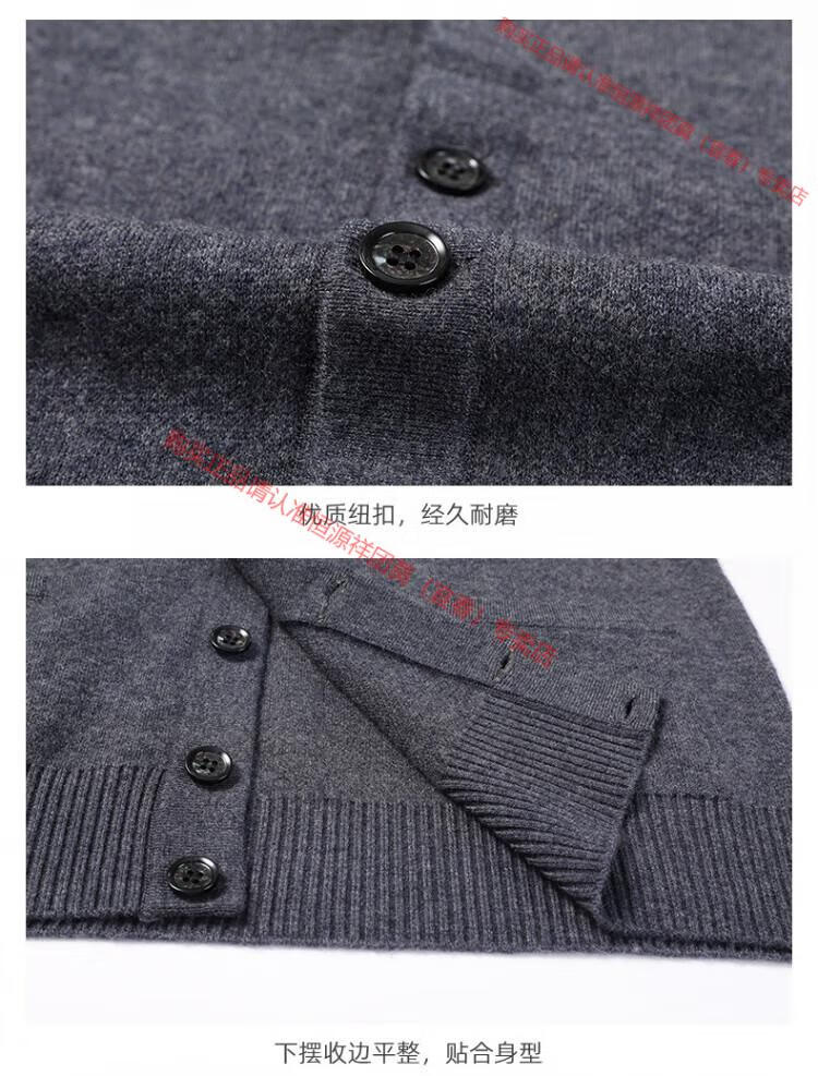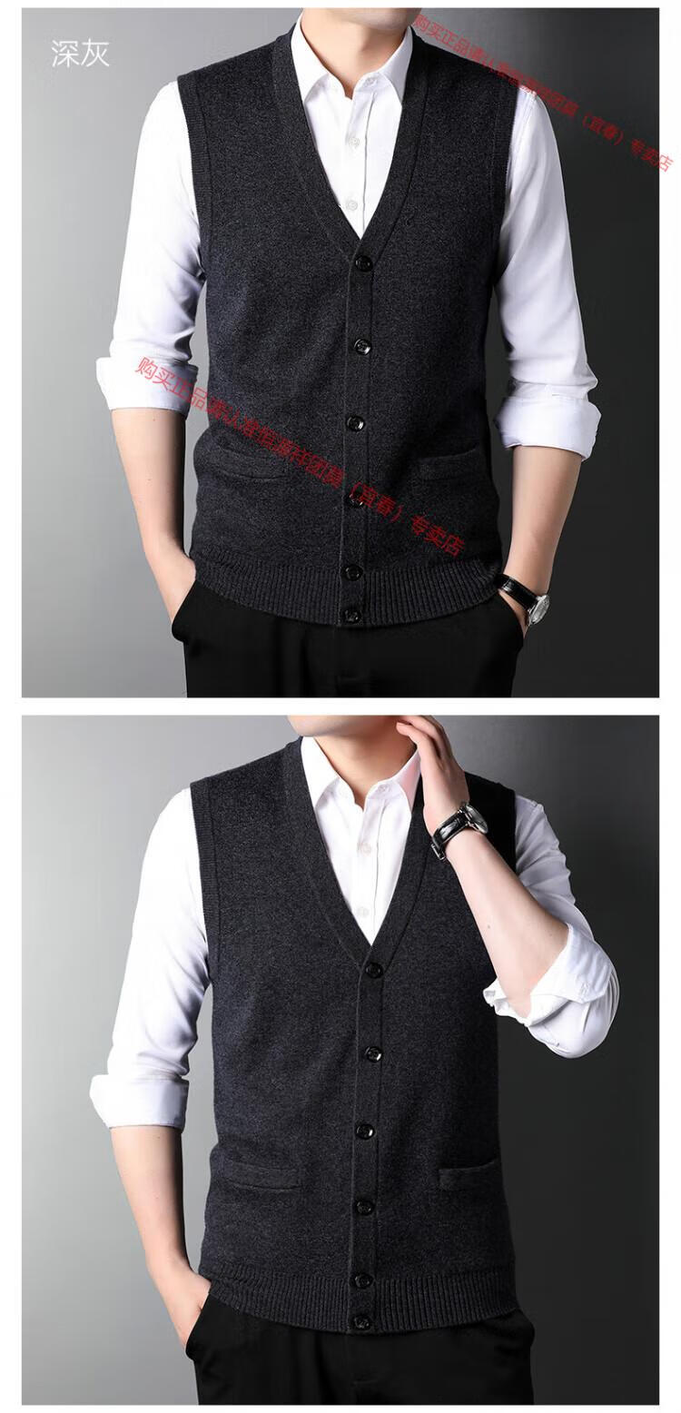 恒源祥100%纯羊毛衫背心男V领爸爸装中老年男士马甲坎肩毛衣开衫打底衫 深灰色 M 170/88A